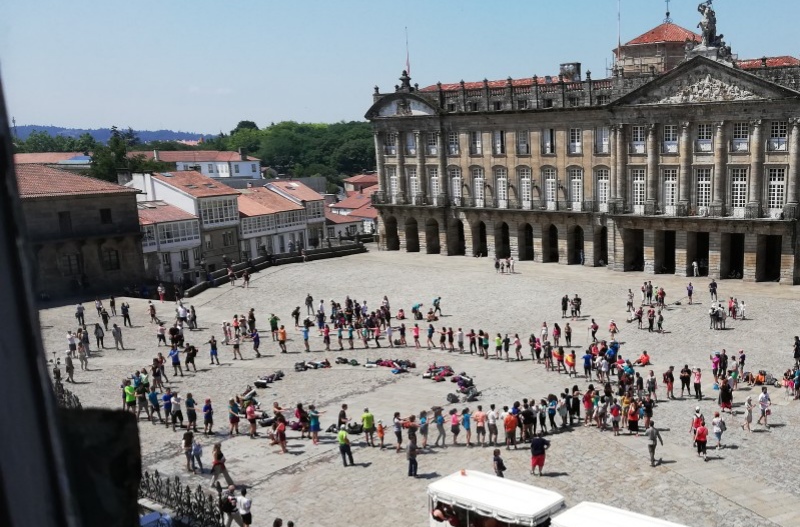 The next day we have a cathedral roof tour booked at midday. Manage to squeeze in coffee/tea and churros beforehand. Tour is in Spanish as the daily english tour is fully booked. Spend an hour on the roof enjoying fabulous views and not understanding more than a few words the rapid talking guide spoke…but we loved it. Followed this up with a walk through the museum. Highlight was standing on the balcony watching a huge group of teenagers celebrating the end of their pilgrimage with song and dance in the plaza. Final visit inside the cathedral for a few last words and then off for a beer and dinner in the old town before making our way back to Luci.