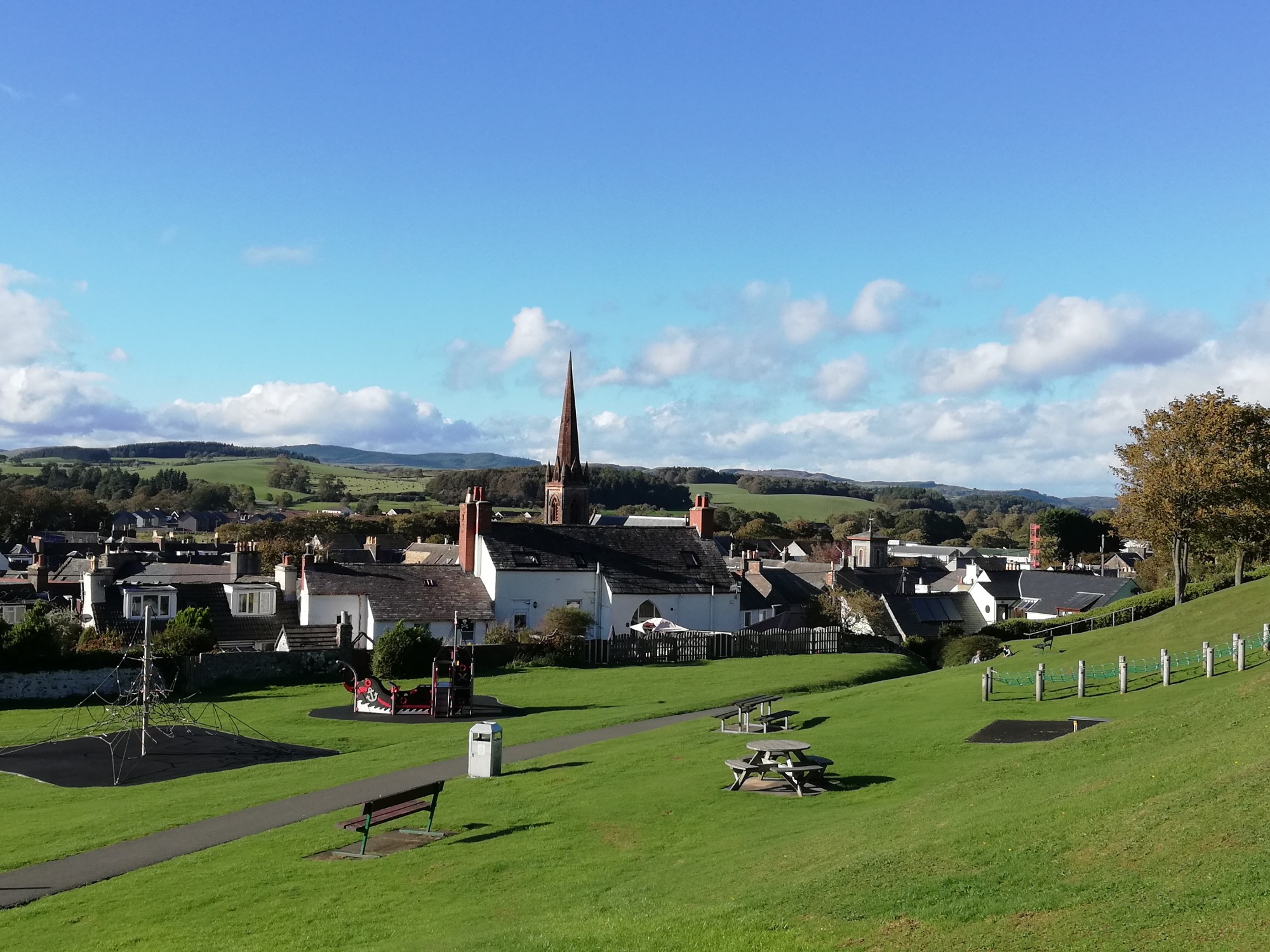 The campsite sits on a hill with great views overlooking the town. Enjoy a lovely circular walk around the town, getting our bearings. Tide is out so fishing boats are sitting in the mud. Place is full of a variety of interesting buildings including a castle near the harbour.End our day with a meal and a pub crawl finishing in a pub playing traditional Scottish folk music.