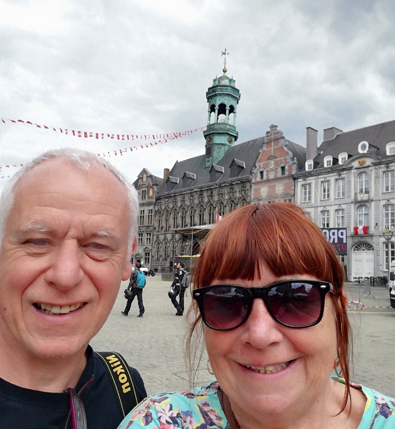 Mons itself is not an attractive place. Could be anywhere apart from the unusual baroque dome topped belfry. We visit a gothic church, pose as angels and then visit the huge square, Grand Place, where we have a beer. A ‘Mons’  selfie is required to send to our EFC family on WhatsApp.