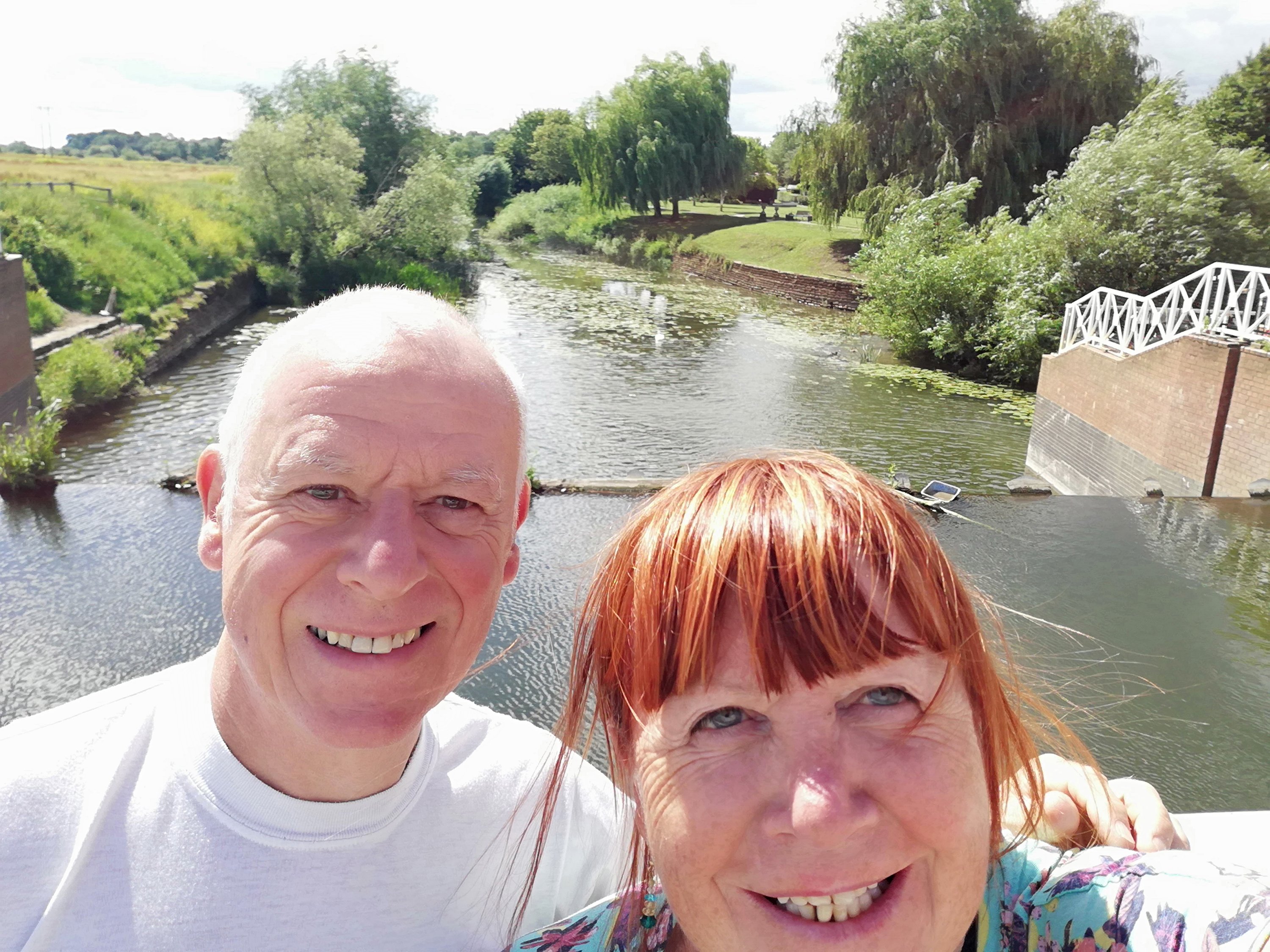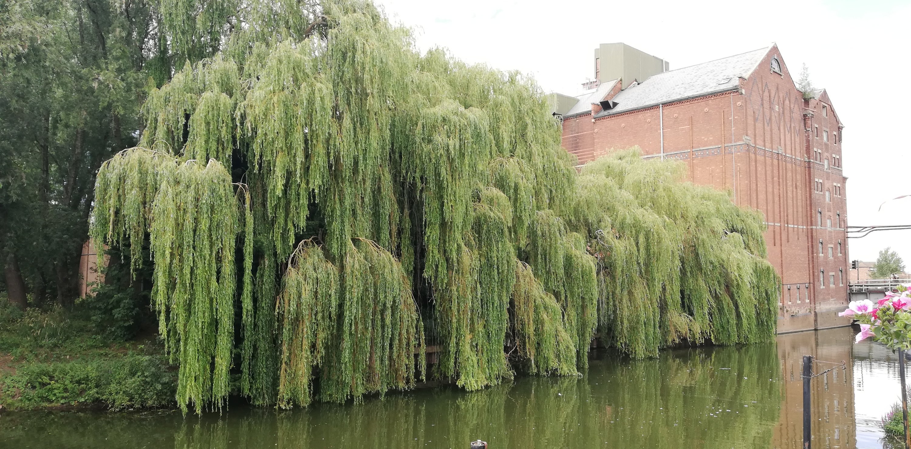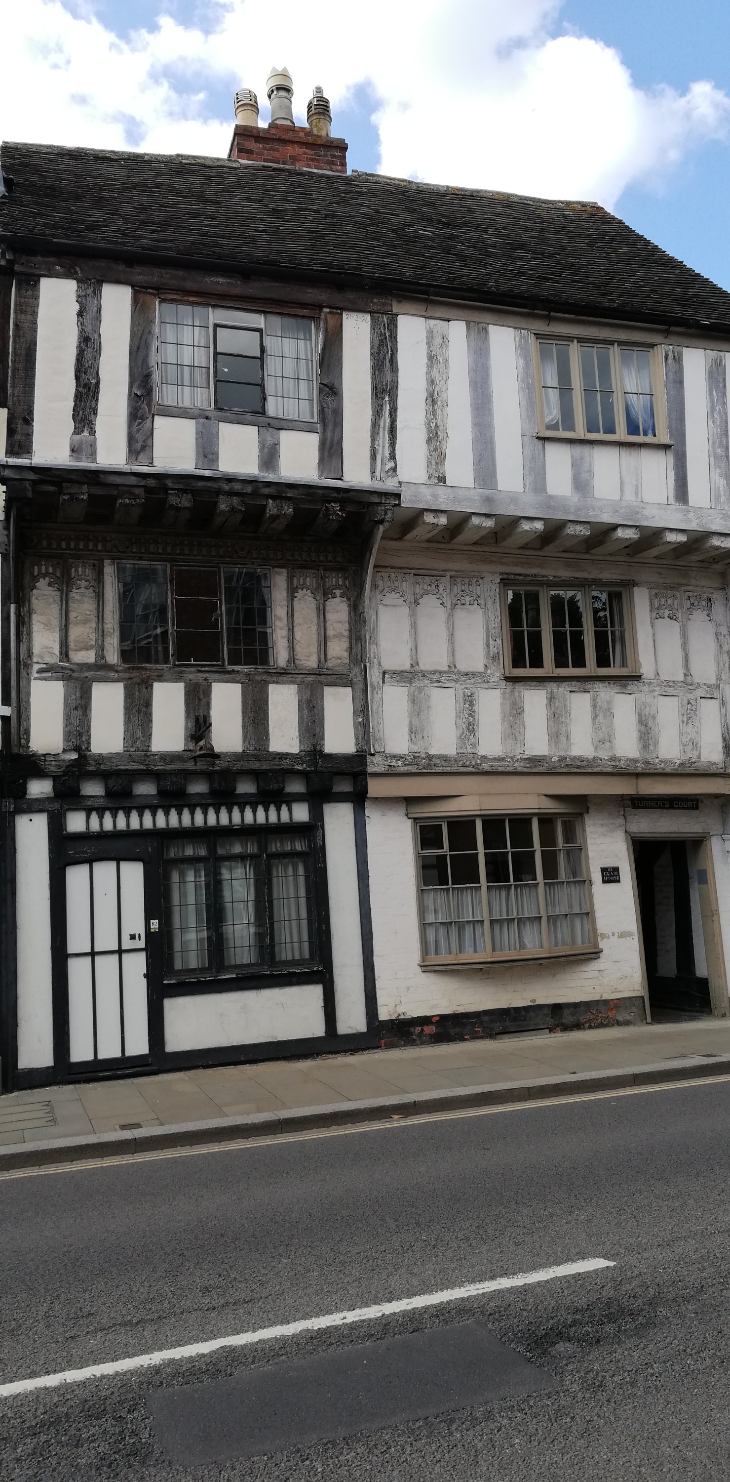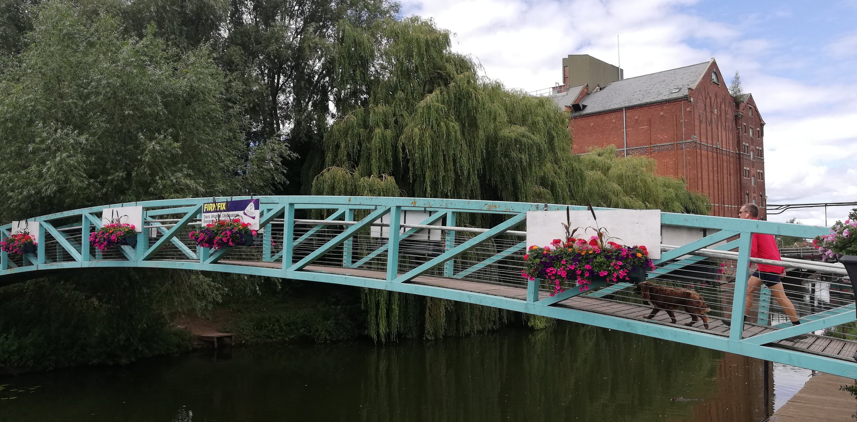 After a short wander around the high street which is much busier today, we treat ourselves to a rustic sausage roll which we take back to the van and enjoy for lunch. Hanging above the shops and houses are colourful banners that represent the participants in the Battle of Tewkesbury in 1471. We spot only one with red roses, obviously belonging to a Lancastrian on the losing side 🙃.