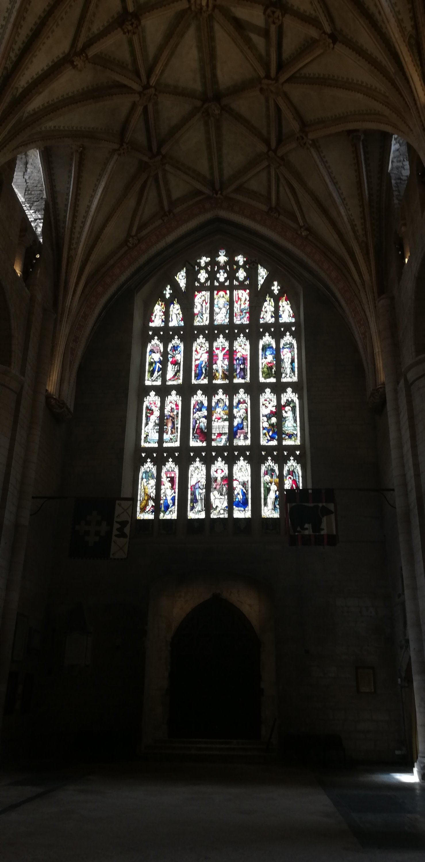 It’s very quiet and peaceful inside. Fabulous ceiling and stained glass windows.