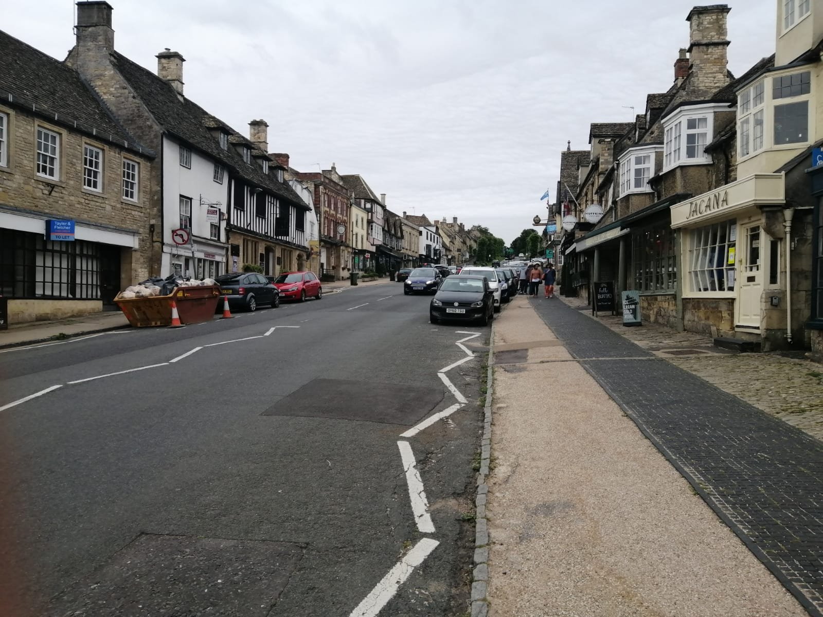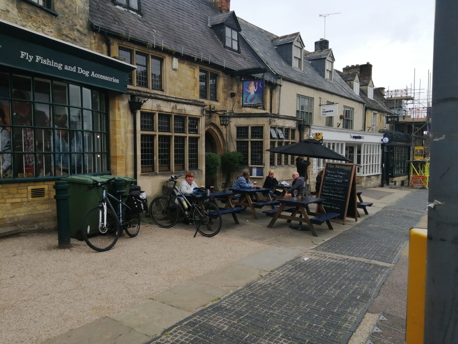 Burford is pretty. The high street is called The Hill, and its a steep one. Most of the buildings are in the lovely yellow cotswold stone. We have earned a pint which we drink outside right on the high street. There is an Indian across the road so we order a starter takeaway whilst we finish our beer…in the rain. The journey back is shorter, only 4.5 miles this time.
