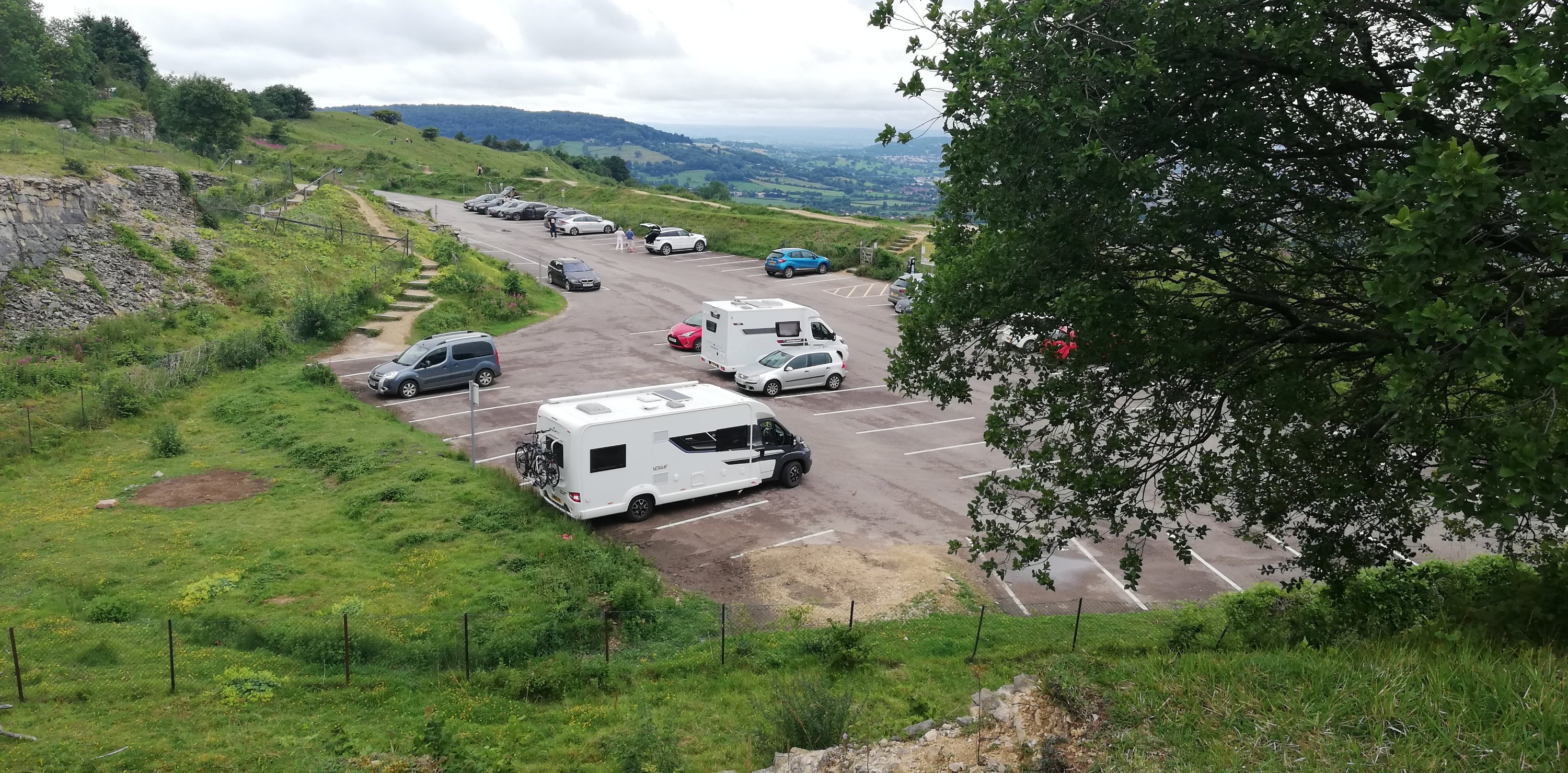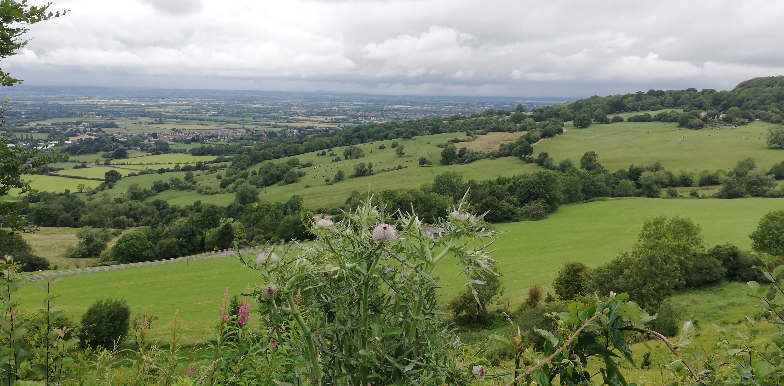 We get on the road to Crickley Hill a local viewpoint. Great views of The Brecon Beacons, the Malvern Hills and GCHQ. Manage a couple of miles tramp around the hill on the Cotswold Way followed by a cuppa and a piece of cake before heading to our next campsite near Bourton-on-the-water.