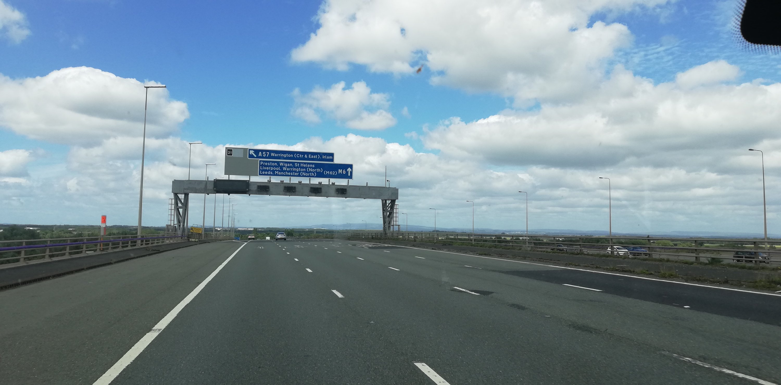 A49, A5, M56, M6, M58 get us there. We pass into and quickly out of Wales near Wrexham.