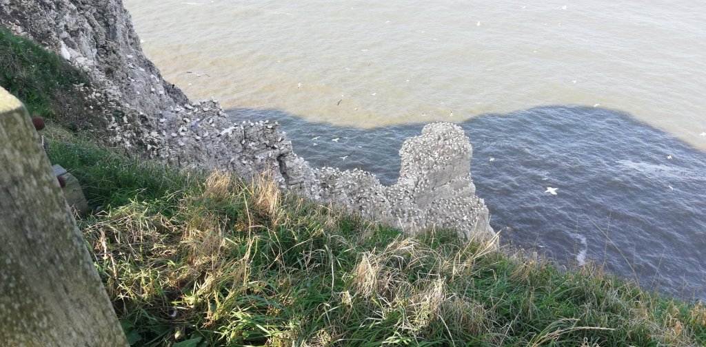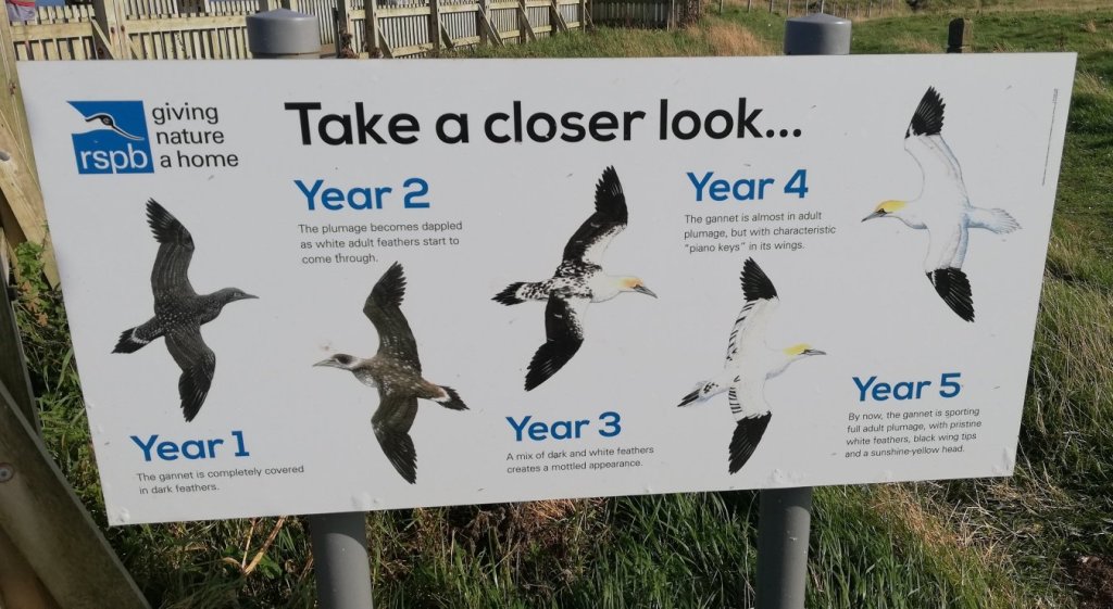 It’s a wonderful spot with lovely cliff walks, with a number of different viewing platforms that give great views of 10’s of thousands of mainly gannets, nesting and flying and making loads of noise and smells. It was great to be able to identify the age of the gannets by their feather colours and patterns. We felt like budding ornithologists. We also saw a Shag and a few Fulmar which we’d never heard of before. All in lovely sunshine too. Sadly we did forget both sets of binoculars sitting unused in the van. Next time!