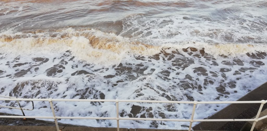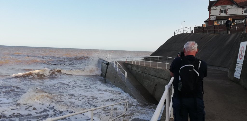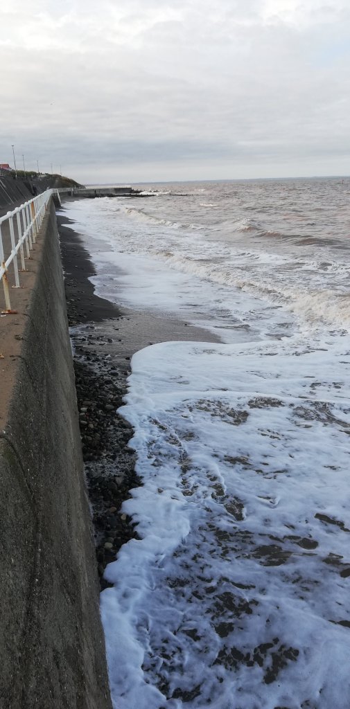 We land in our new campsite a mile outside Hornsea. After a cuppa, some blogging and kindle time we get the bikes down and cycle into Hornsea. Find a pub on the promenade where we can park our bikes and watch the tide come in. It’s looking quite rough with lots of foam and splashing.
