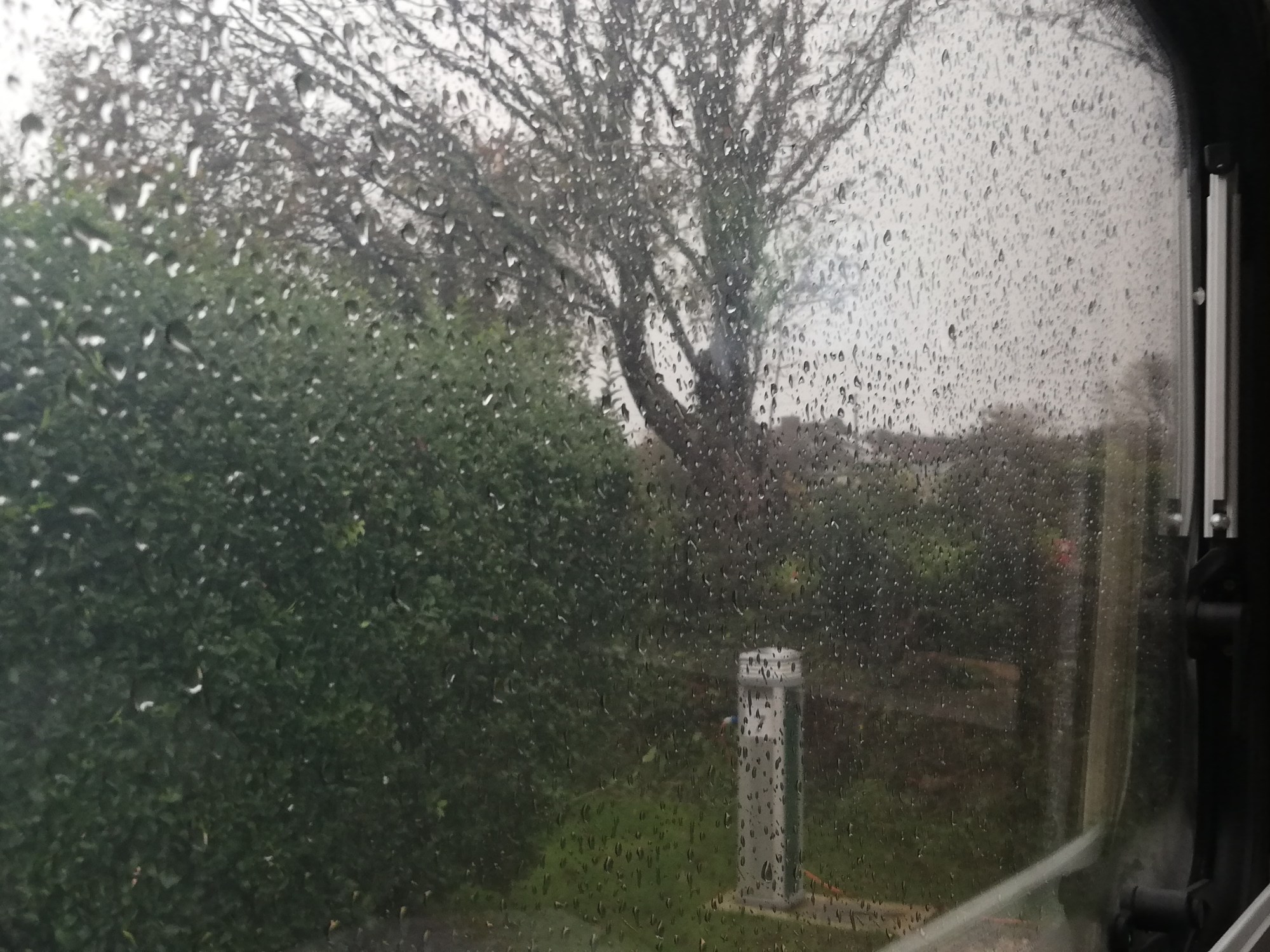 We are stuck in the van again for a third day. It’s raining the proverbial cats and dogs. Storm Alex is still firmly in control of the weather.