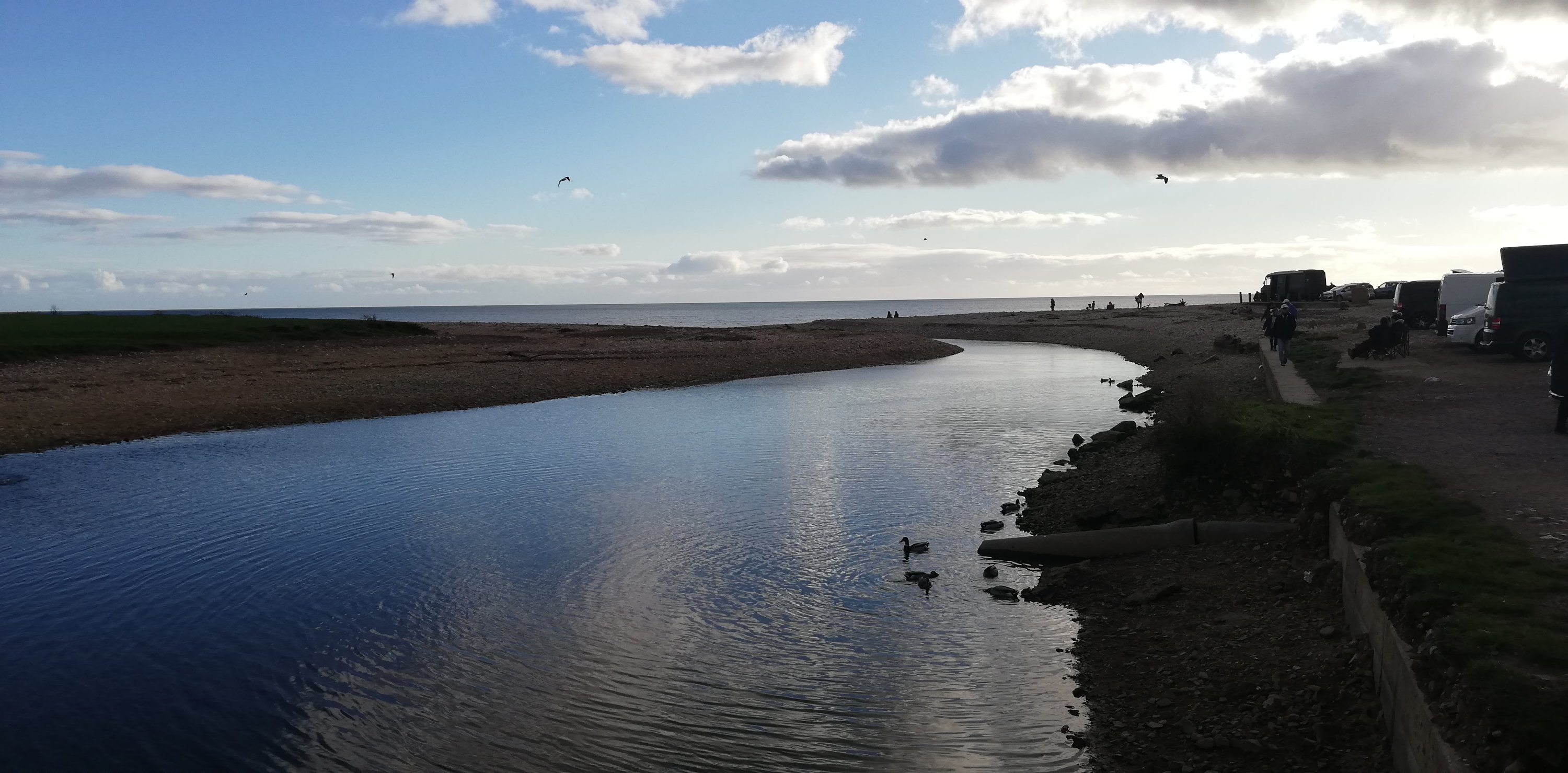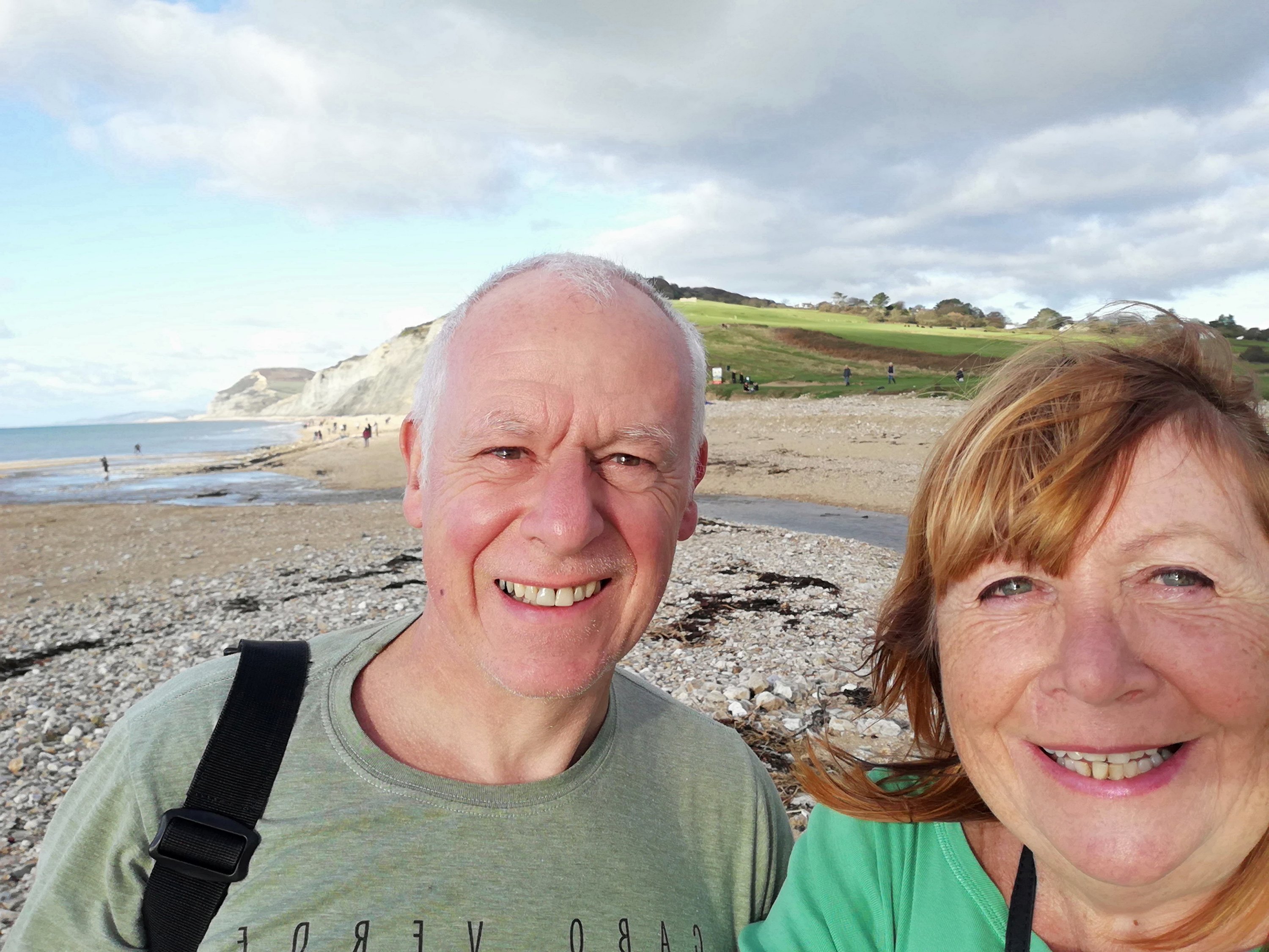 We wander along a footpath back into Charmouth for a drink at the The George. It’s nicely busy.