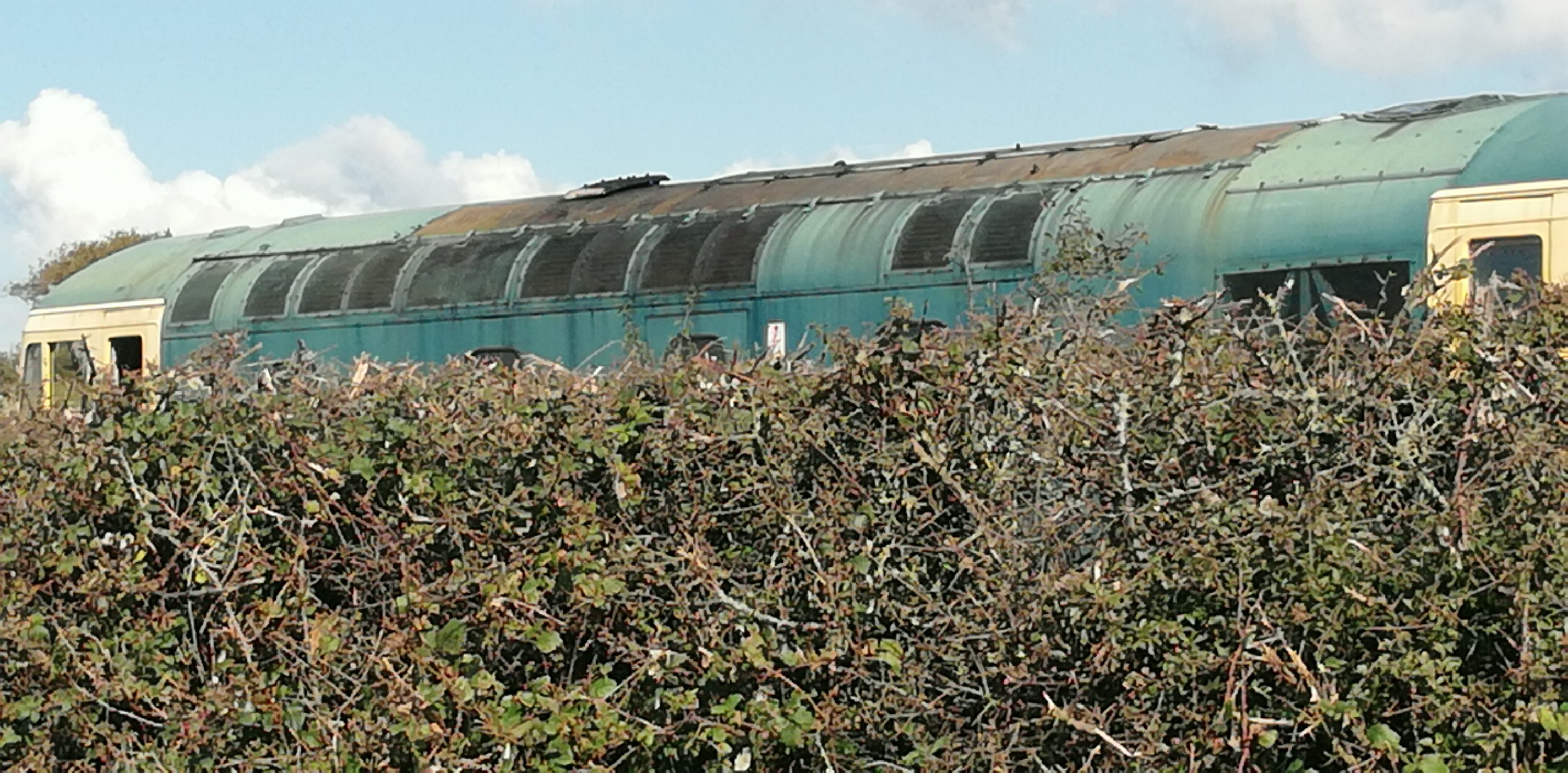 Soon enough the skies are blue again and we return to the campsite the same way we came. This time a train passes us again and we get a photo. We also discover via Google that the Common was planted up during WWII for the ‘Dig for Victory ‘ campaign.