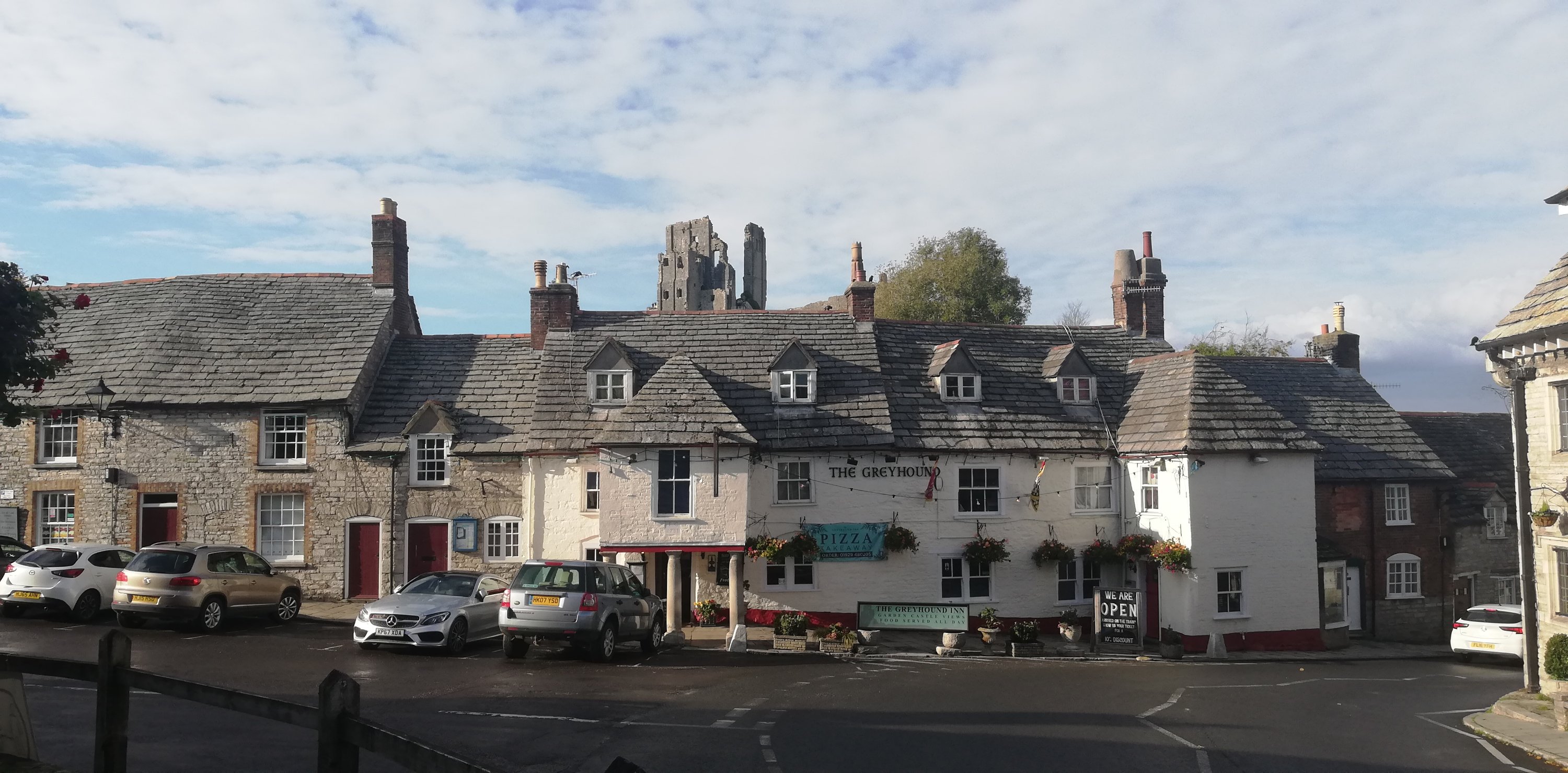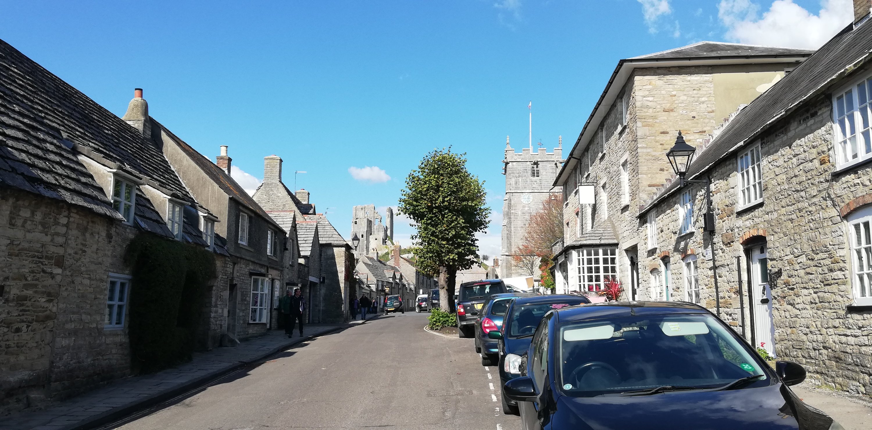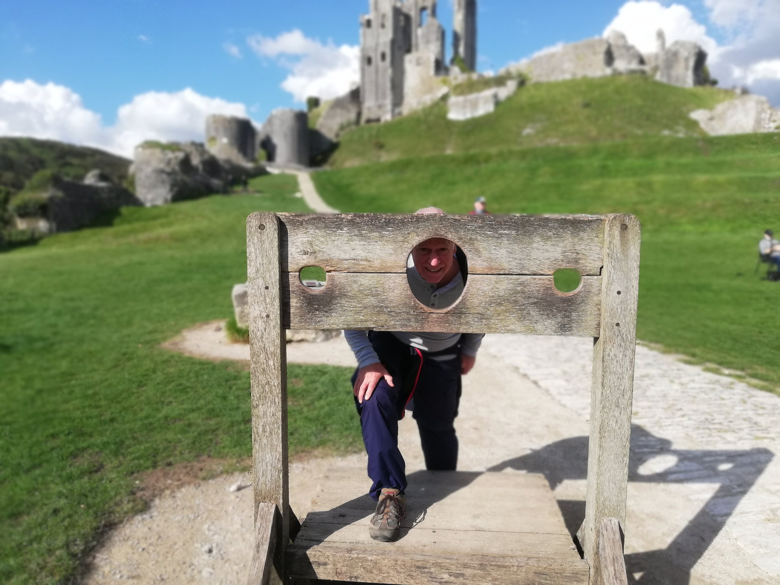 The footpath takes us right into the village of Corfe Castle and we visit the castle itself first. It’s NT so we get in free… sort of.