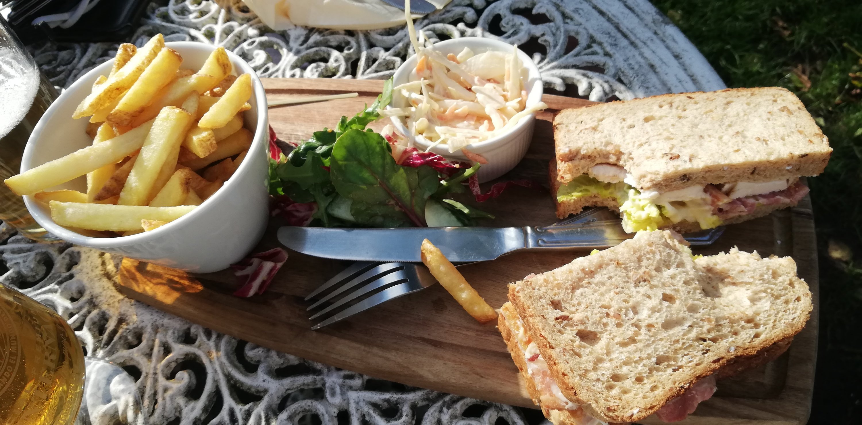 Lunch is next, in the garden of The Fox pub. Food is really really good. Rain is threatening but it just holds off until we finish eating. We run to a second pub, The Greyhound, for another drink waiting for the rain to pass.