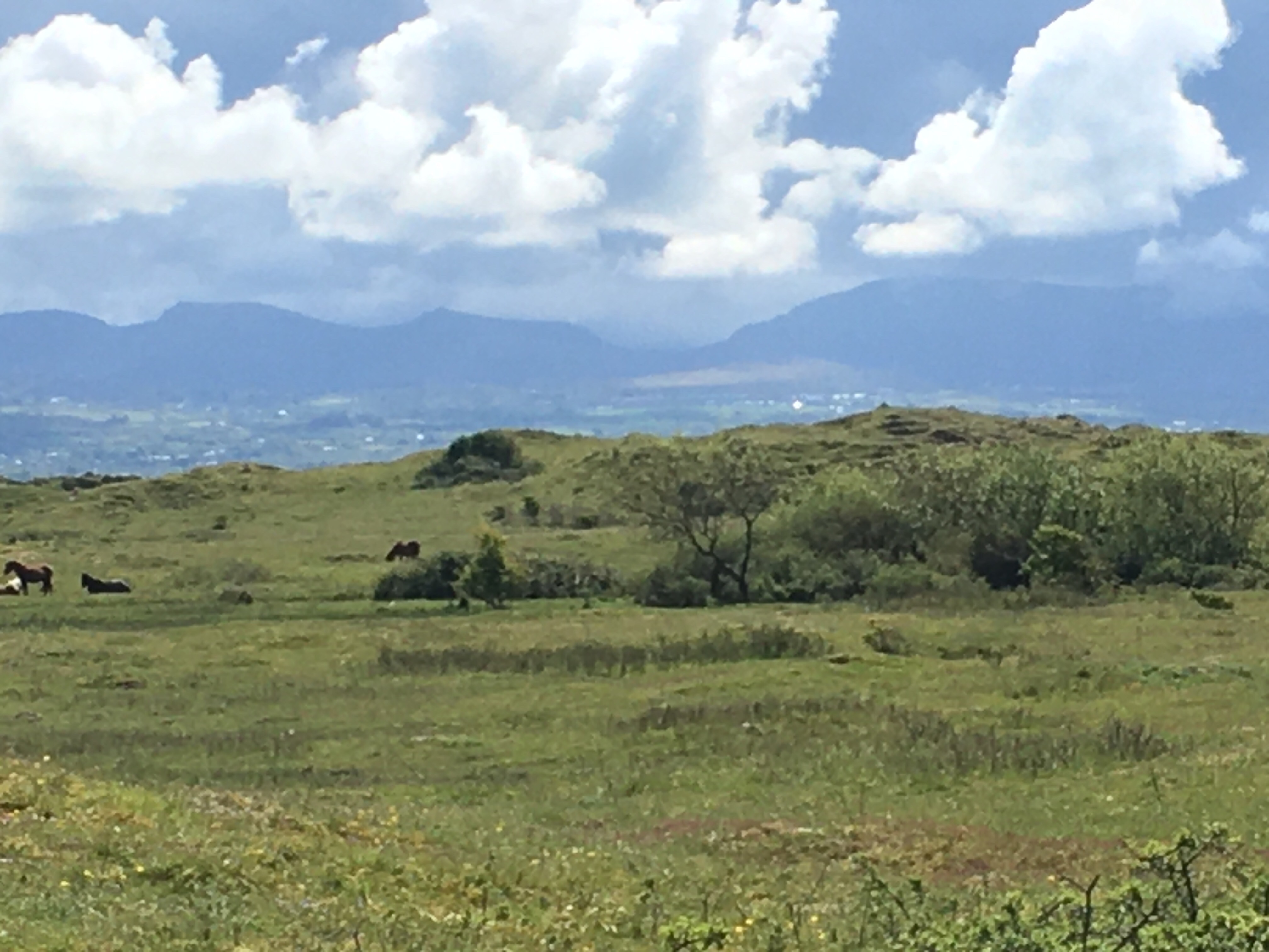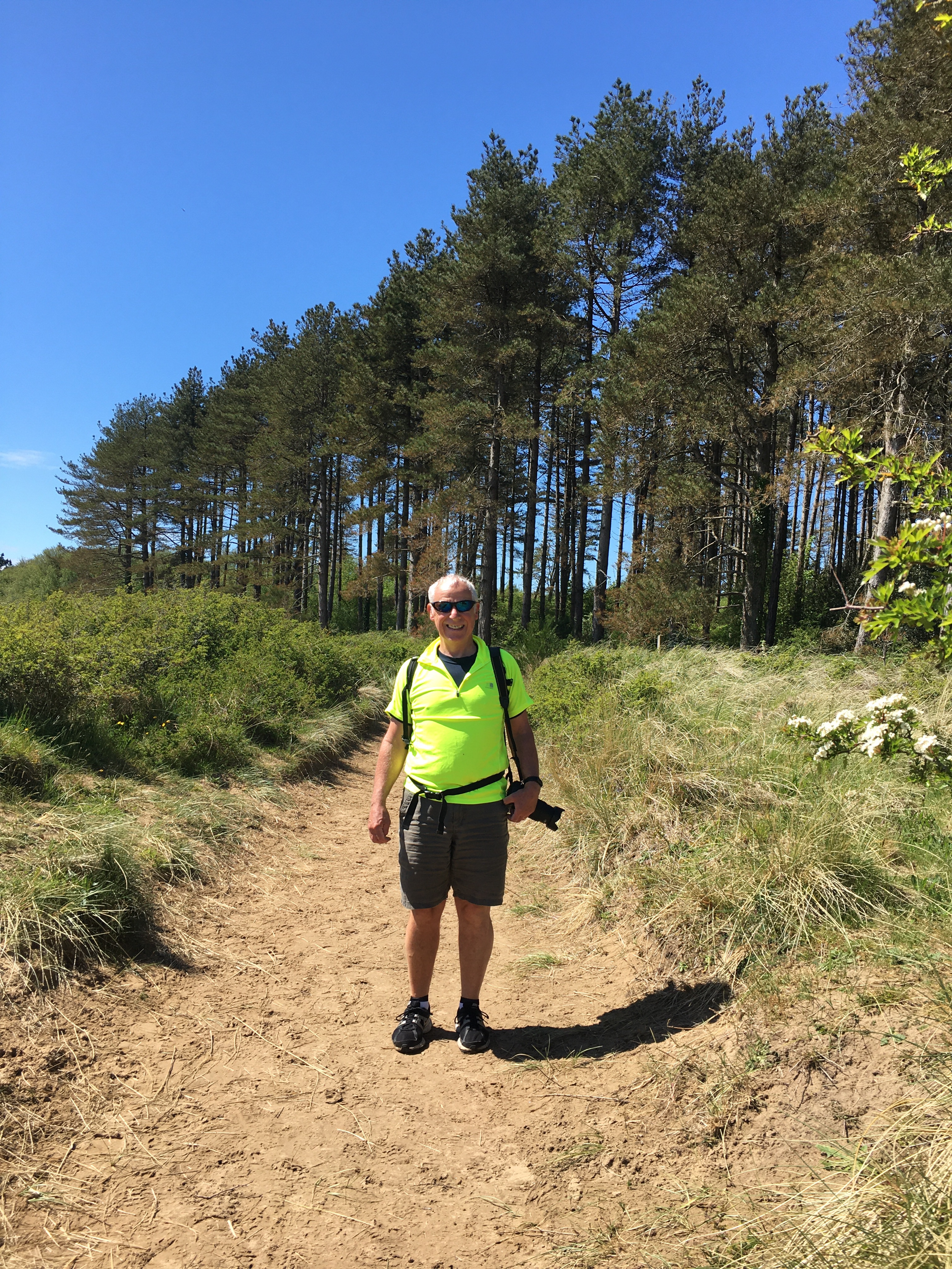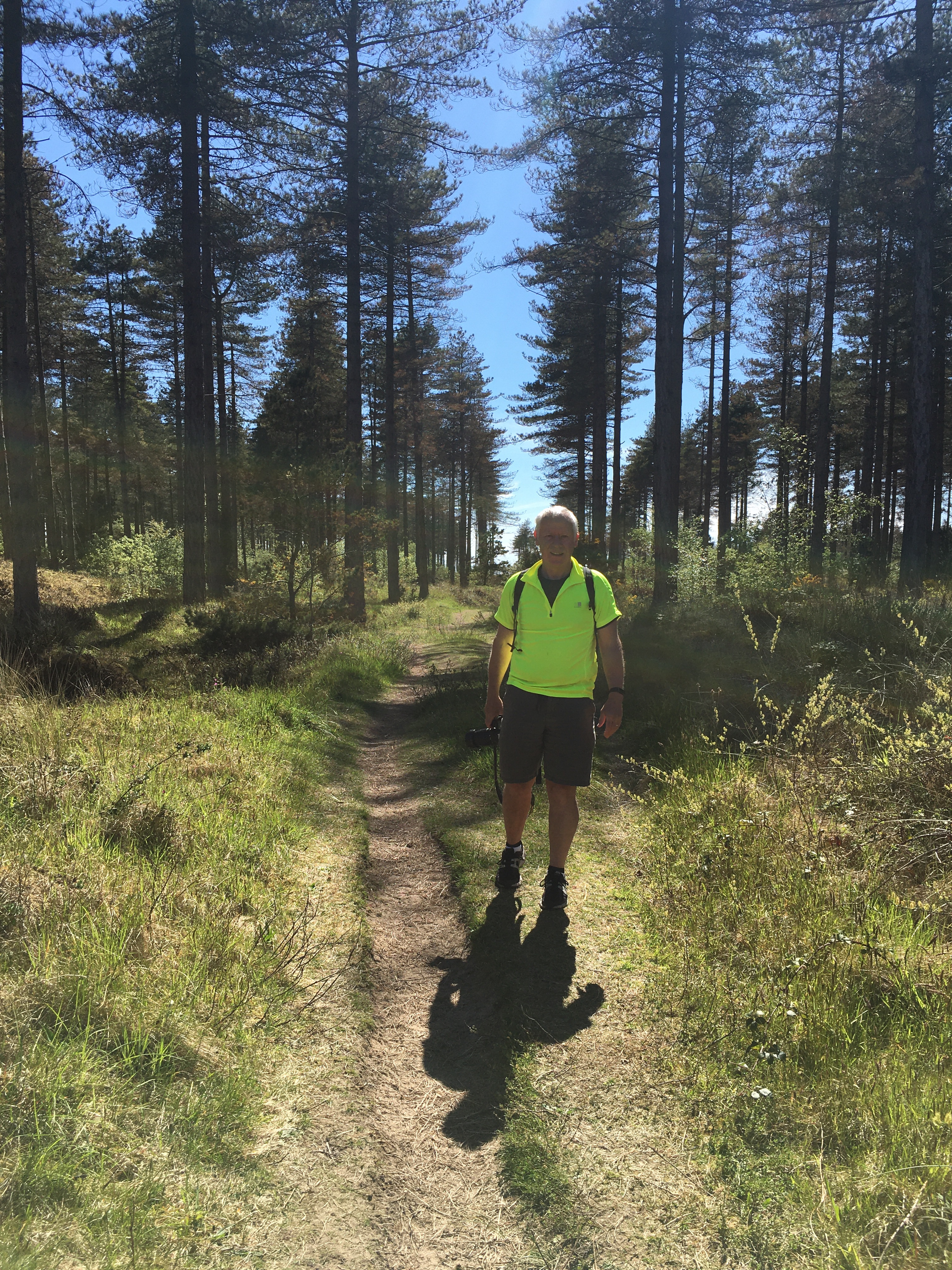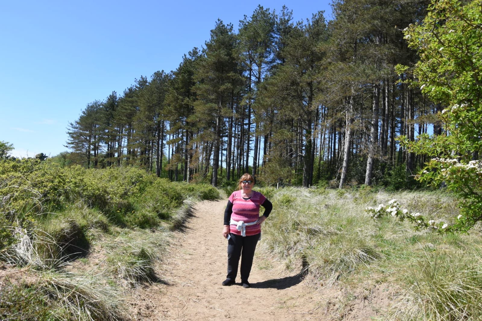 The path runs alongside the forest towards the coast and on our left are the warrens ie dunes. Herds of cattle, ponies and horses are grazing peacefully together on the grassed over dunes but as we get closer to the coast it gets progressively sandier.