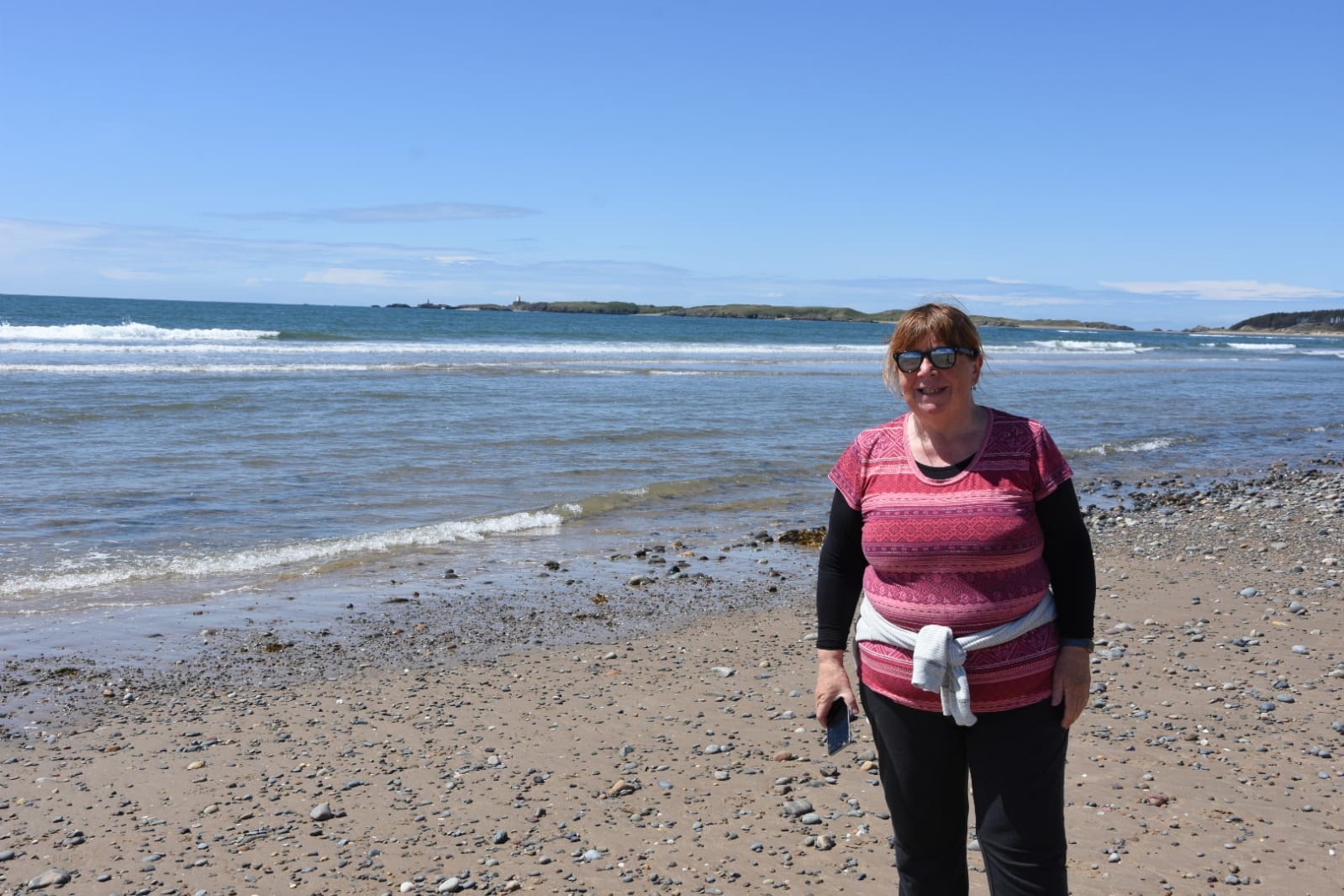 Excited to see a bench for a sit and kindle moment whilst Tony checks out the lighthouse and various Christian and Celtic crosses.