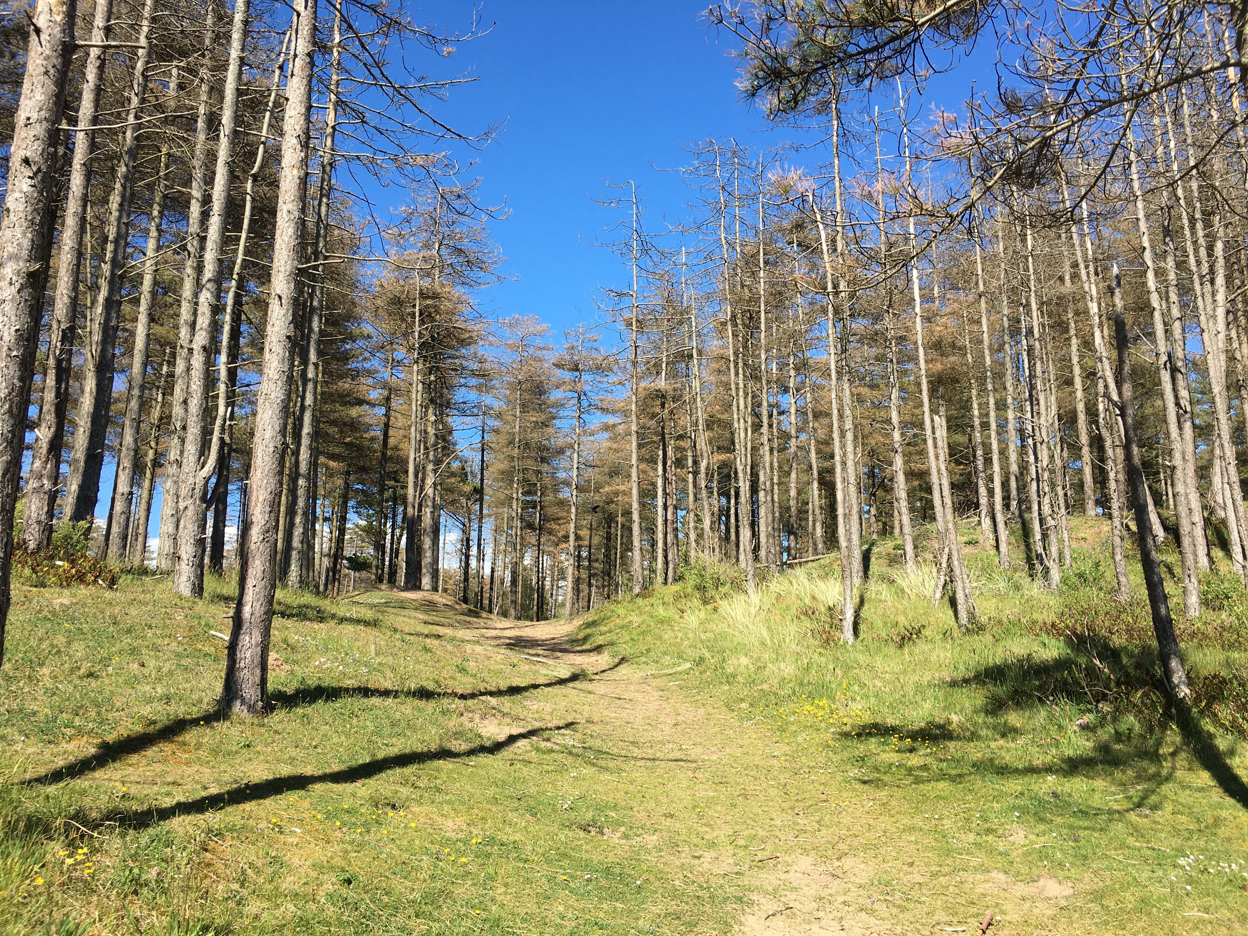 Today after breakfast we break out the bikes and cycle towards Newborough. We intend to cycle the forest but after 5 mins realise it’d be better to walk so we park up.