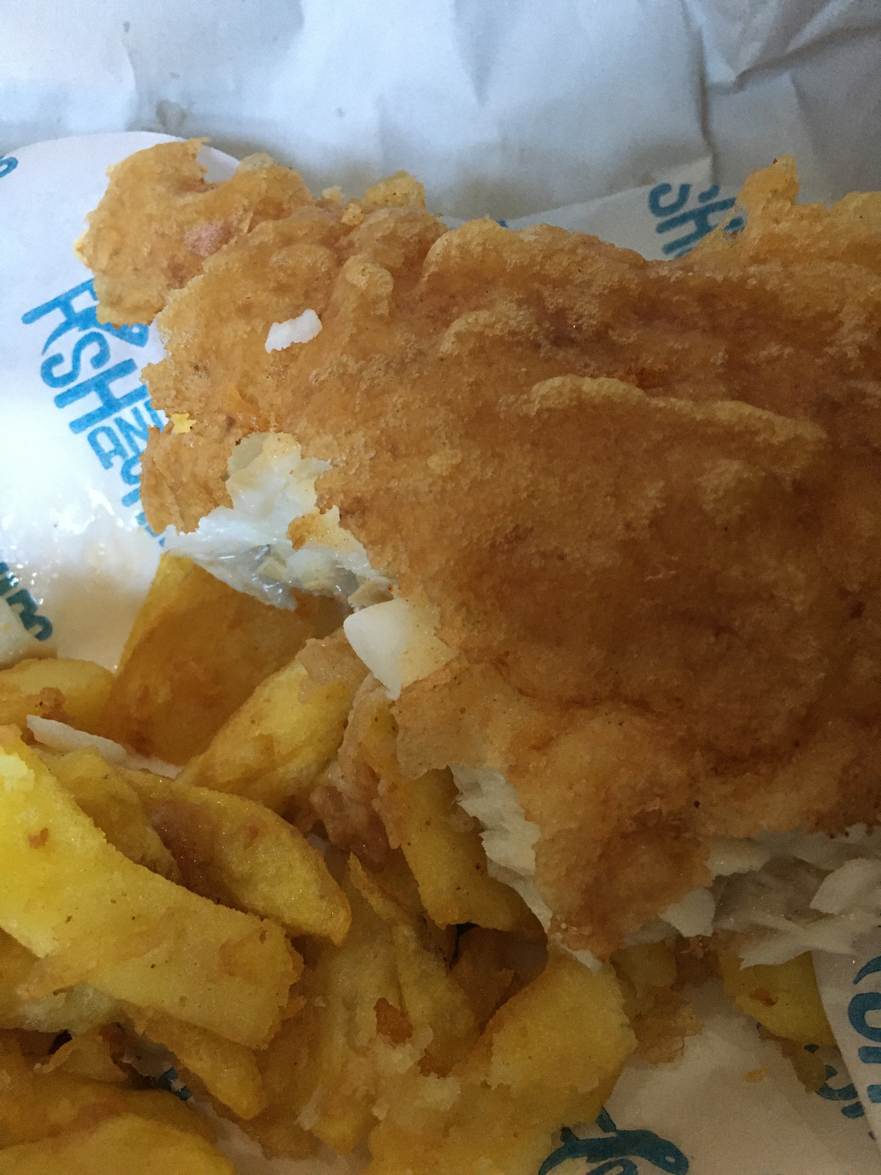 After cycling back to the van we enjoy a cuppa. After an hour we decide to cycle instead of walking to the local pub The White Lion. Enjoy a pint in the beer garden. It’s not doing food so we buy fish and chips from the chippy across the road and eat them in the pub before heading back.