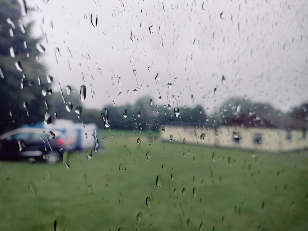 It’s now raining heavily but it’s a very short hop to the campsite. We’ve booked in here as it was the closest campsite to Sutton Hoo with availability. It’s always more difficult to find a pitch over the weekend.