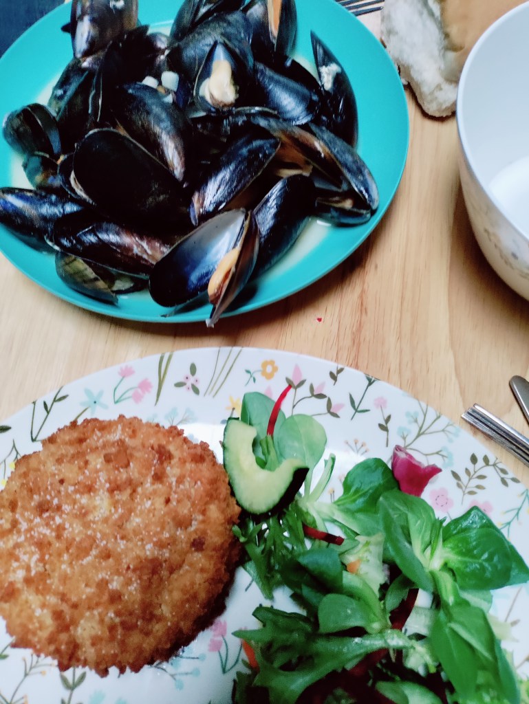 It’s still raining cats and dogs so we get a bit damp setting up. Lunch is hiding in the van out of the rain. In fact we don’t move all day as it’s just so wet. Dinner is moules for T and fishcake for me watching one of the hobbit movies and Celebrity Gogglebox.