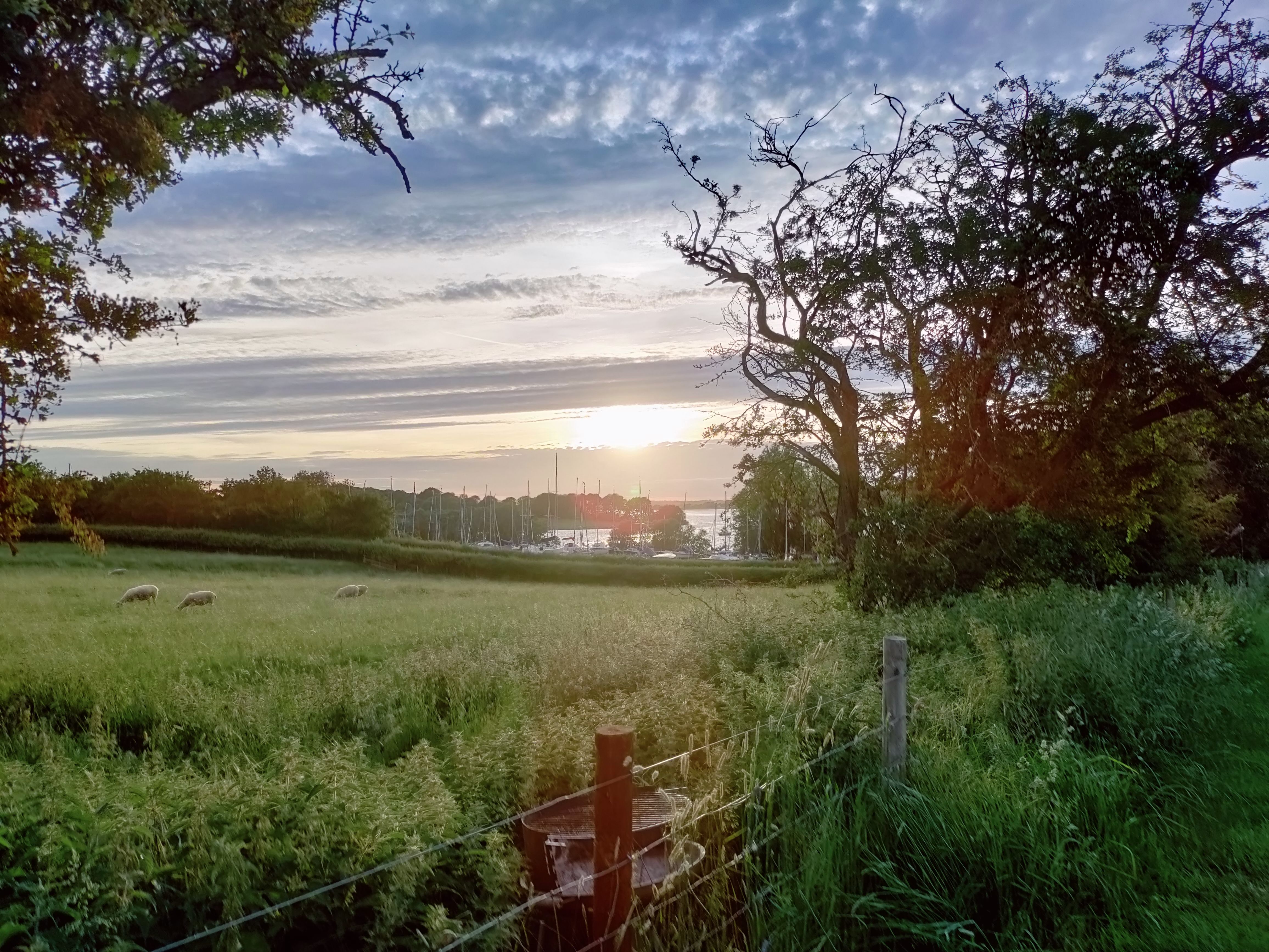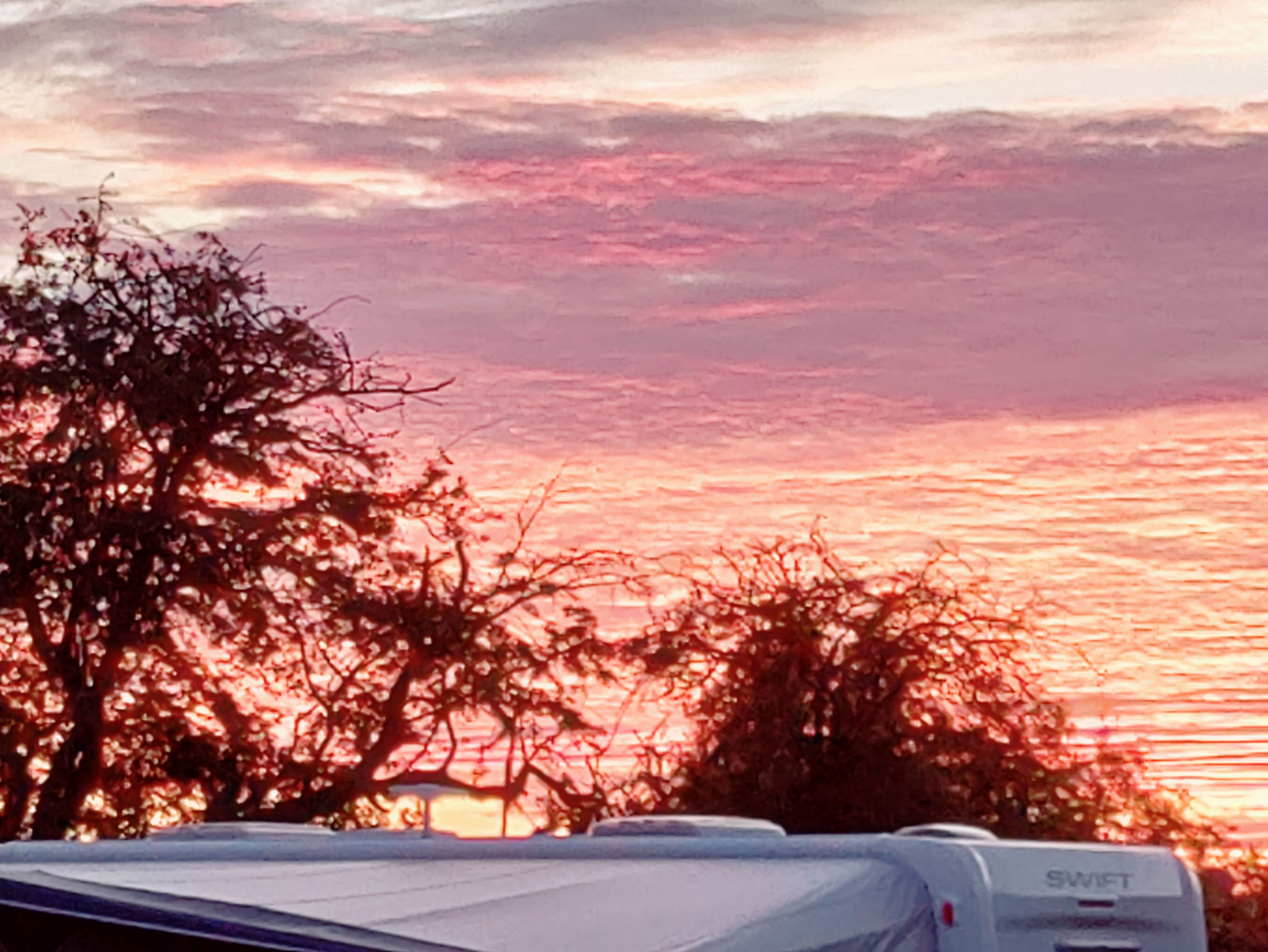 Eventually enjoy BBQ chicken and sausages leftover from the weekend for dinner and a very early night as we can’t be bothered to go the pub and as we are running on 12v power we can’t watch telly as we’ve forgotten a cable! Sunset is amazing.