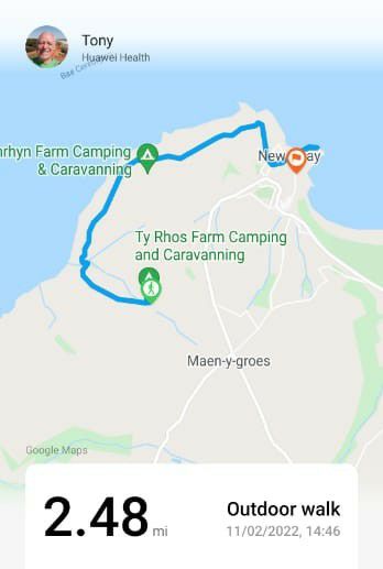 Next is the lively Seahorse pub before more hill climbing to the Penrhiwllan Inn which is at the corner of the main road and the road to our campsite. We enjoy dinner here. It’s full of English sounding customers. We thought they may be holiday makers as there’s a couple of large static caravan parks near here but in fact we’re told that they’re locals and most of the sites are closed at this time of year. A final 0.7 mile push up hill back to the van. Another good day before the bad weather sets in!