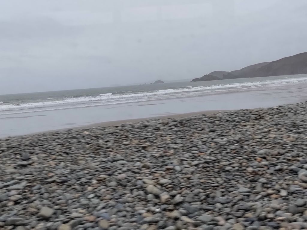 The bus route takes us through Solva which looks lovely and we add it to our list of places to visit. Next we travel alongside a huge crescent shaped beach, called New Gale Sands with a wild sea and lots of breakers. Definitely a bus ride with views!