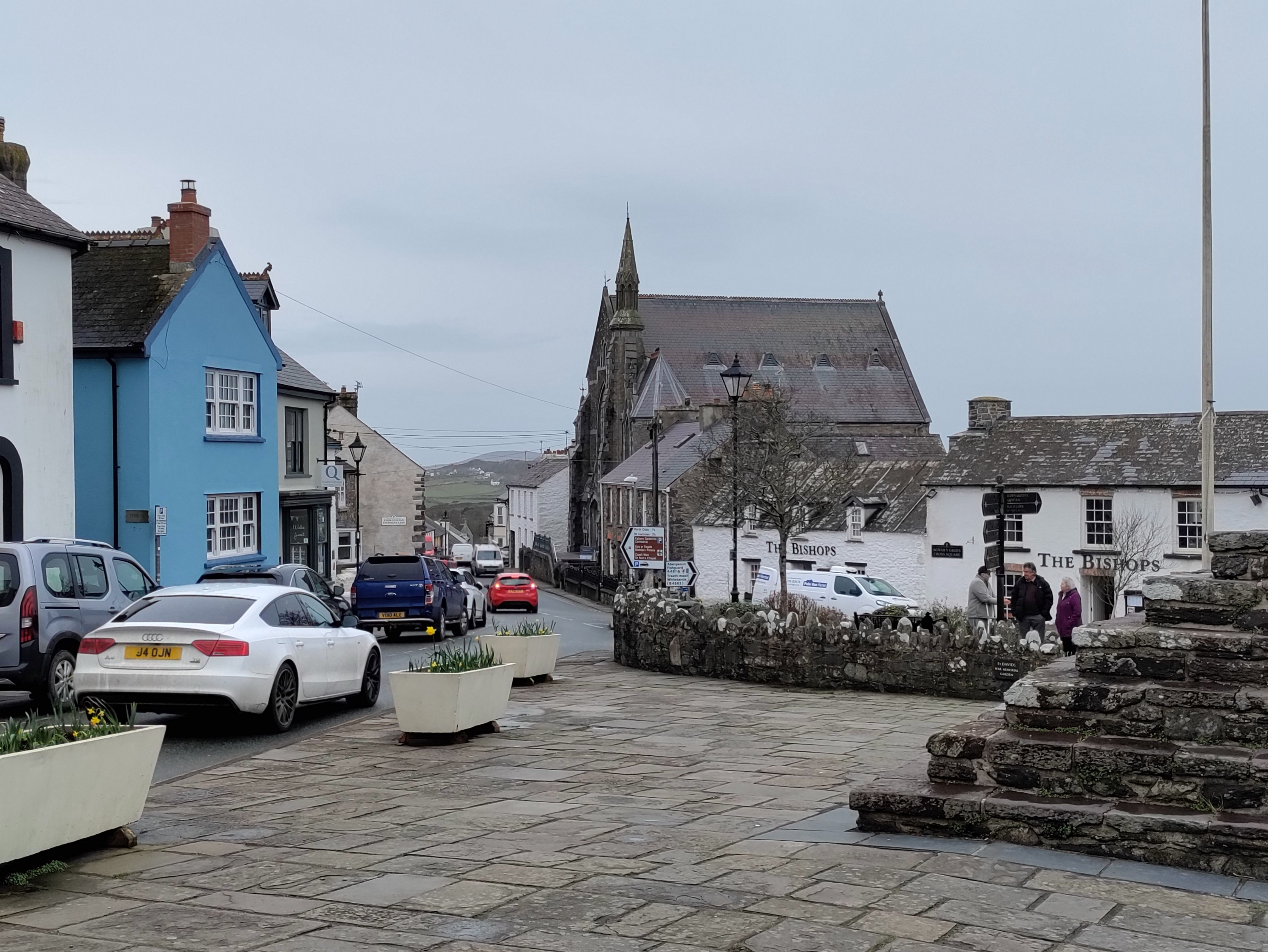 St David’s itself is nestled in a valley and the cathedral is hidden right at the base. A lovely 14C Celtic cross stands at the end of the main street The main street runs downs a hill, with lots of local gift shops and galleries, the occasional cafe and pub. It’s quiet now but must be bustling in the summer as it’s really quite small and narrow.