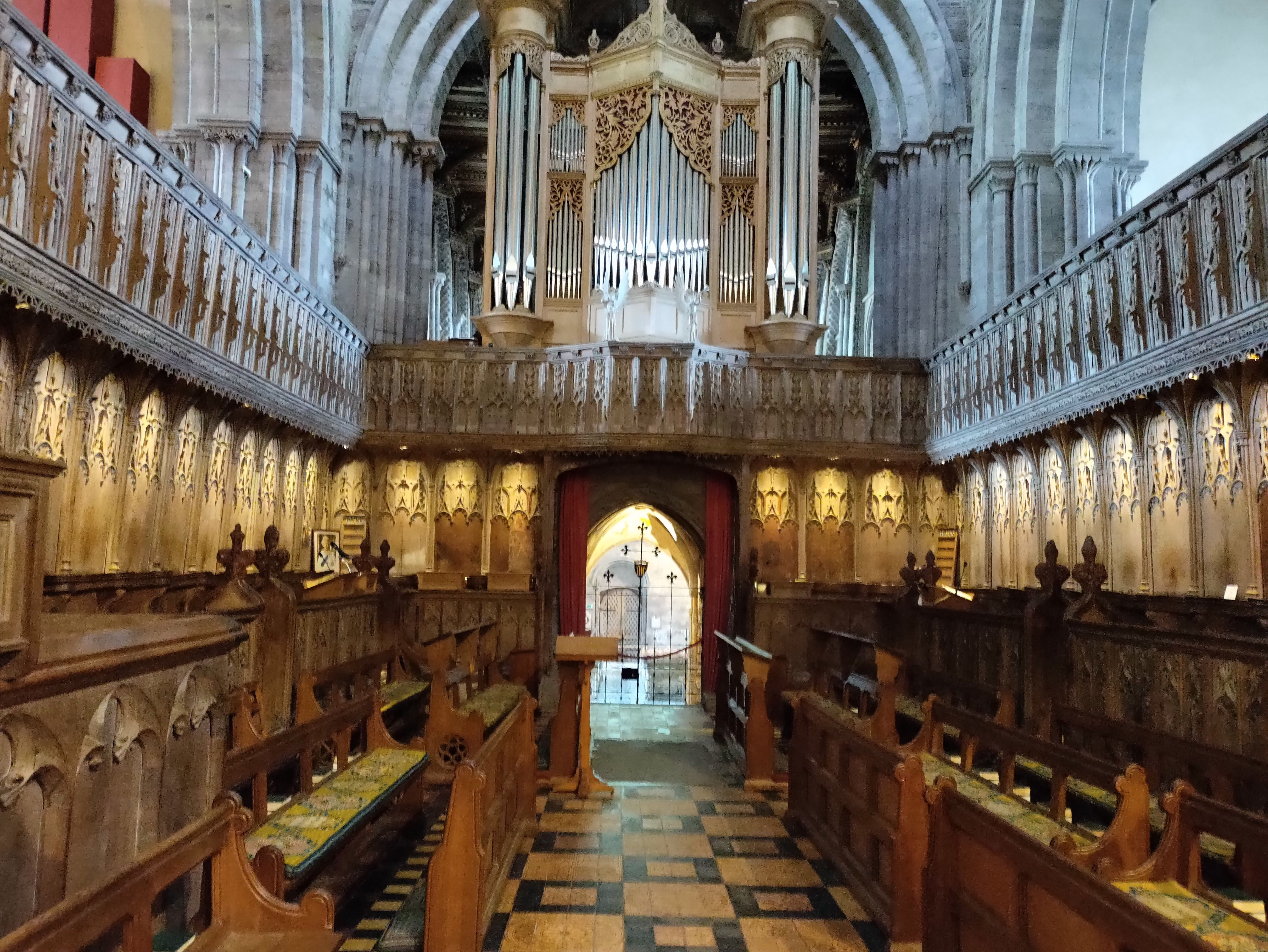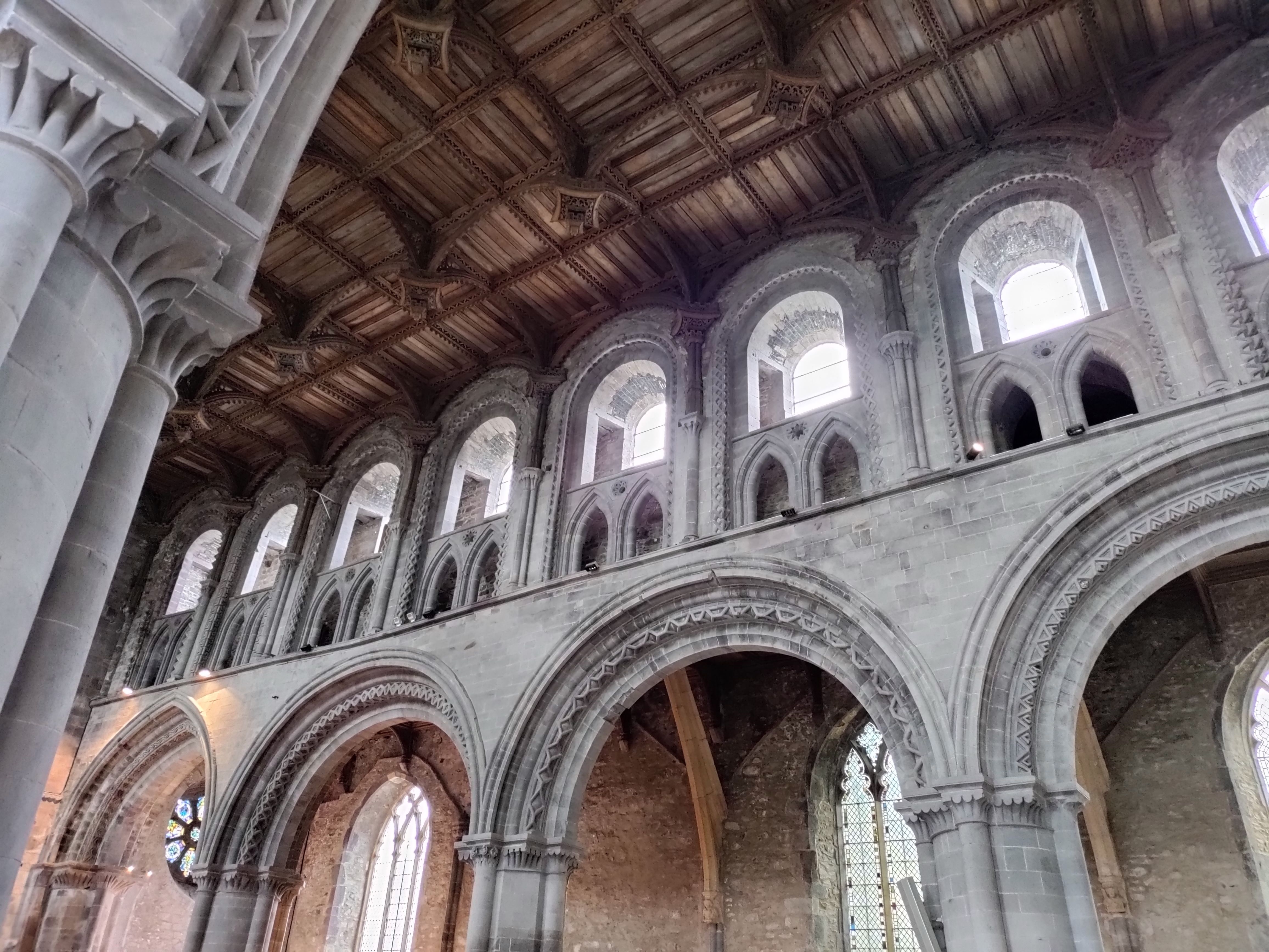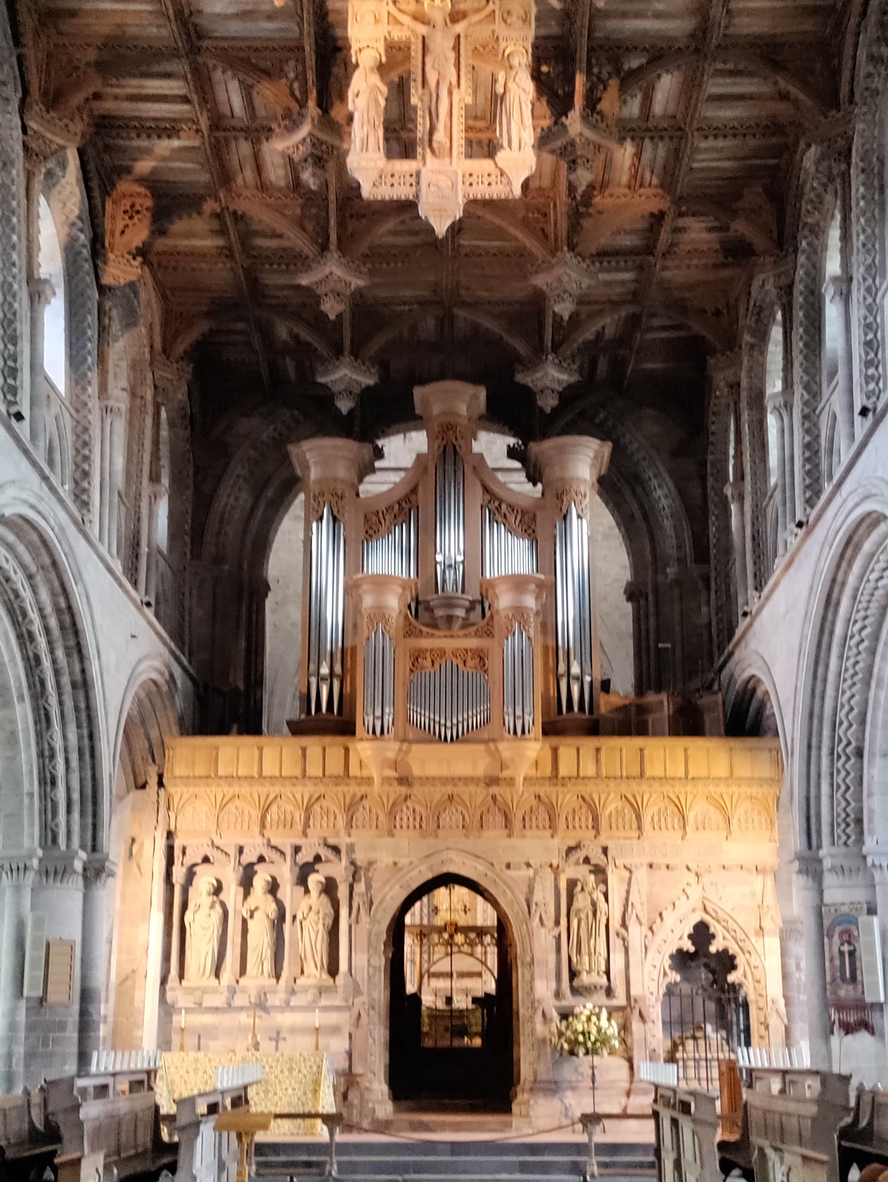 We enjoy wandering around its many different spaces. It has beautiful wooden ceilings, gorgeous stonework, huge arched windows and a lovely rose stained glass window.