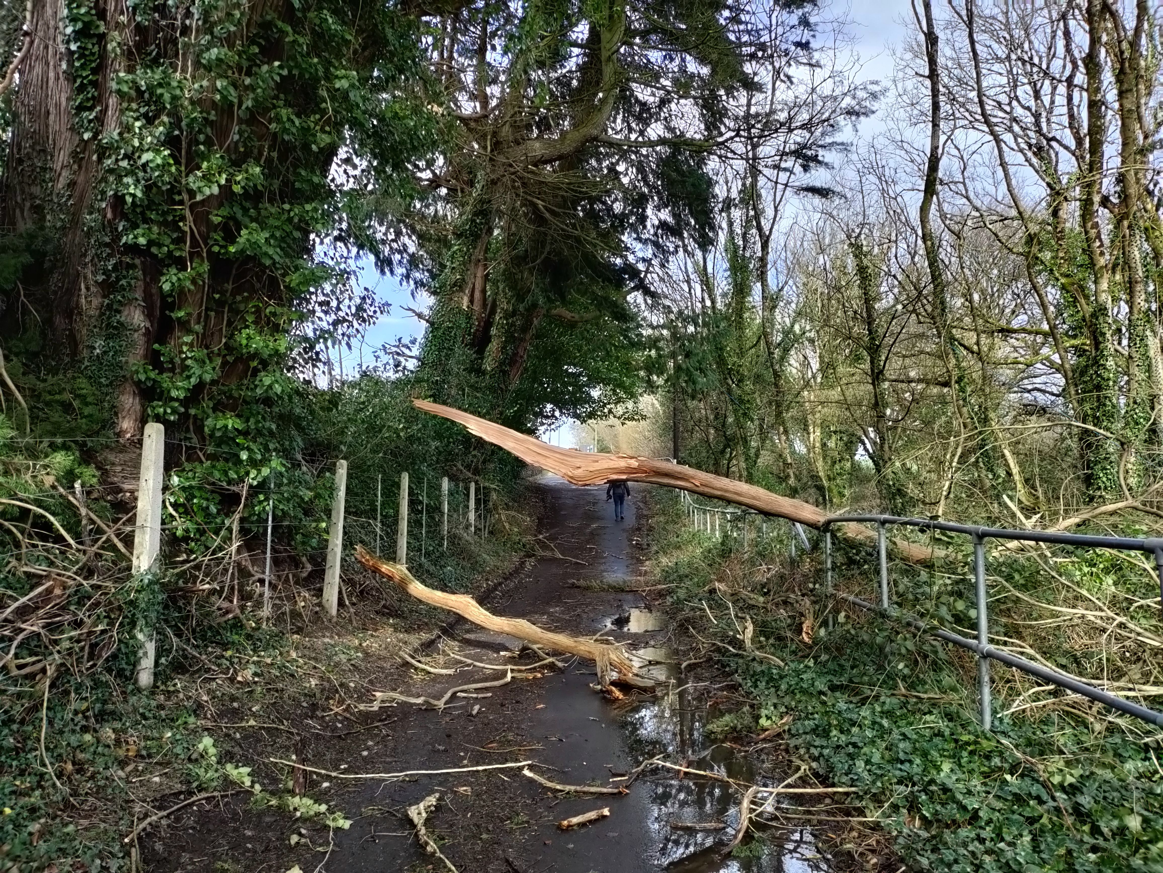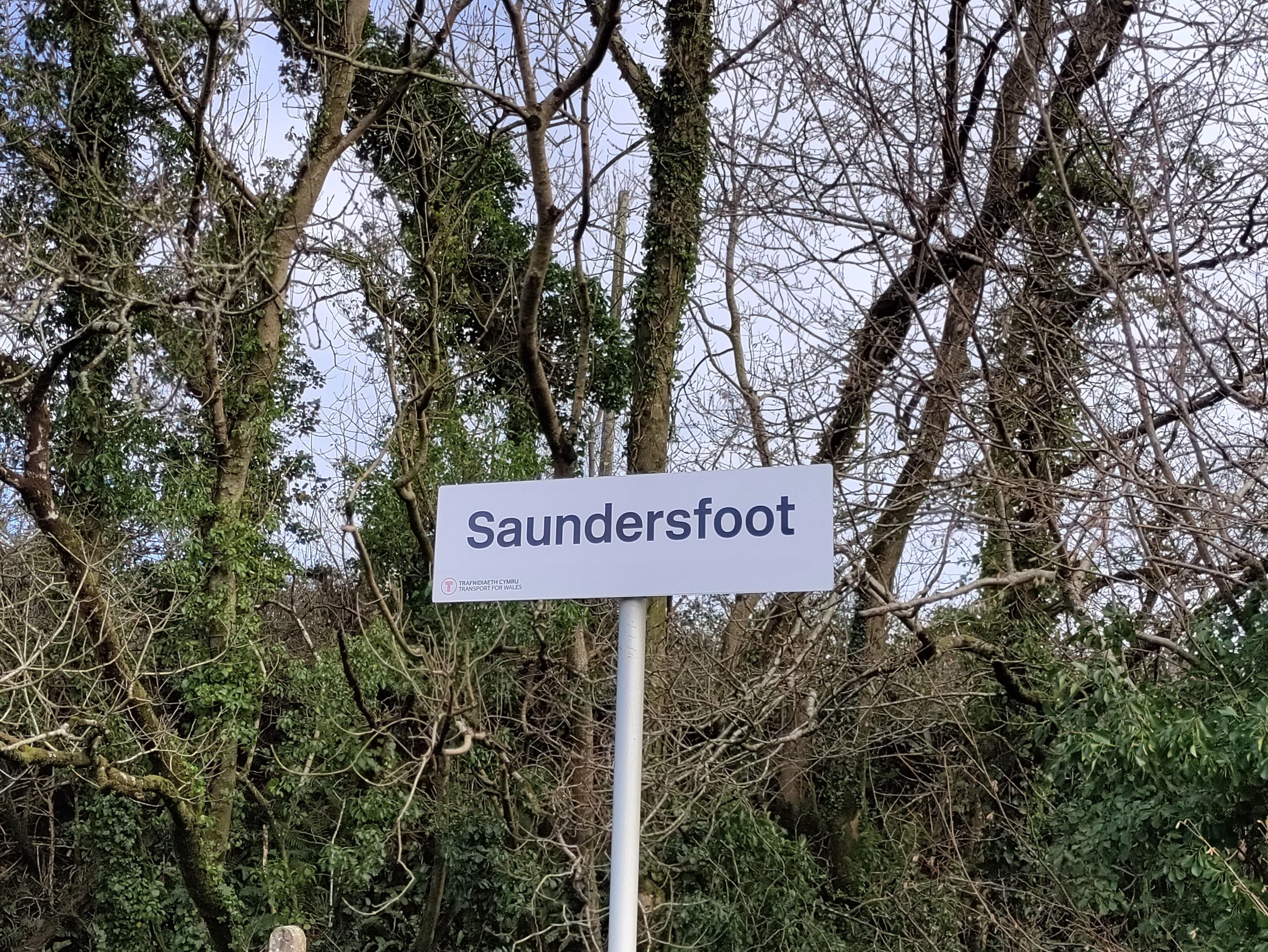 T want’s to get the train into Tenby so we walk to Saundersfoot Station. We get there and there’s a tree blocking the entrance! We have to duck under it to get to the platform and are starting to wonder if the trains are running. We hang around for a bit and a train arrives….but it’s only a maintenance train running the line and clearing it of trees! The driver kindly stops and says they’ve already cleared three trees off the line so far so it’ll be a while before services are back on.