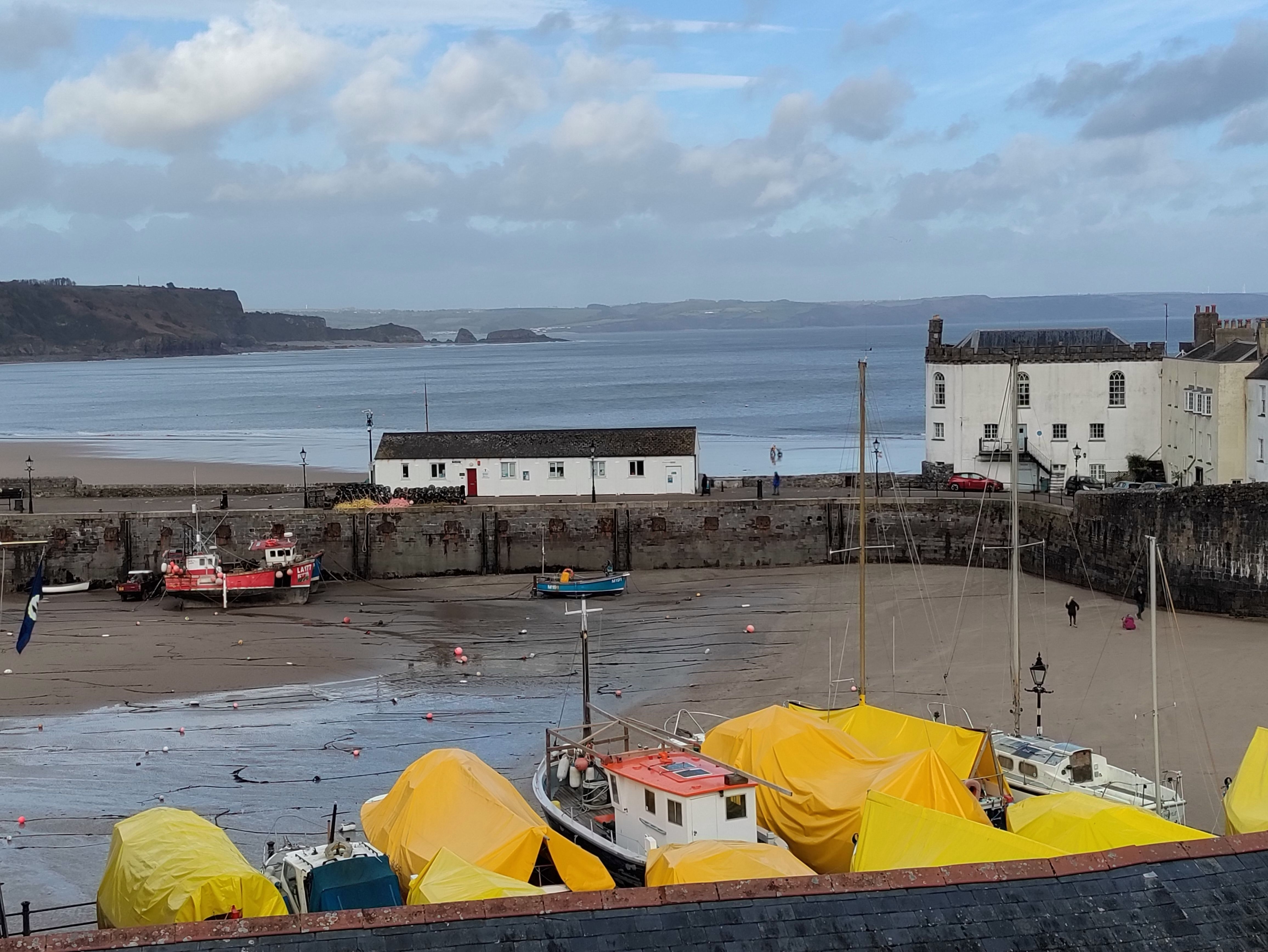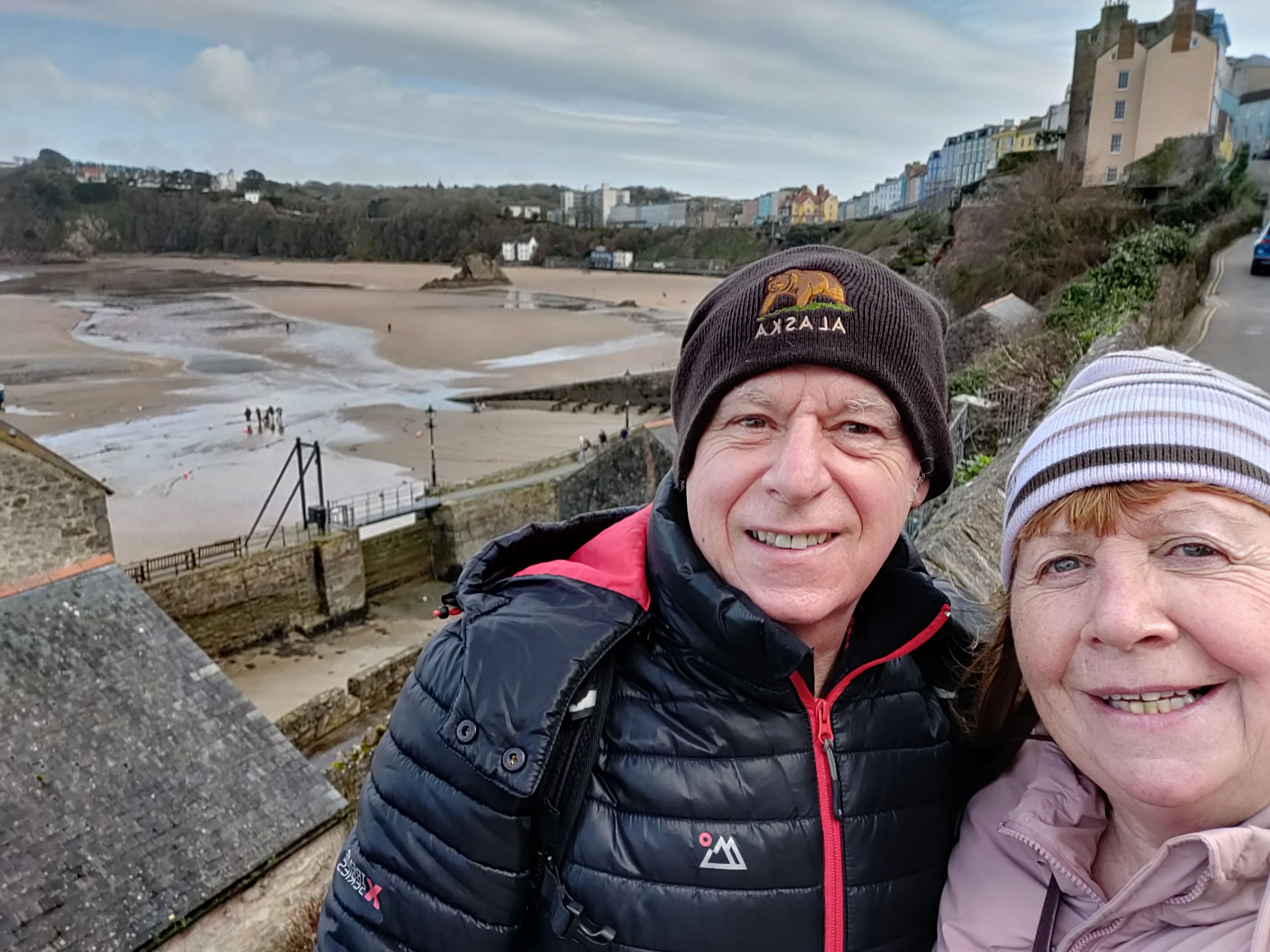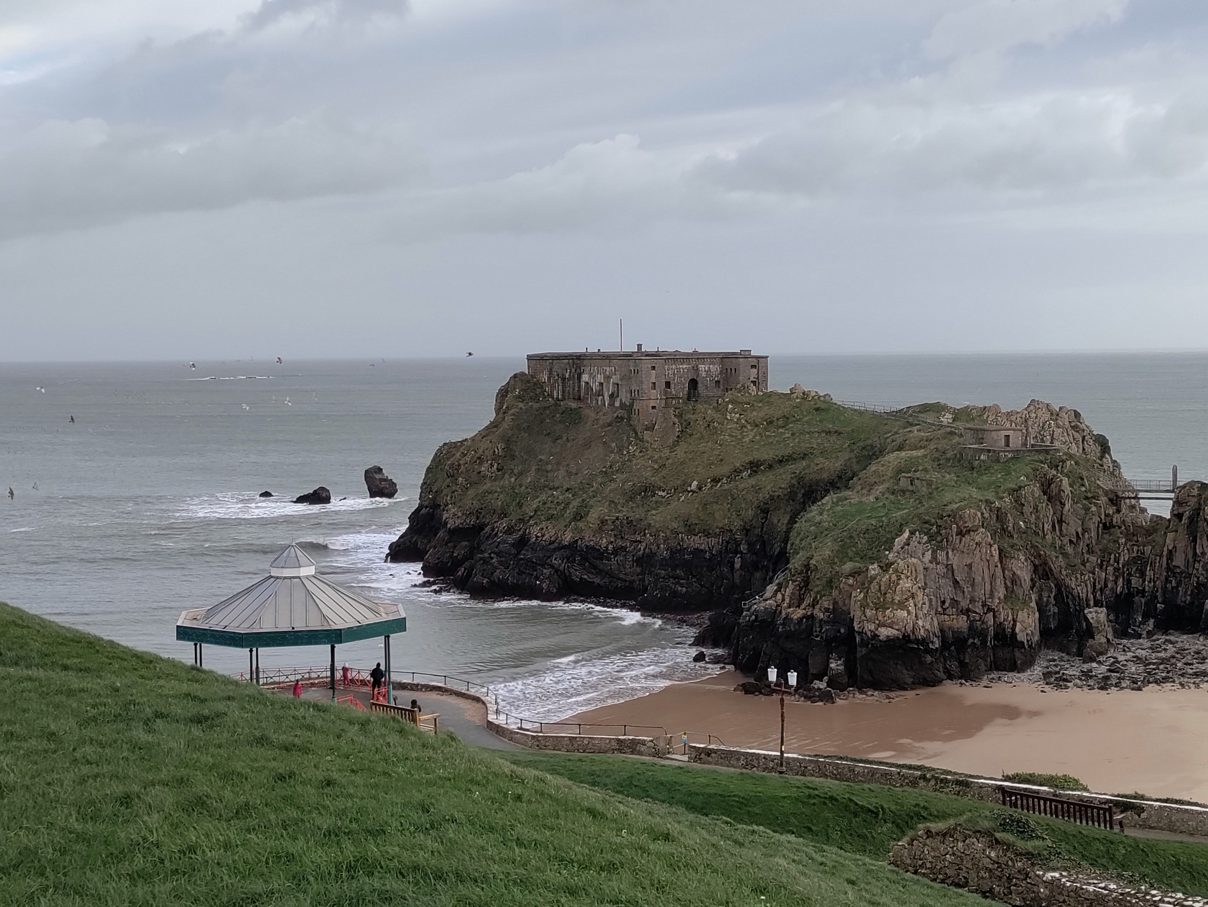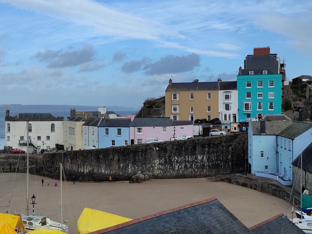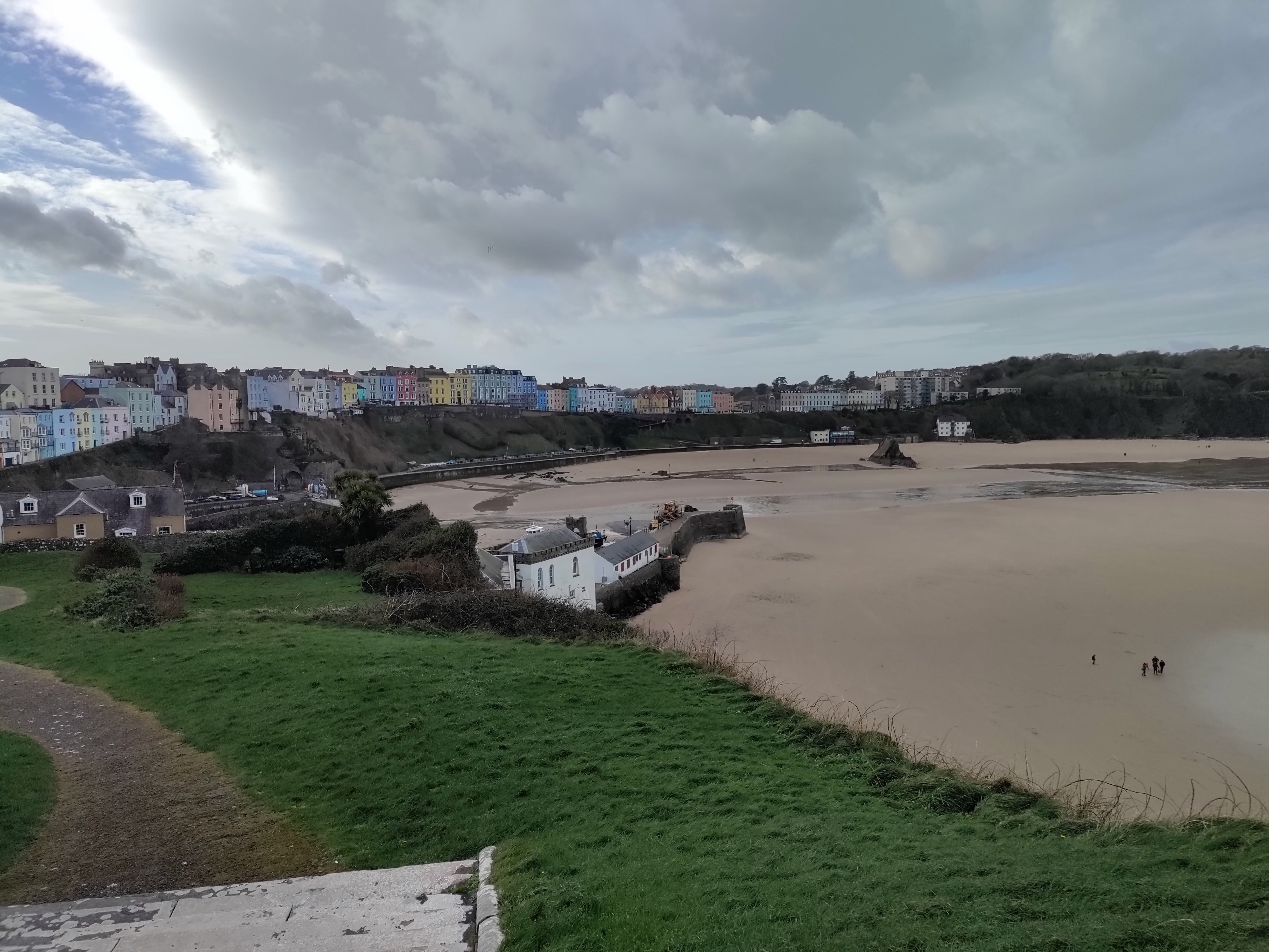 Castle hill view point is our next stop high above the beach and harbour. There’s not much left of the castle but there’s a huge statue of Prince Albert with outstanding views of the town and South beach. We can see Caldy Island and think about a boat trip to it next time.
