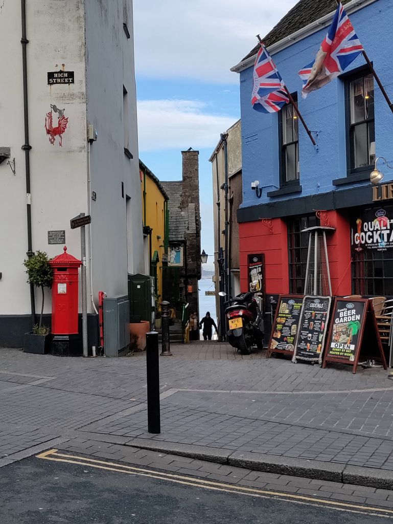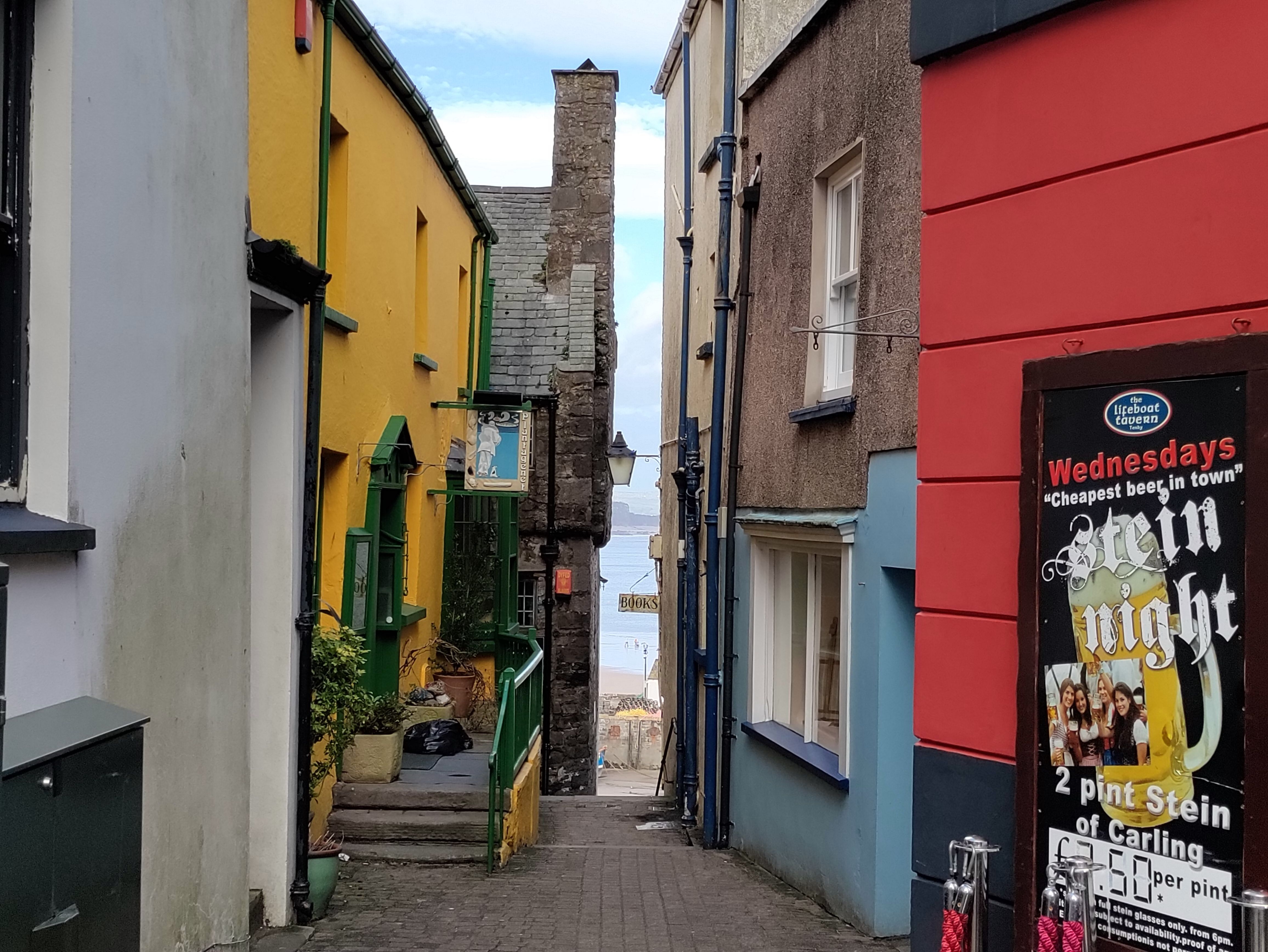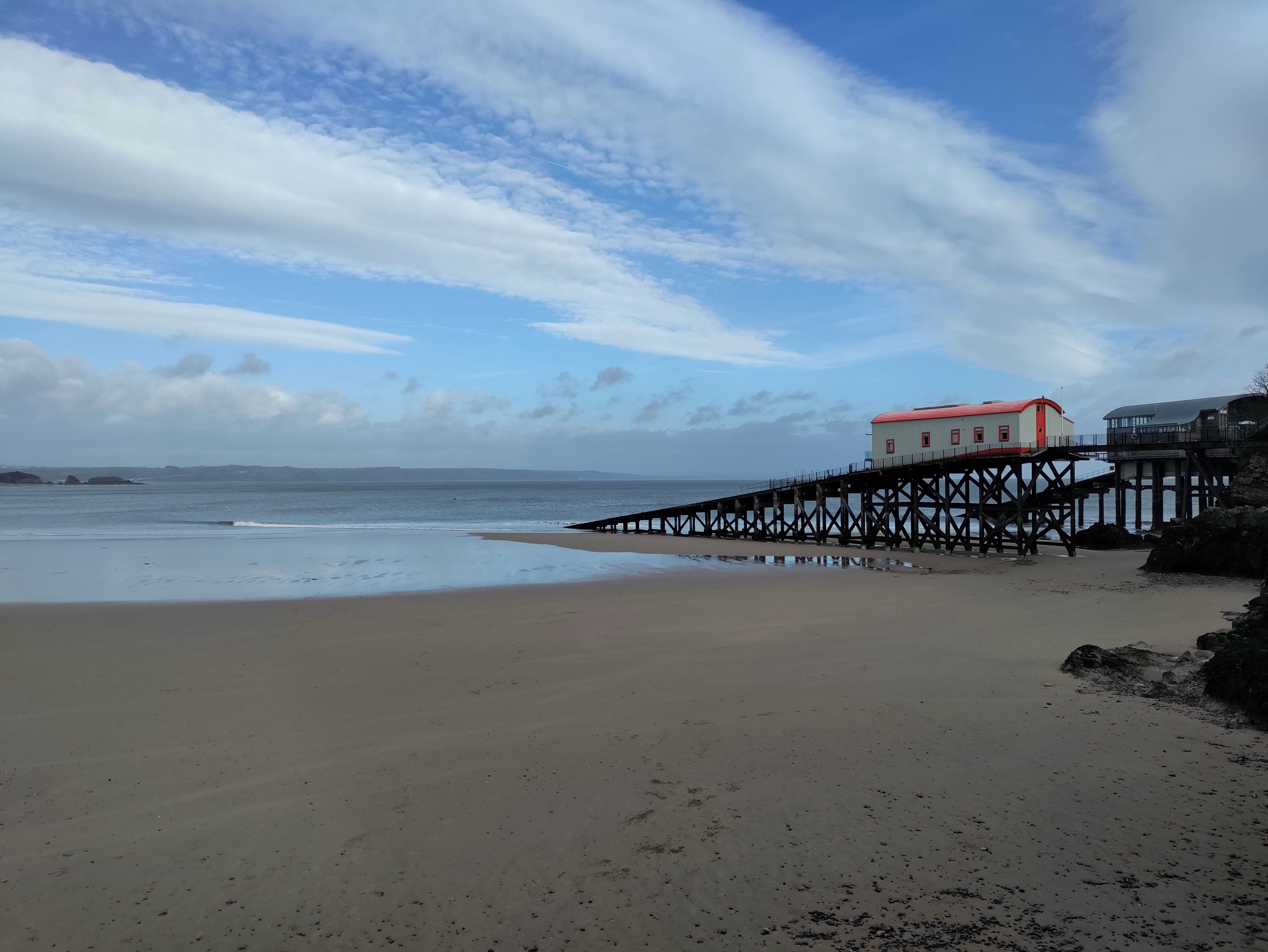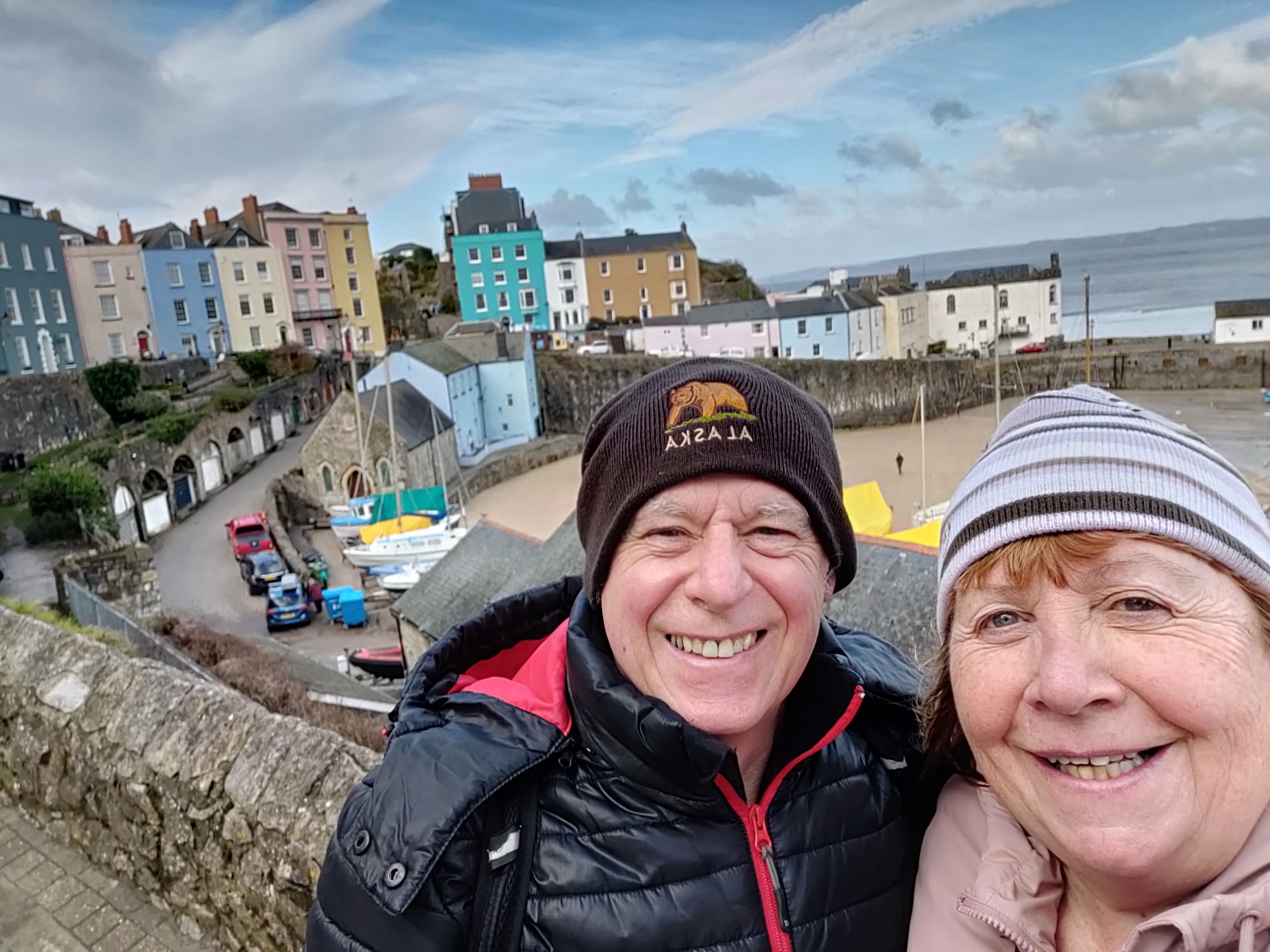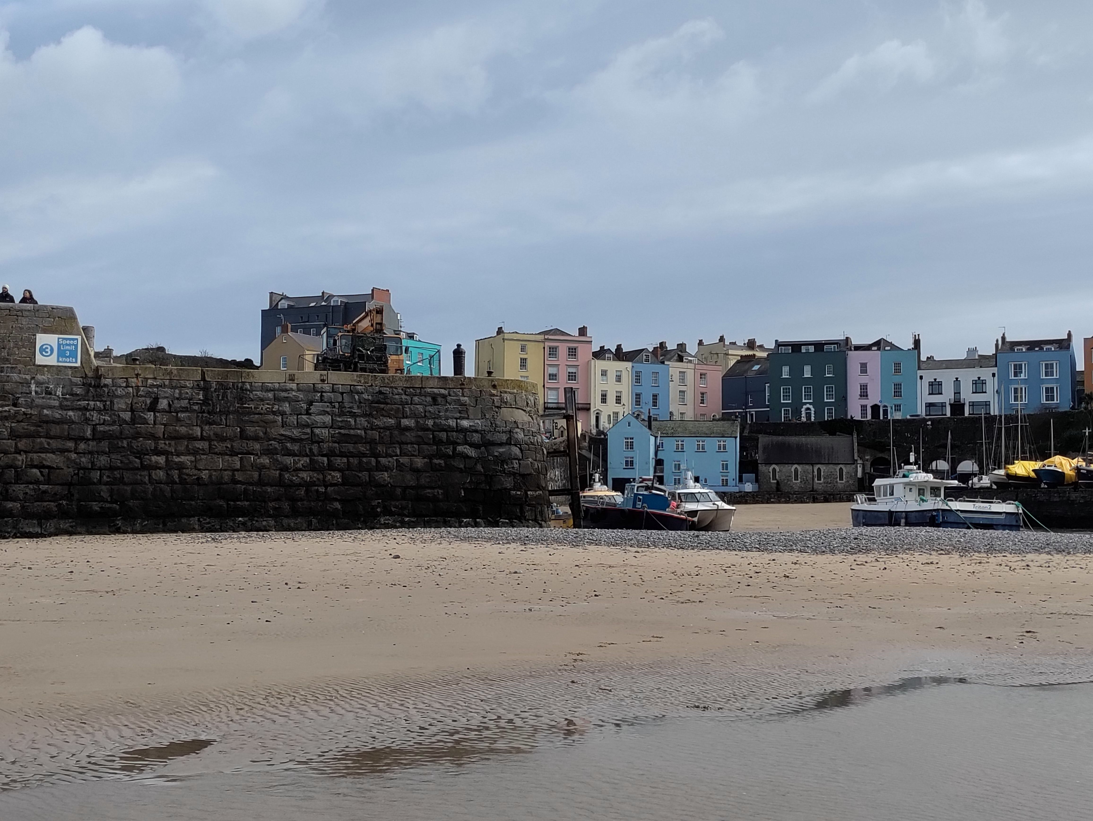 Castle hill view point is our next stop high above the beach and harbour. There’s not much left of the castle but there’s a huge statue of Prince Albert with outstanding views of the town and South beach. We can see Caldy Island and think about a boat trip to it next time.