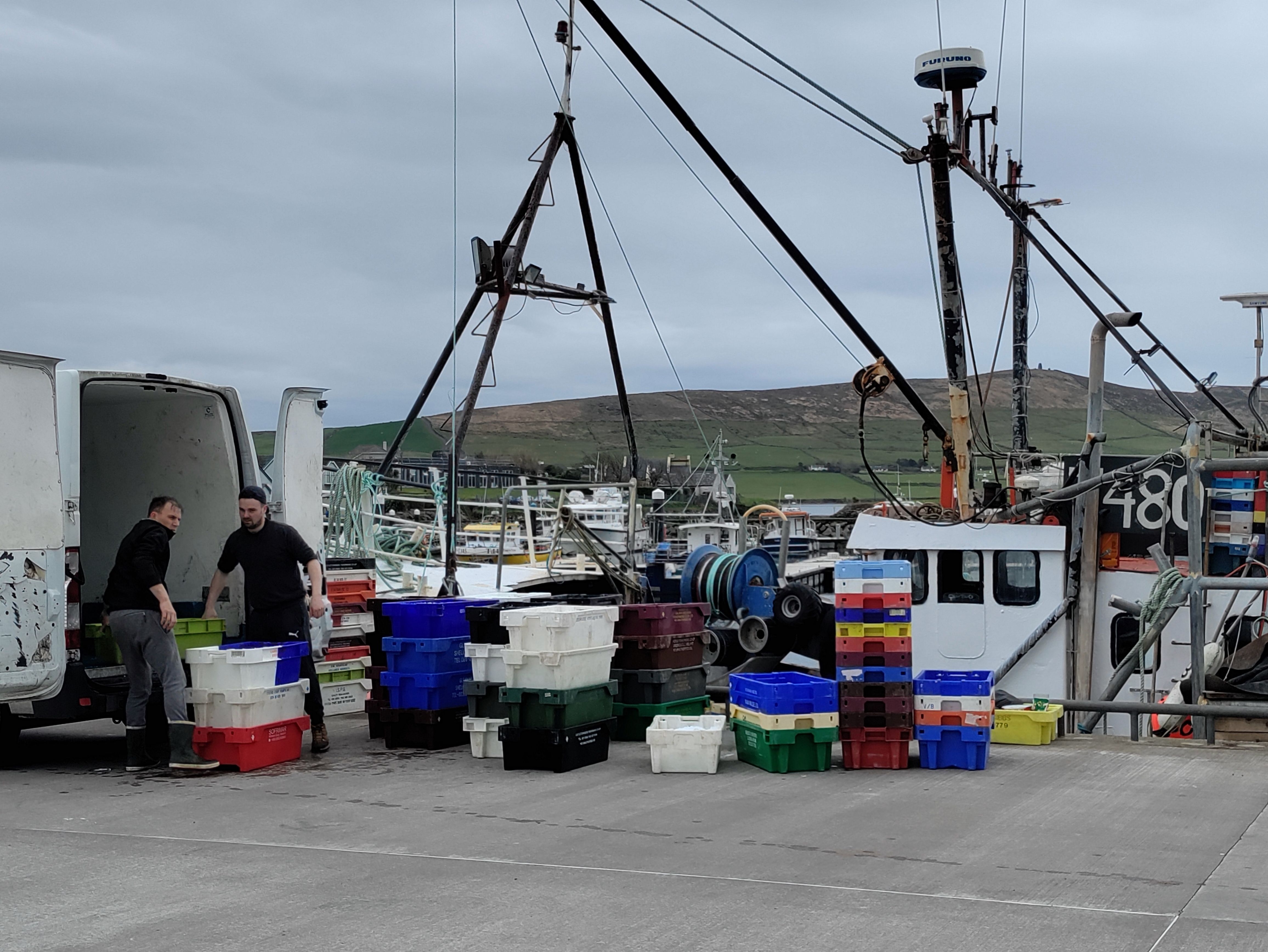 After a cuppa and a quick lunch we wander along the harbour into the town. There’s a fishing boat being loaded with ice for the hake they are planning to catch.