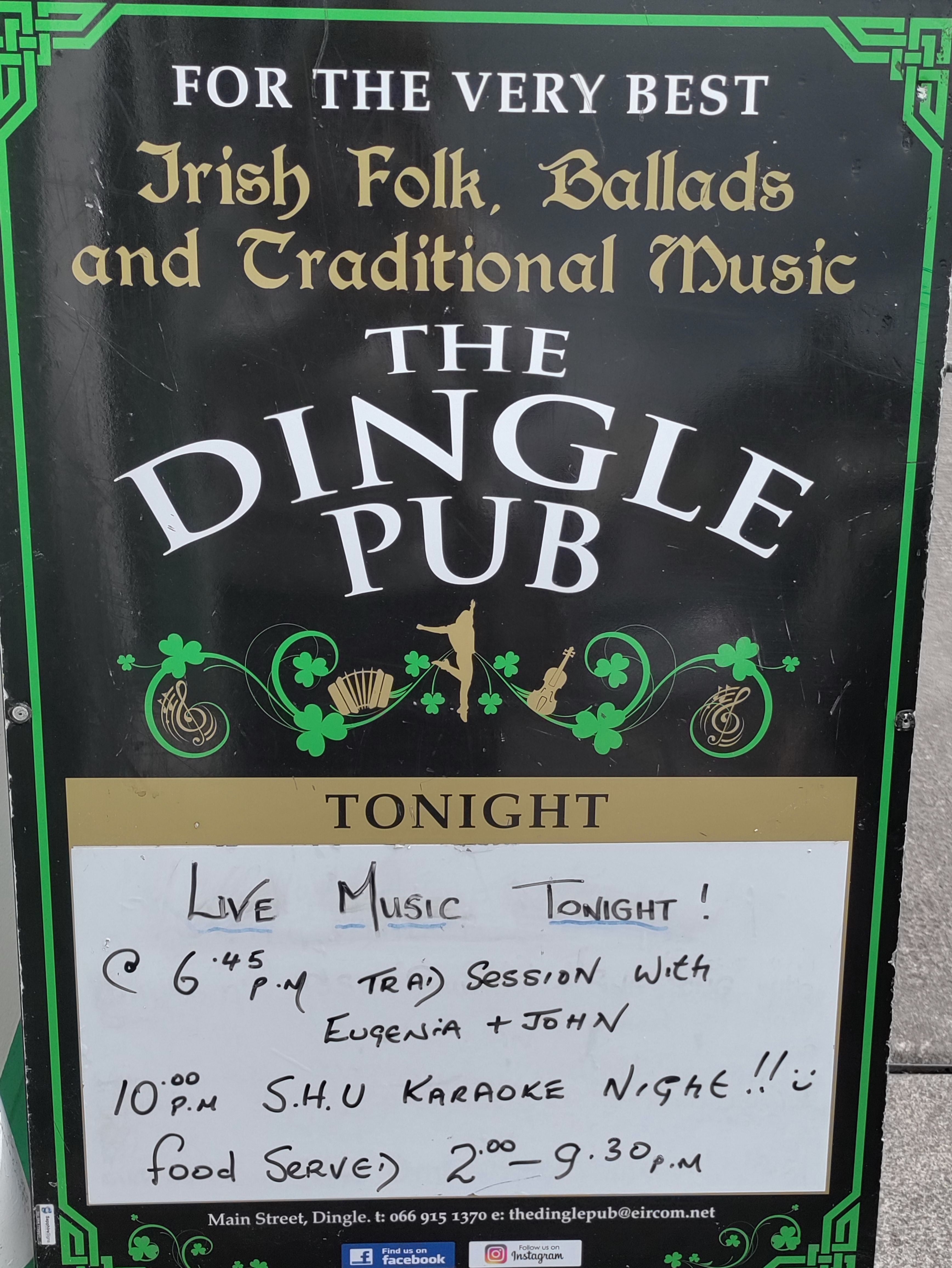 Passing a pub called The Dingle that promises music and entertainment this evening, we promise ourselves a visit after dinner.