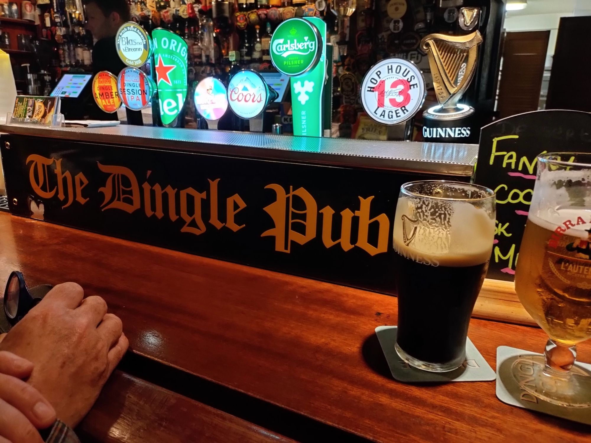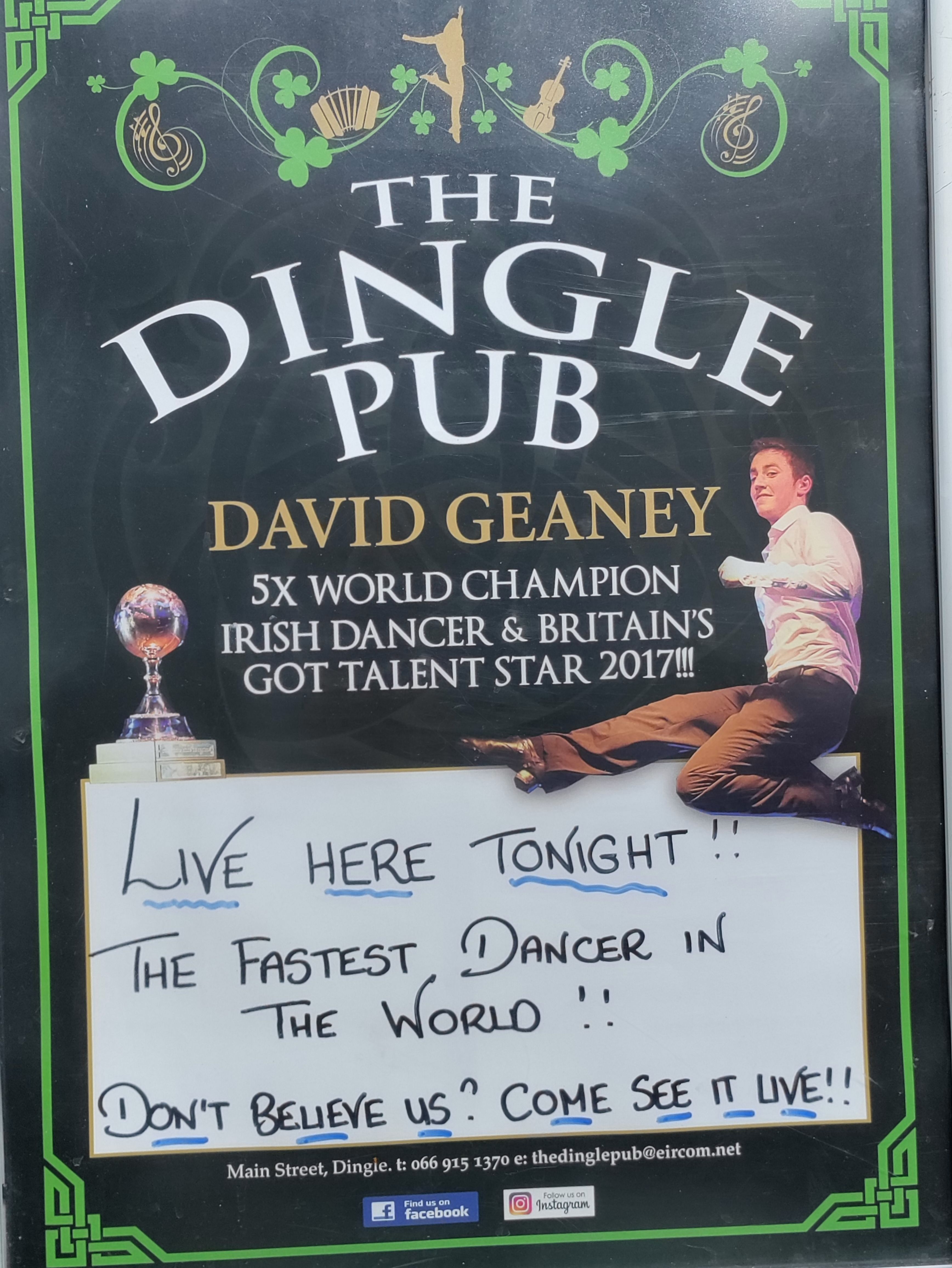 Next stop The Dingle pub where I manage to bag us seats at the bar. We are entertained by traditional music and then the six times world Irish dancing champion, who happens to be the landlords son! Very lively atmosphere that gets very busy full of young un’s so we move on after a couple of drinks. Manage to visit a couple more pubs and meet and chat to various friendly patrons and bar staff. Top night out in Dingle.