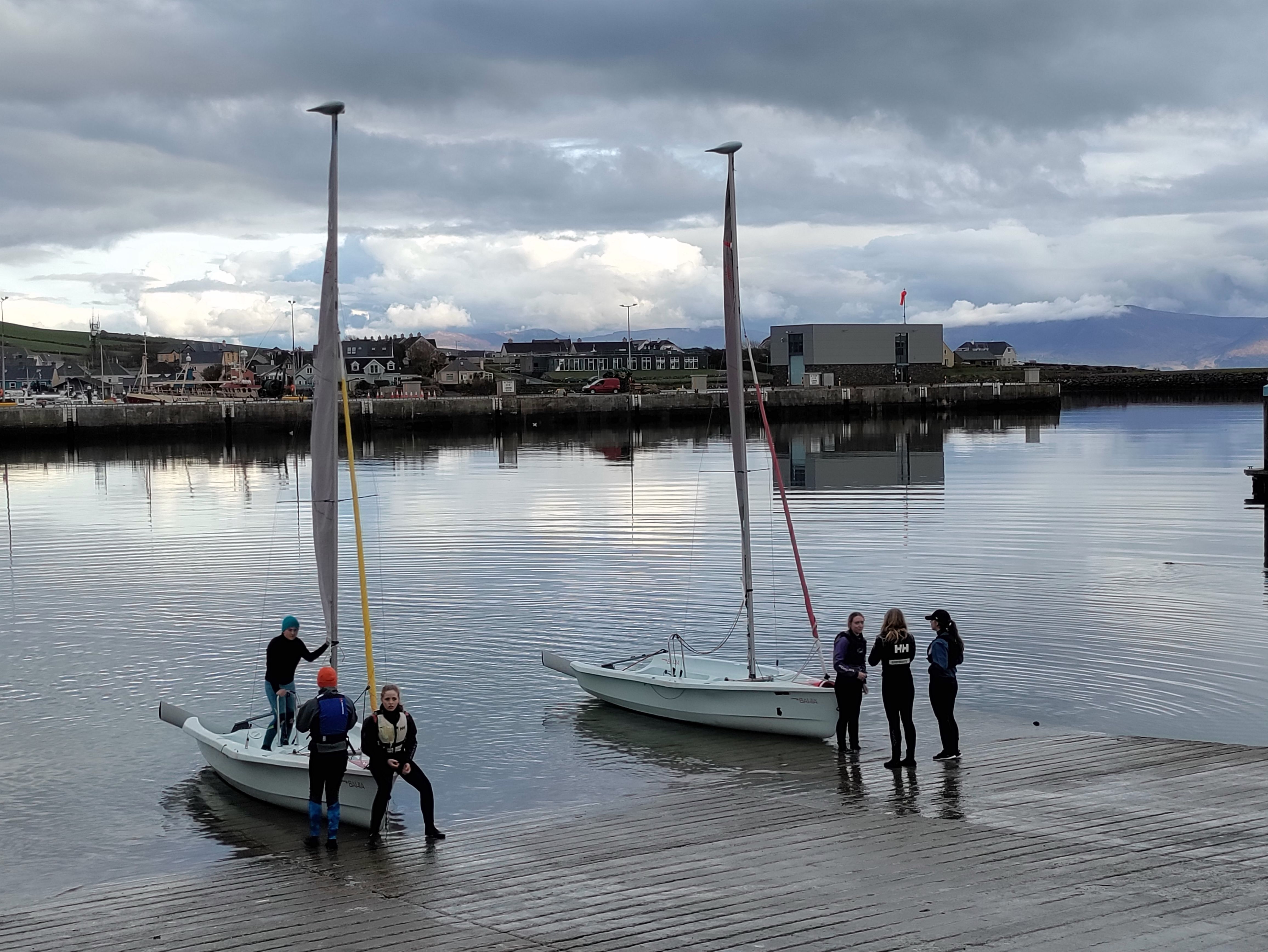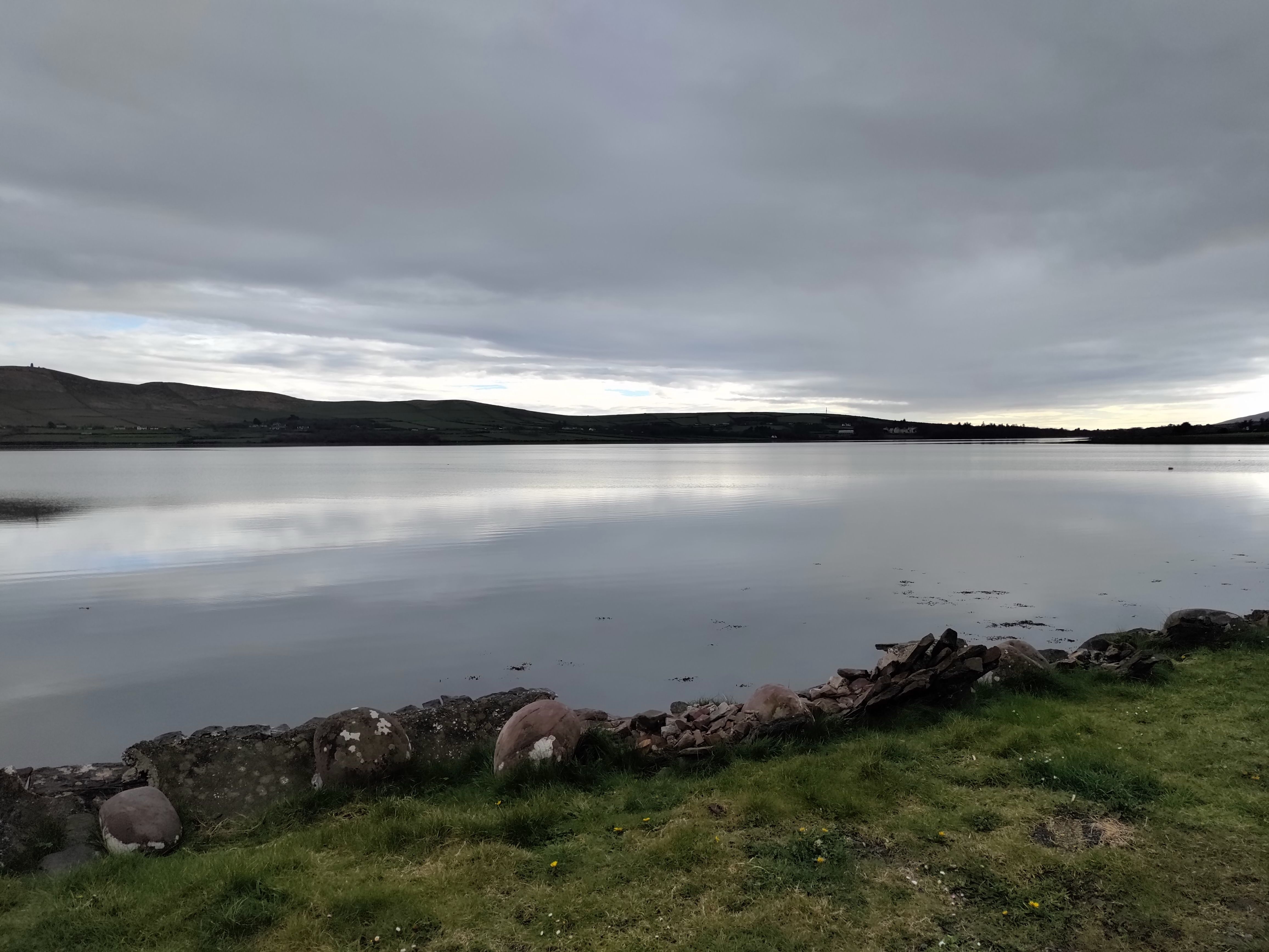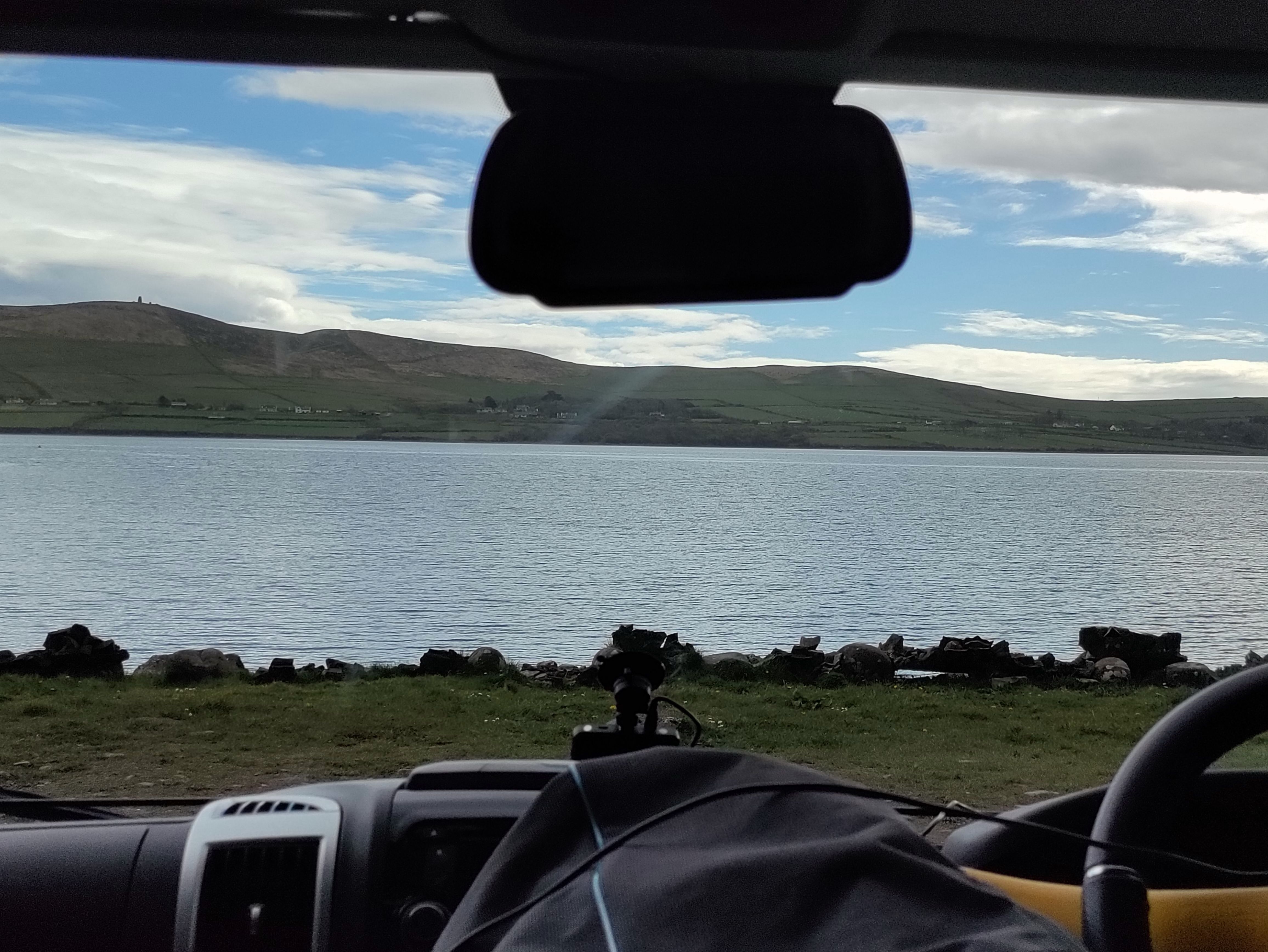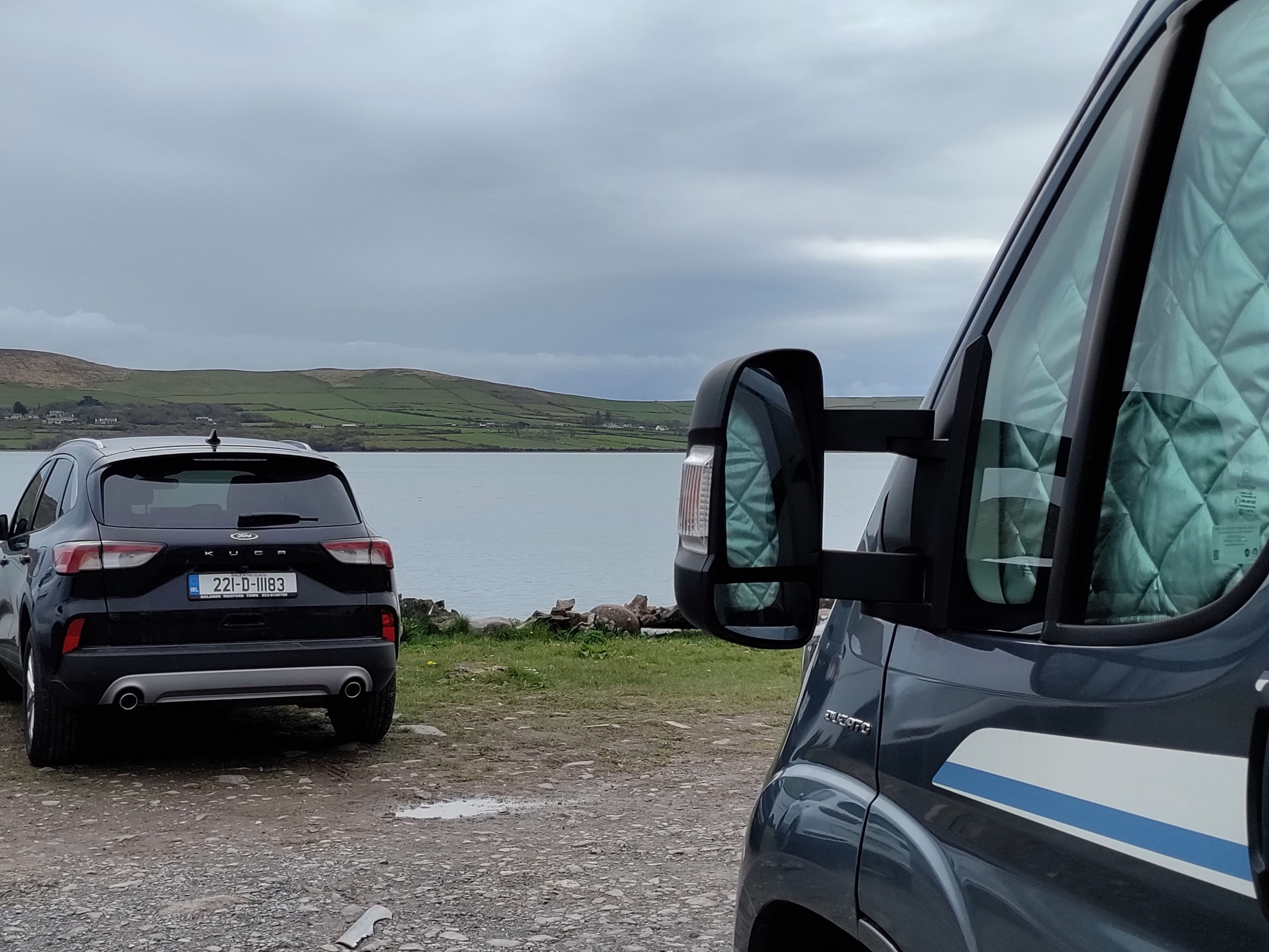 I’ve recently joined a Facebook group called TMI, Total Motorhome Ireland. It’s been really useful with great maps of places to stop and fab free advice to any question. Tonight we are planning on staying at a free spot just next to the Marina as suggested by the TMI group, assuming we can find it. We park temporarily in the Marina carpark but quickly suss out where it is by spotting other vans. It’s a squeeze to get in and requires some manouvering but eventually we are set. There’s another two vans already there. What a view too,straight out over the water.