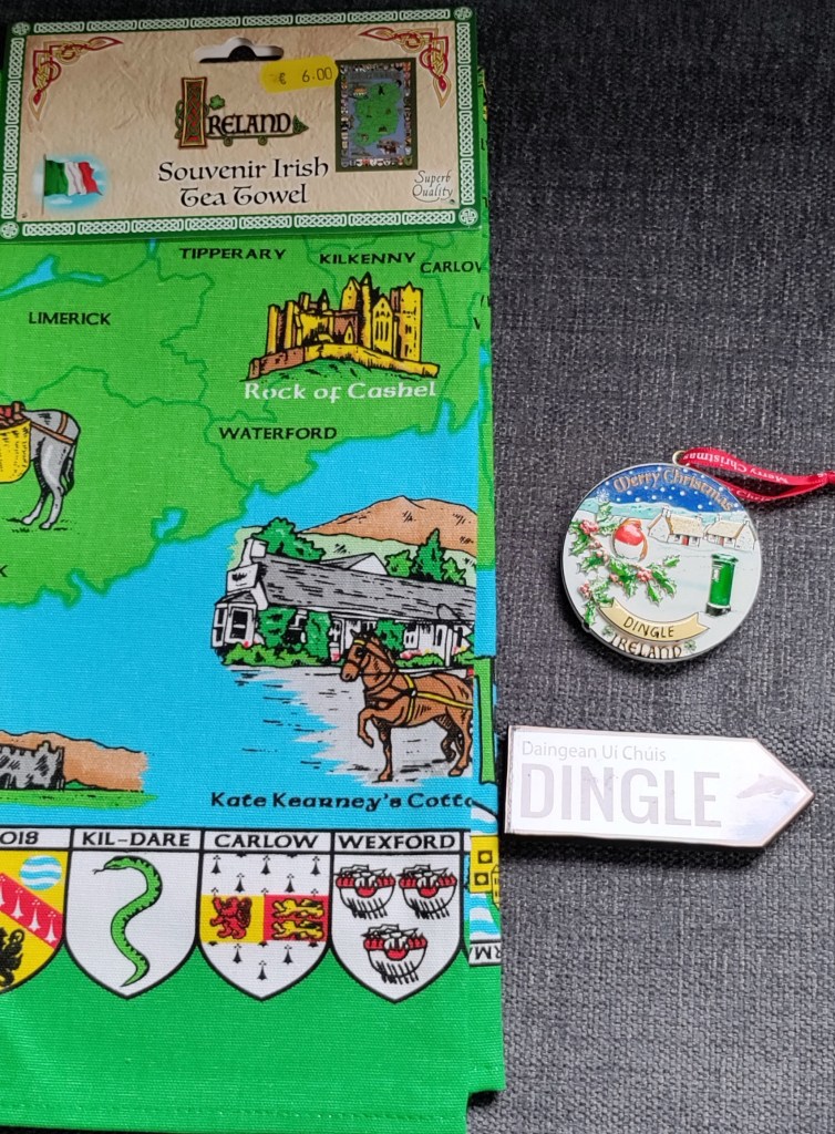 Dingle is bustling and full of restaurants, bars and gift shops. Must get rammed in the summer. We wander around and buy our first souvenirs, a tea towel, Christmas decoration and of course a fridge magnet!