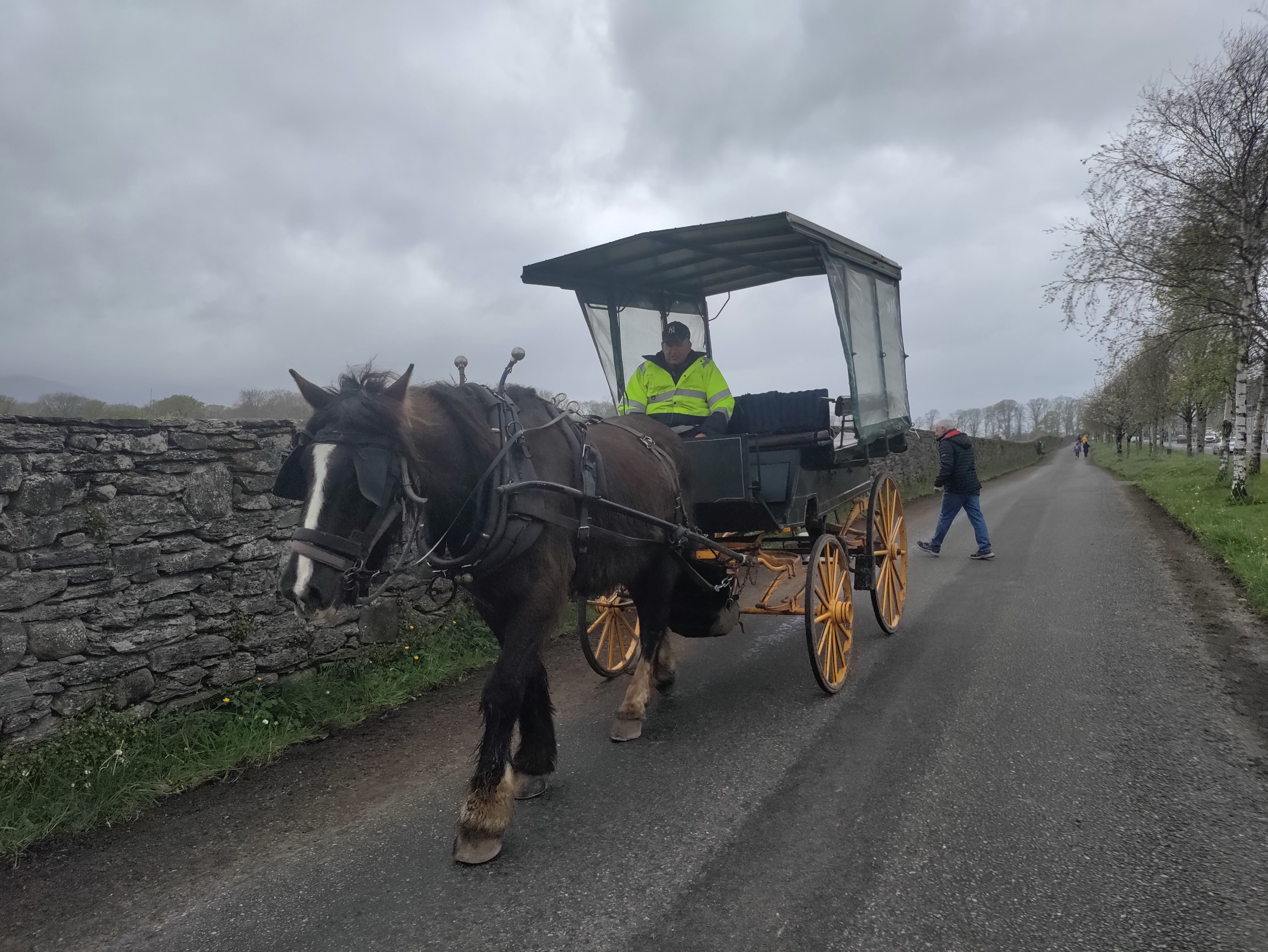 On the way into Killarney a Jaunting Car passes us by and we also see part of the wild red deer herd over the wall of the national park.