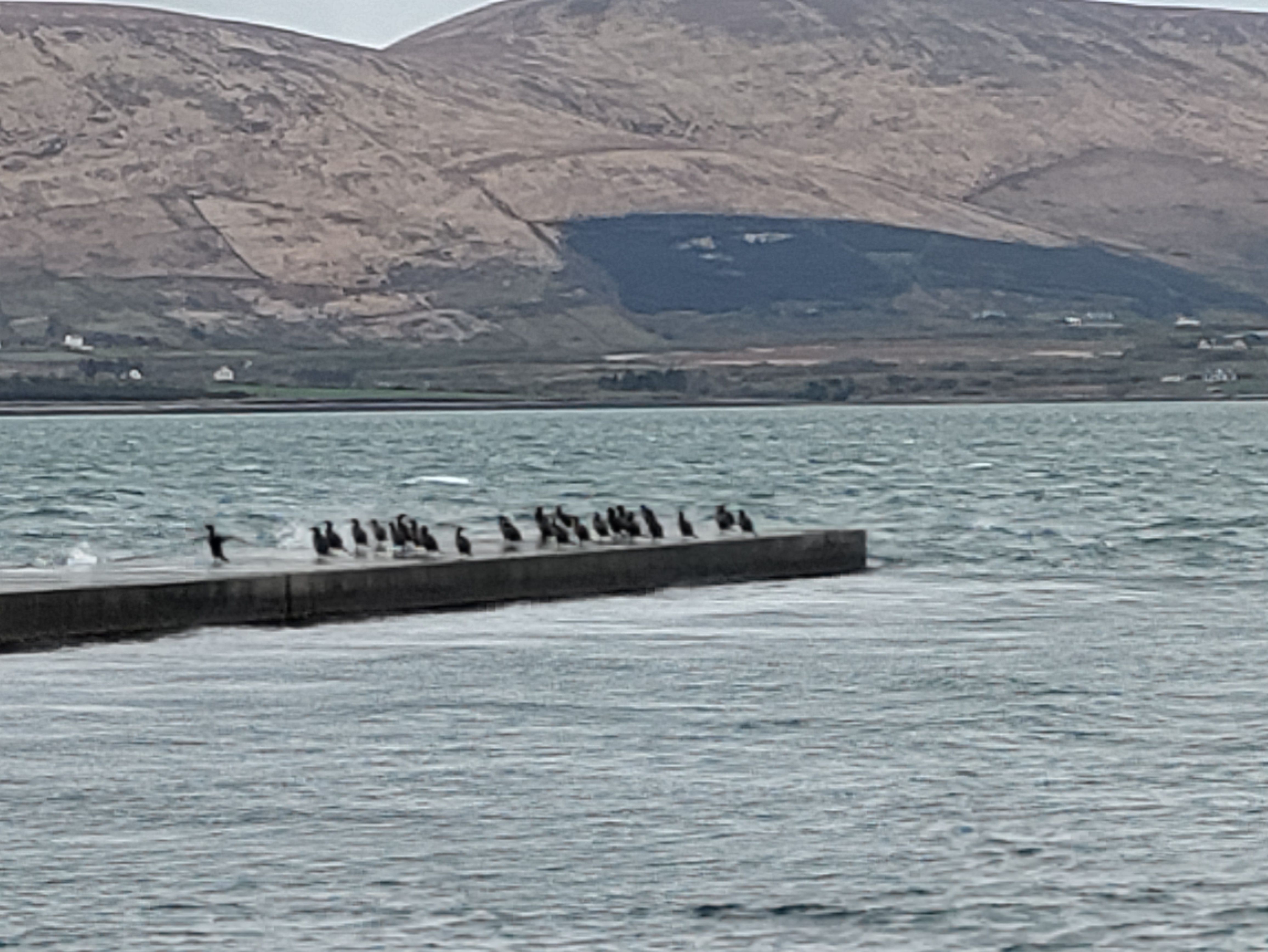 We decide to cycle to Chapeltown instead approx halfway across the island and about 3km away. It’s started raining too and it’s quite windy. Of course it turns out to be about 2km uphill into the wind and then down the other side with absolutely nothing to see once we arrive. We take the coast road back to the ferry and it’s mostly flat so that’s a bit easier and we get some good views across the bay.