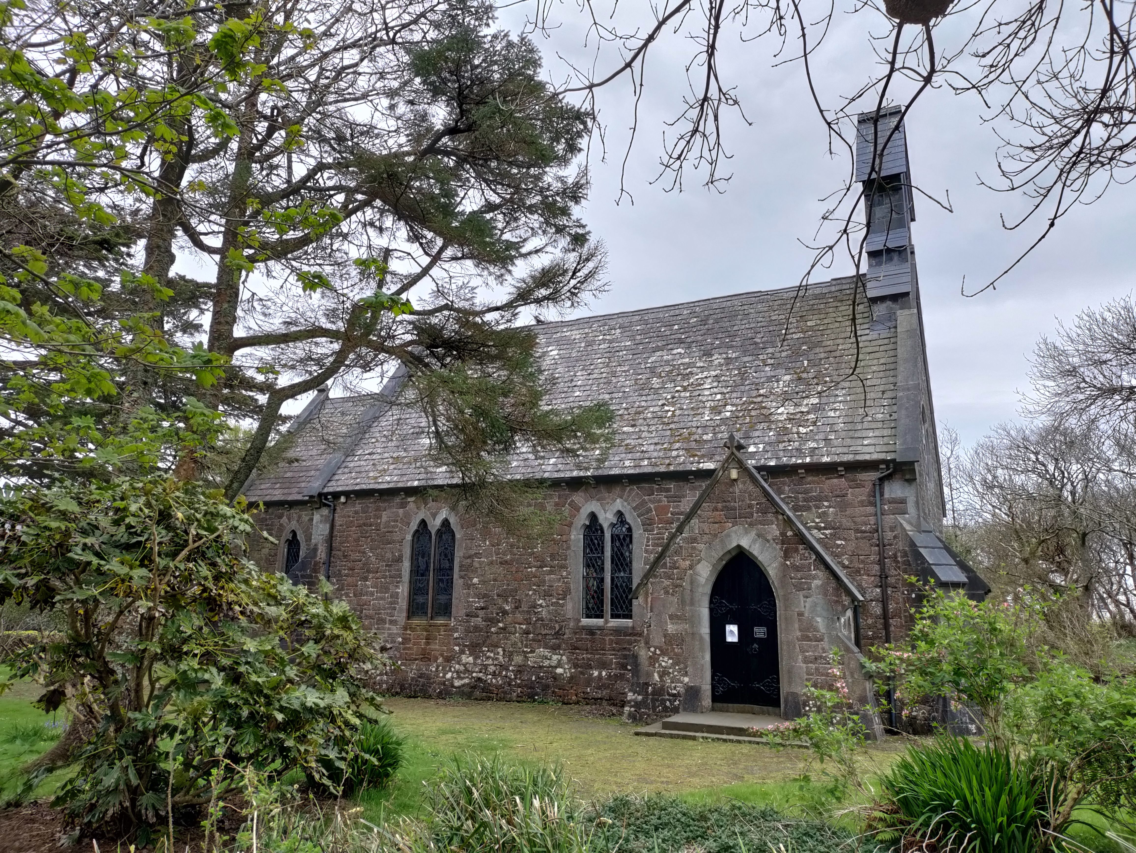 We pass a large house that turns out to be the Cable station. Next a quick pit stop in a church and then we eat a butty outside in the wind and rain before we finally we get a cuppa in the Royal Victoria Hotel.