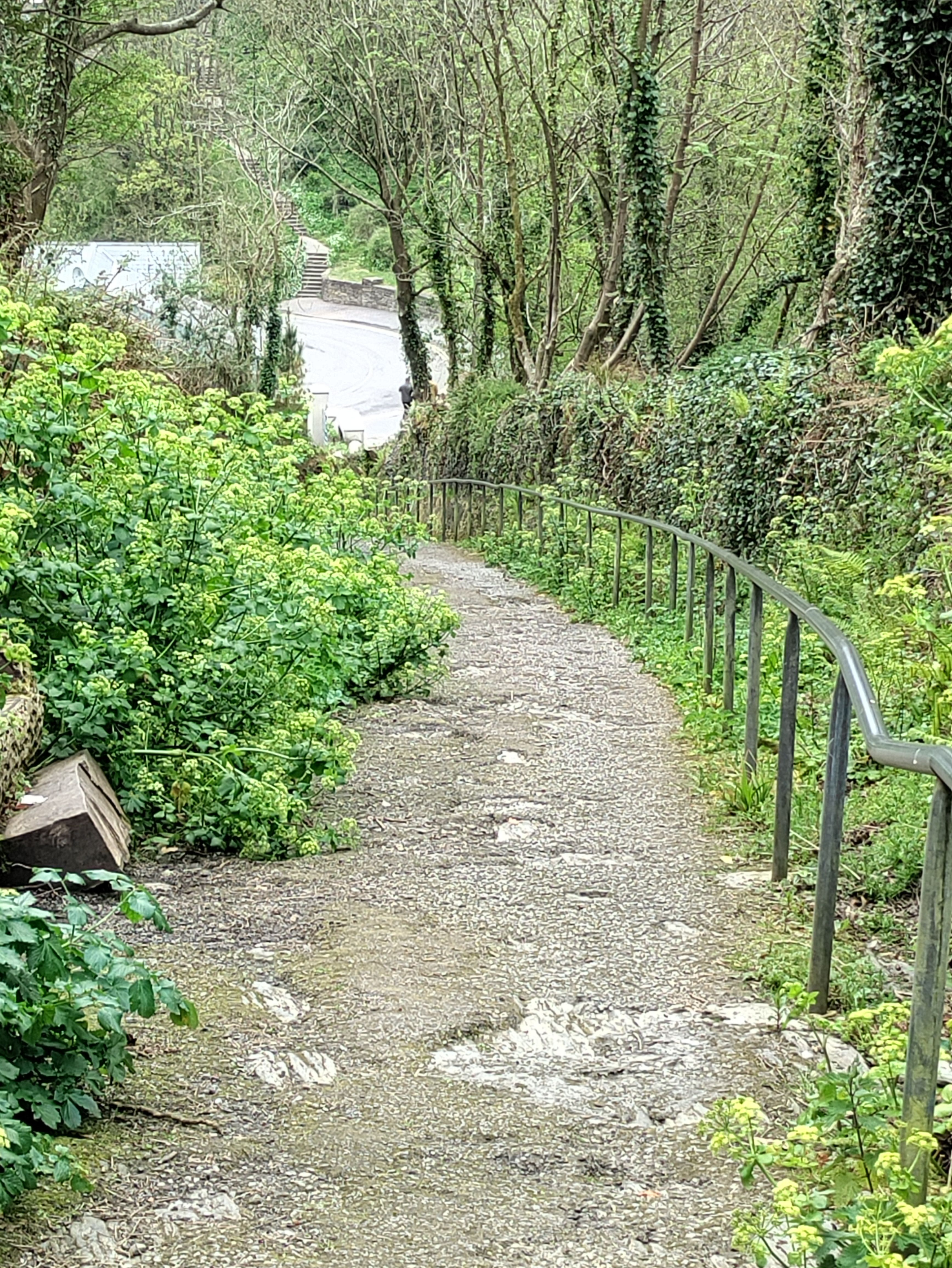 The steep ascent brings us up to the top road and we make our way along admiring the many cliff top mansions with their amazing views over the bay. We thought we were doing the scilly walk at this point but we can’t see any signs. Keeping going along the road we meet a few more hills of course.