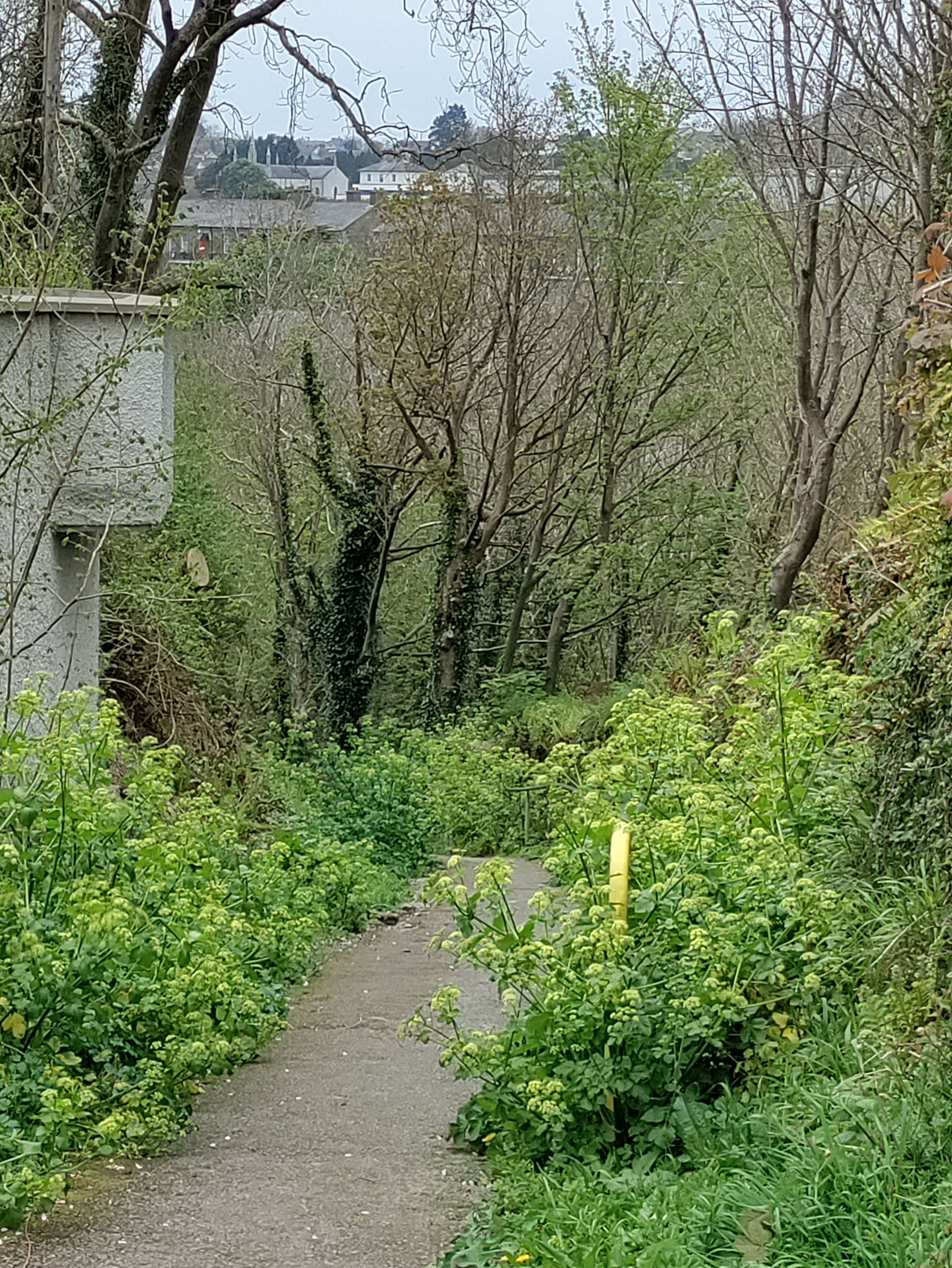 Up the hill again to the start of the Scilly walk. It’s right on the coast under the grand houses we saw from the road. It’s descends steeply at the start and eventually flattens to a lovely coastal path into Kinsale harbour.