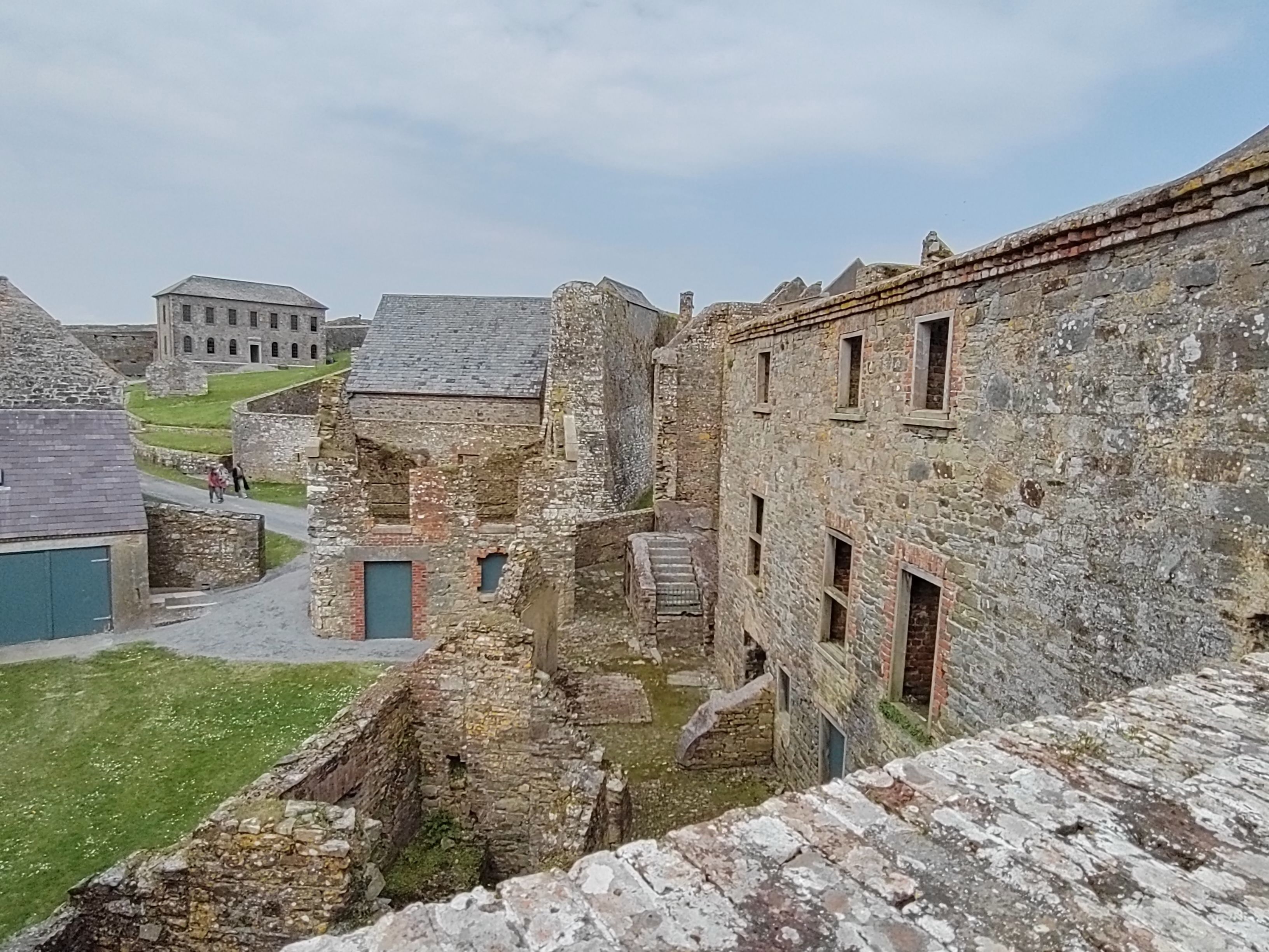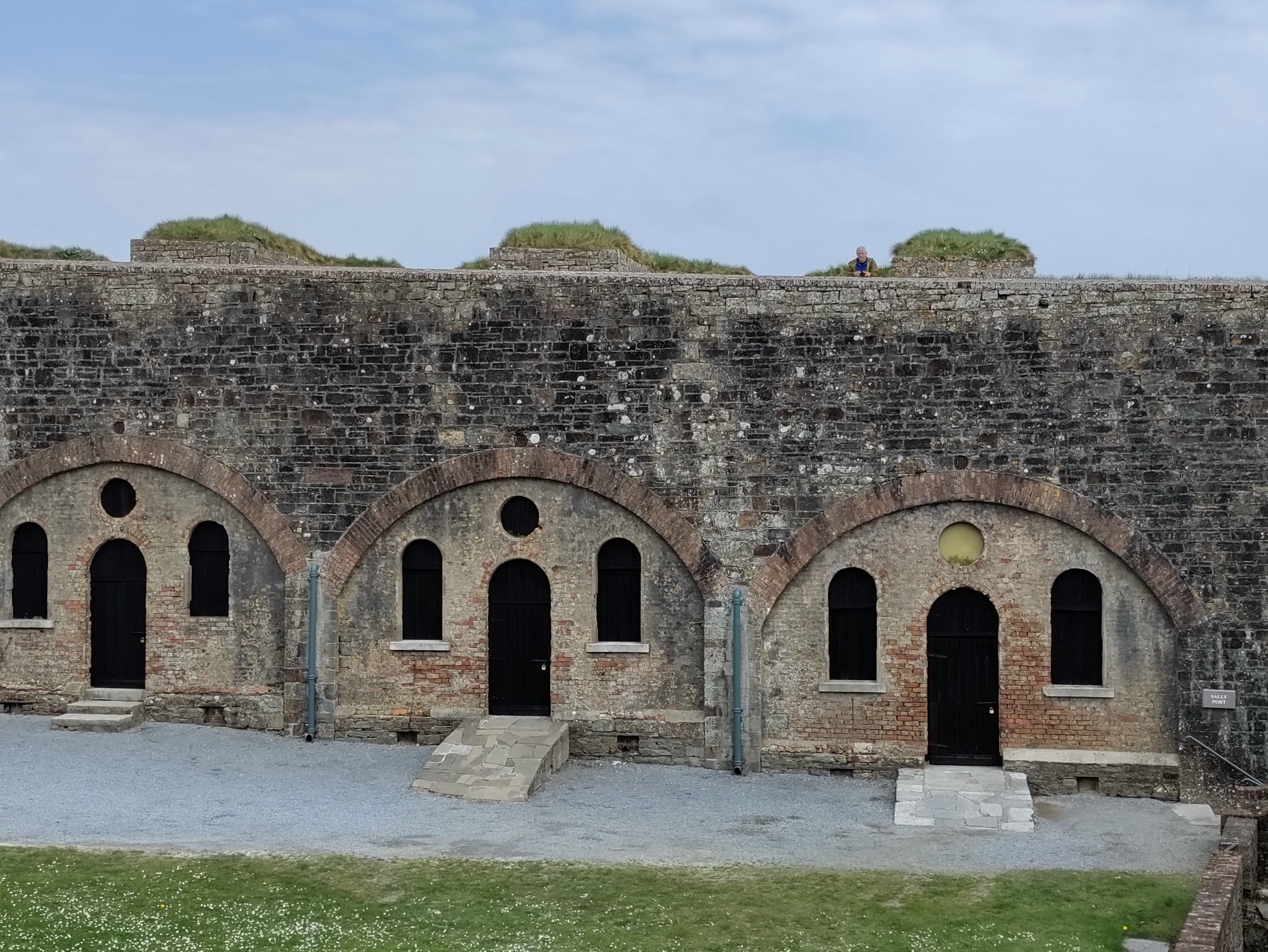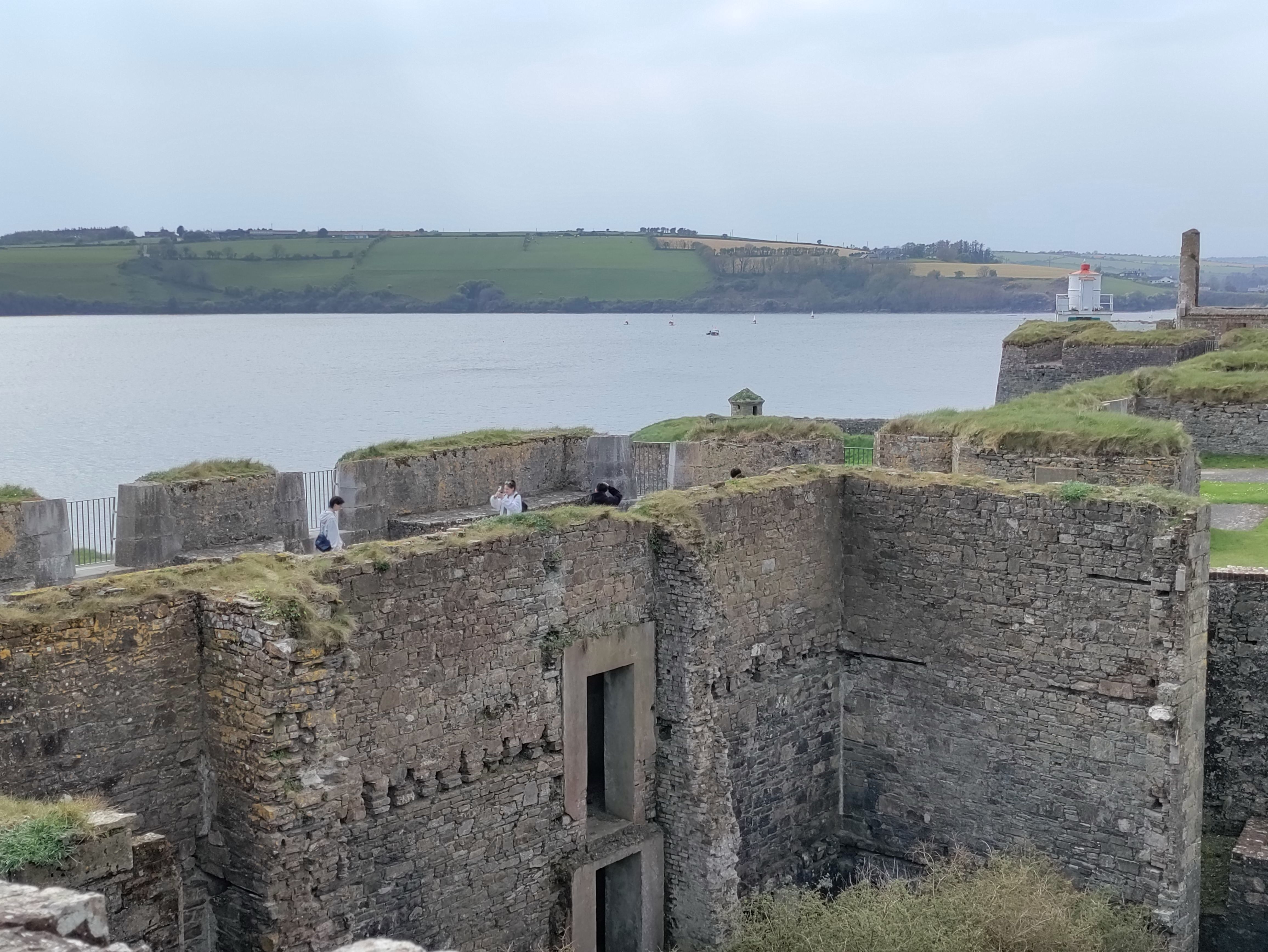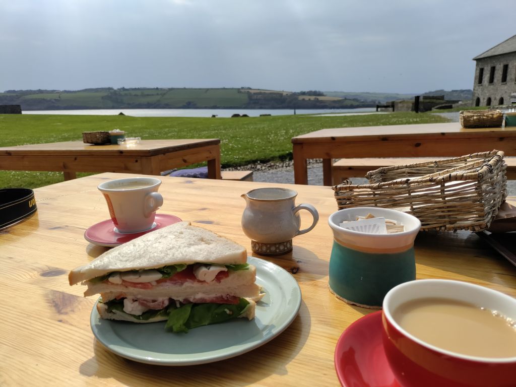 Up a little hill and then across the moat into the Charles Fort. T’s first stop is an exhibition which I leave him at so I can sit outside in the sun reading my kindle! A tour of the castle and ramparts in the sunshine next followed by a cuppa and shared sandwich in the castle cafe. It’s really sunny now and the view is fab.