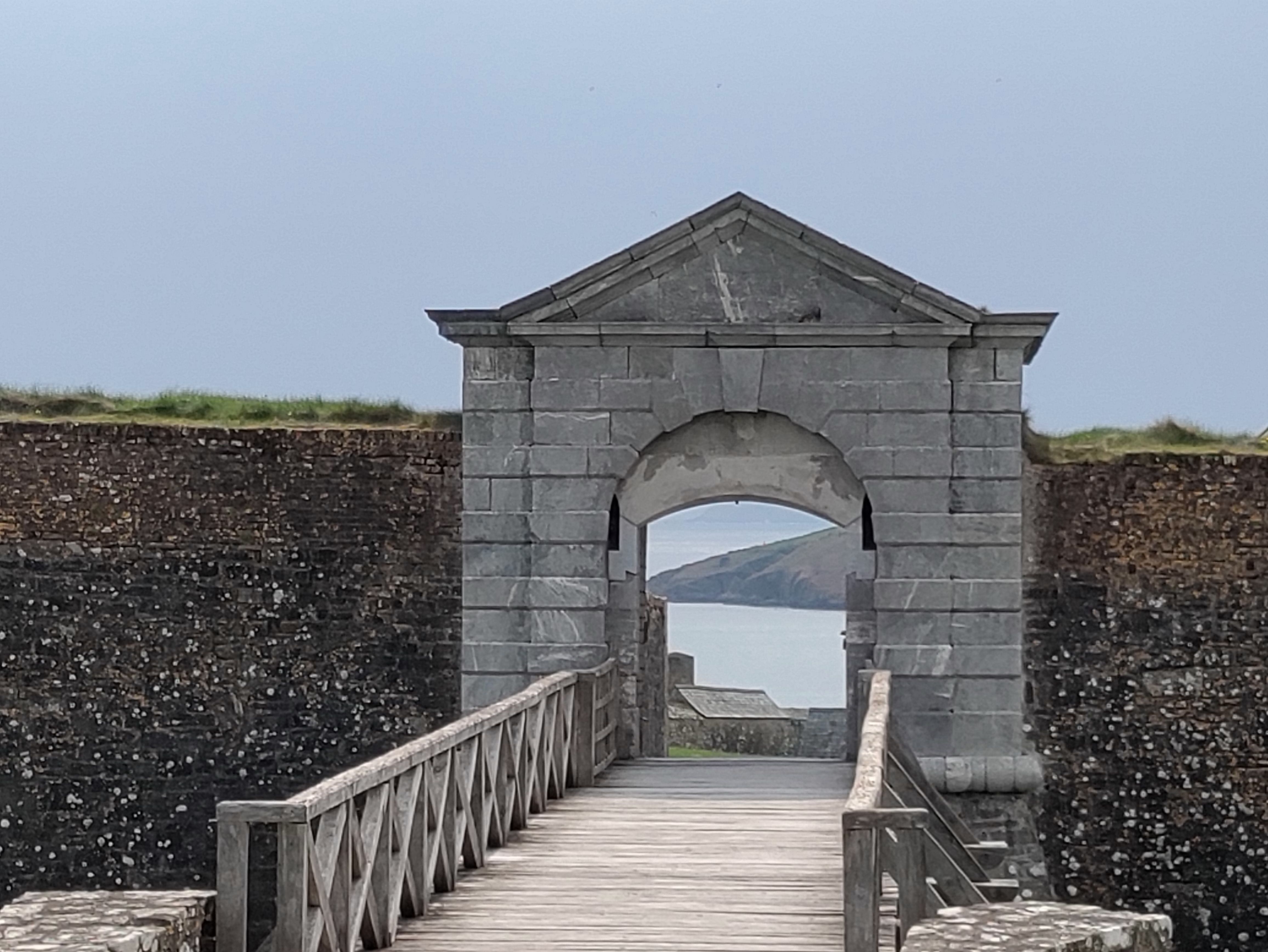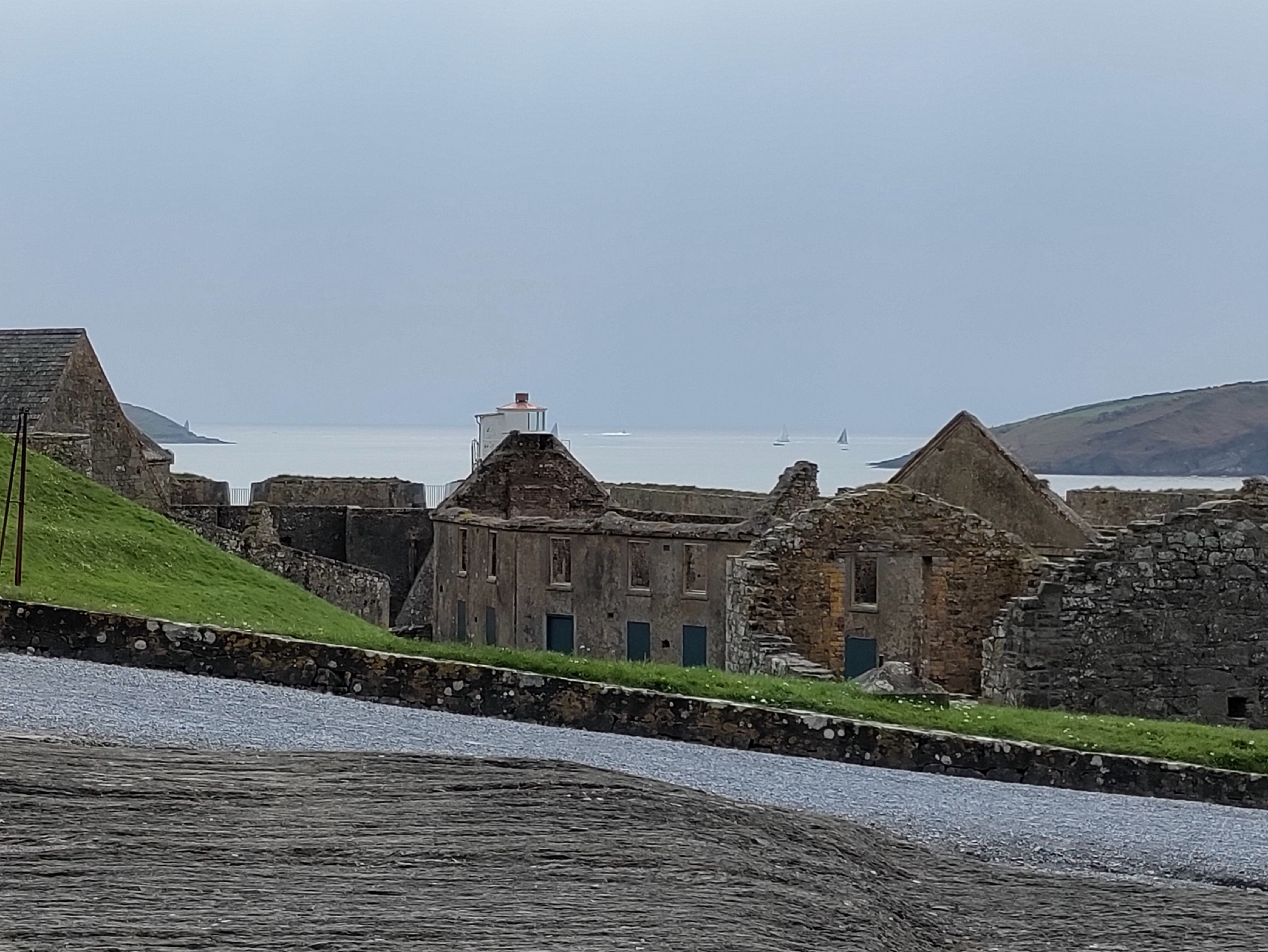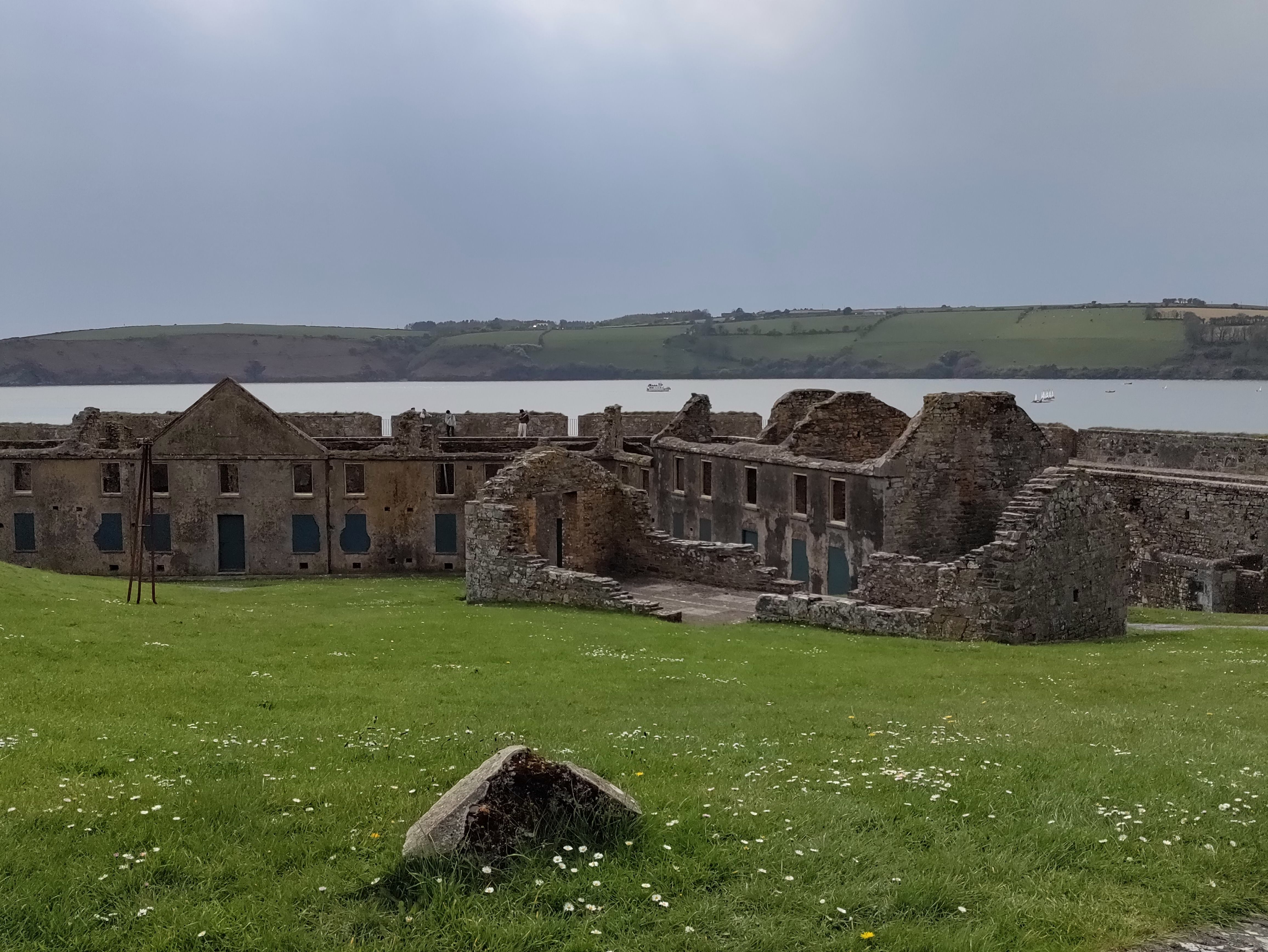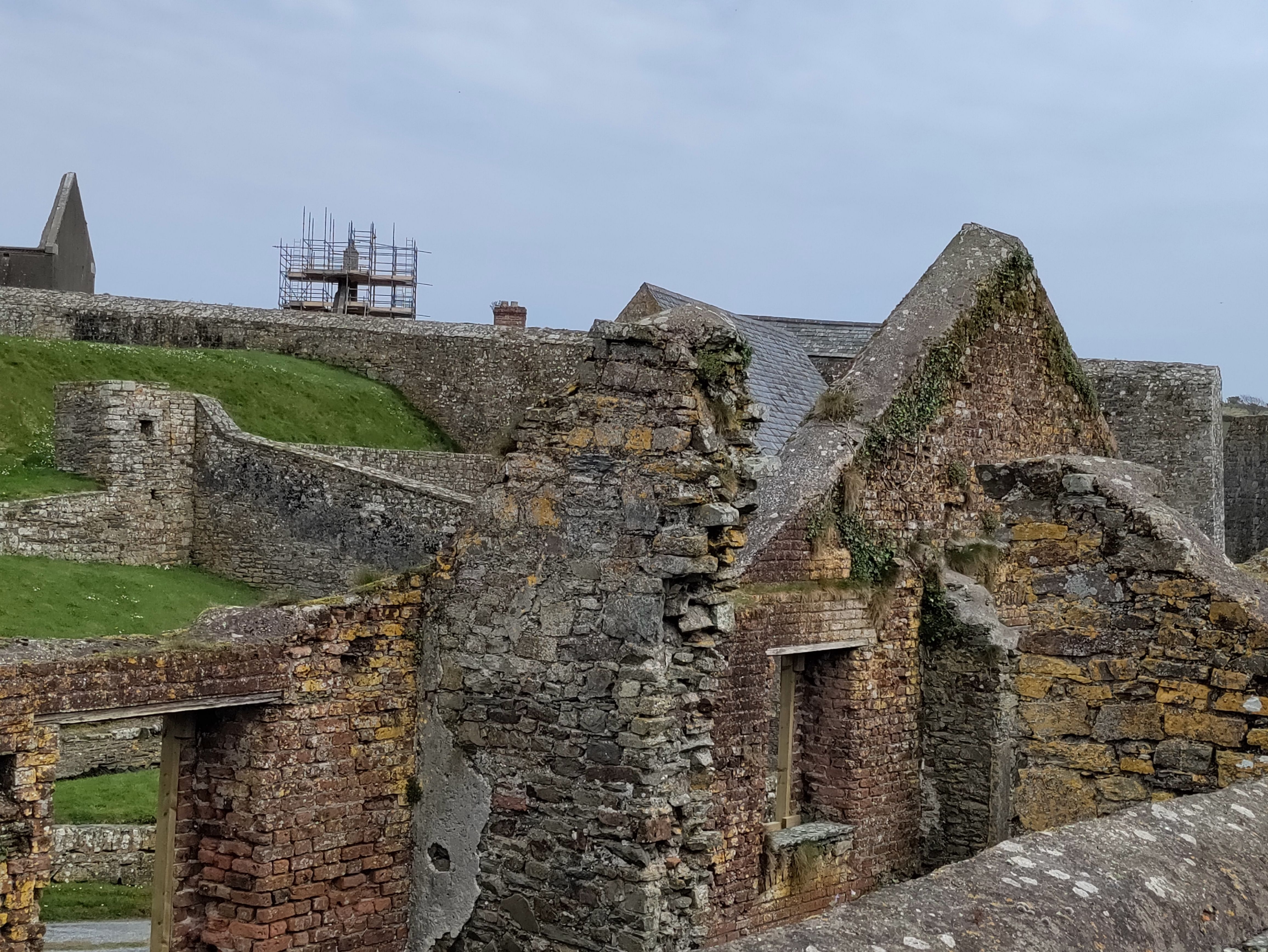 Up a little hill and then across the moat into the Charles Fort. T’s first stop is an exhibition which I leave him at so I can sit outside in the sun reading my kindle! A tour of the castle and ramparts in the sunshine next followed by a cuppa and shared sandwich in the castle cafe. It’s really sunny now and the view is fab.