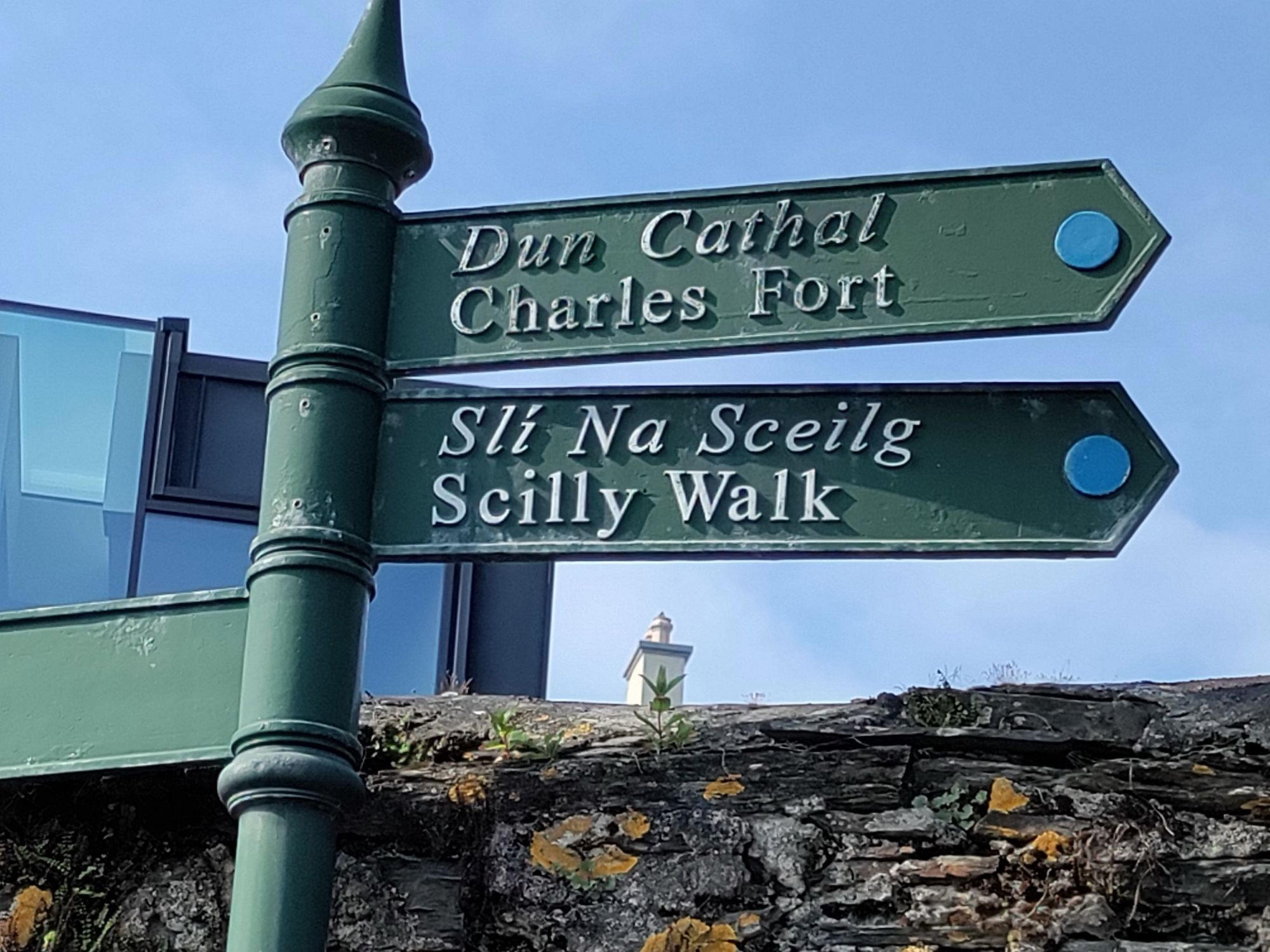 After a peaceful night on Long Quay we have a lazy start to Sunday. Eventually we get organised and are ready to move. The plan today is to walk to Charles Fort and do the Scilly walk.
