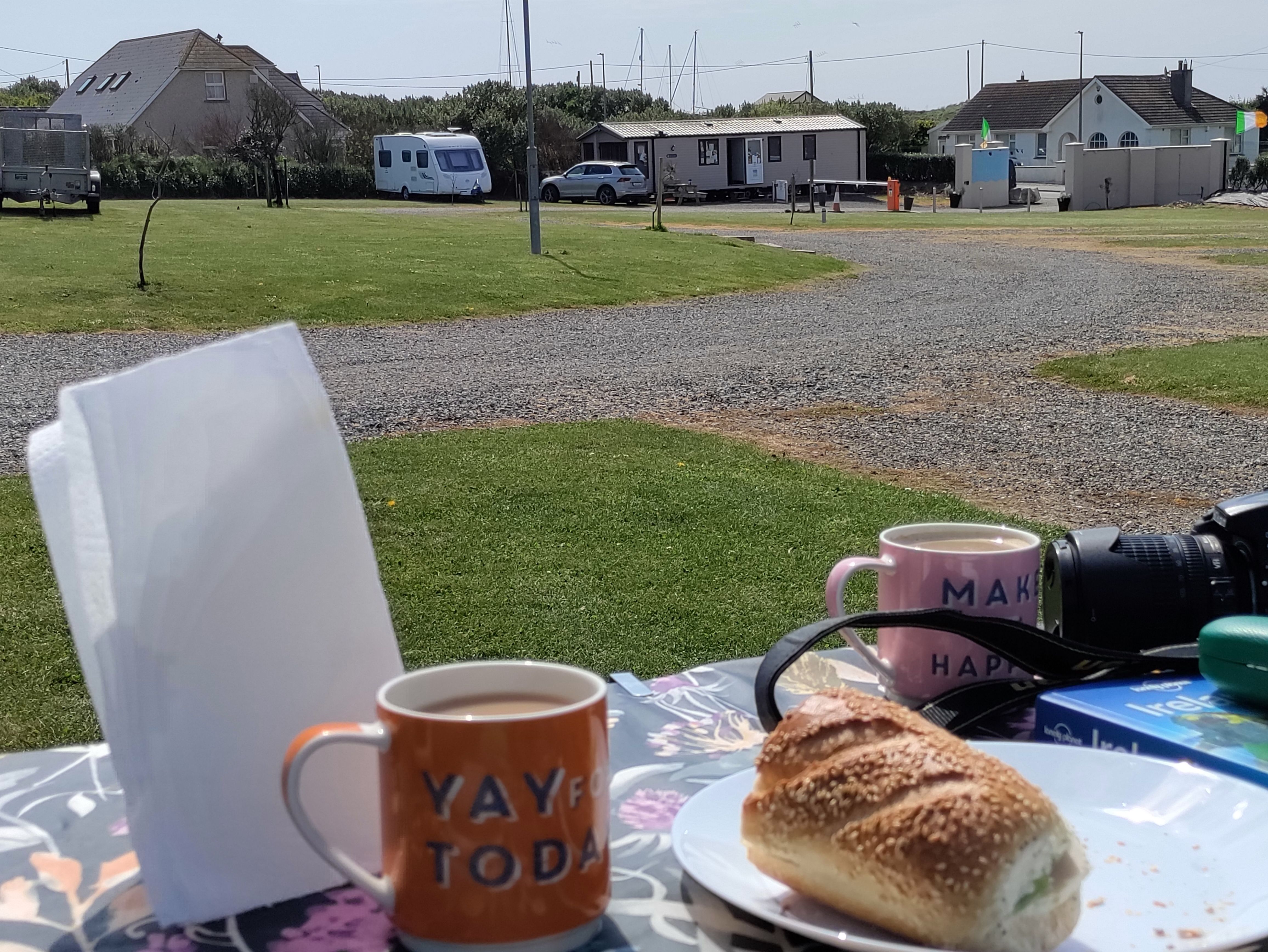 Our destination today is Kilmore Quay in County Wexford. This spot has been recommended by a few people. We take the odd wrong turn but it’s still only about 1.5 hrs away. We are staying at Kilmore Quay Caravan and Camping Park for one or two nights and are looking forward to hot showers.
