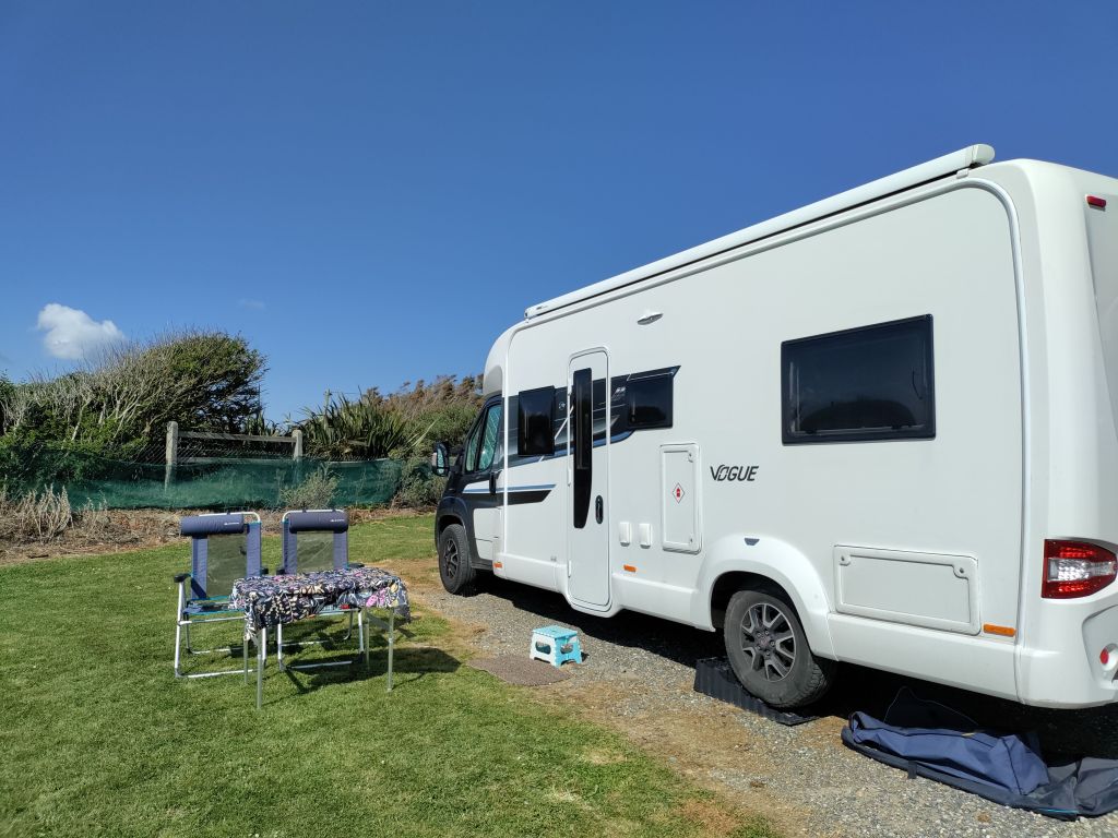 Outside the campsite is a small shop and then over the road is a raised carpark with fabulous views of the beach, which is golden and gorgeous.