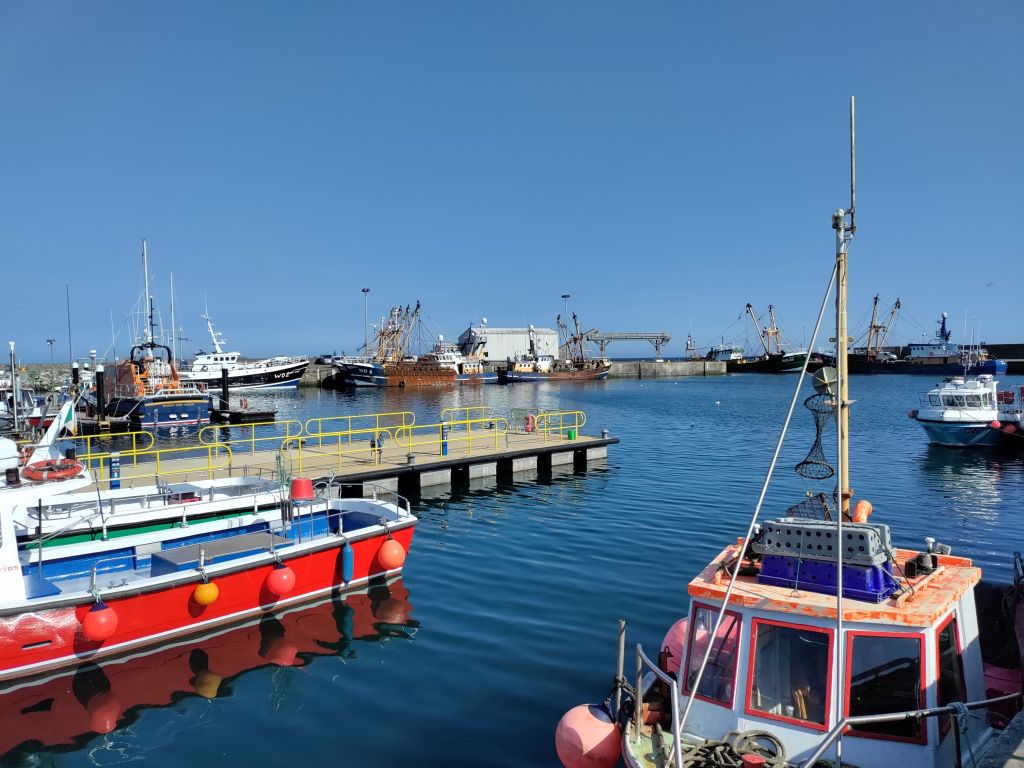 Of course we find the pub open! Enjoy a cold one whilst chatting to the friendly locals. We learn about the fishing industry, are told the big boats catch everything around here except bass which isn’t allowed, the smaller boats normally lobster and prawns. Lots of Spanish boats fish from here too.