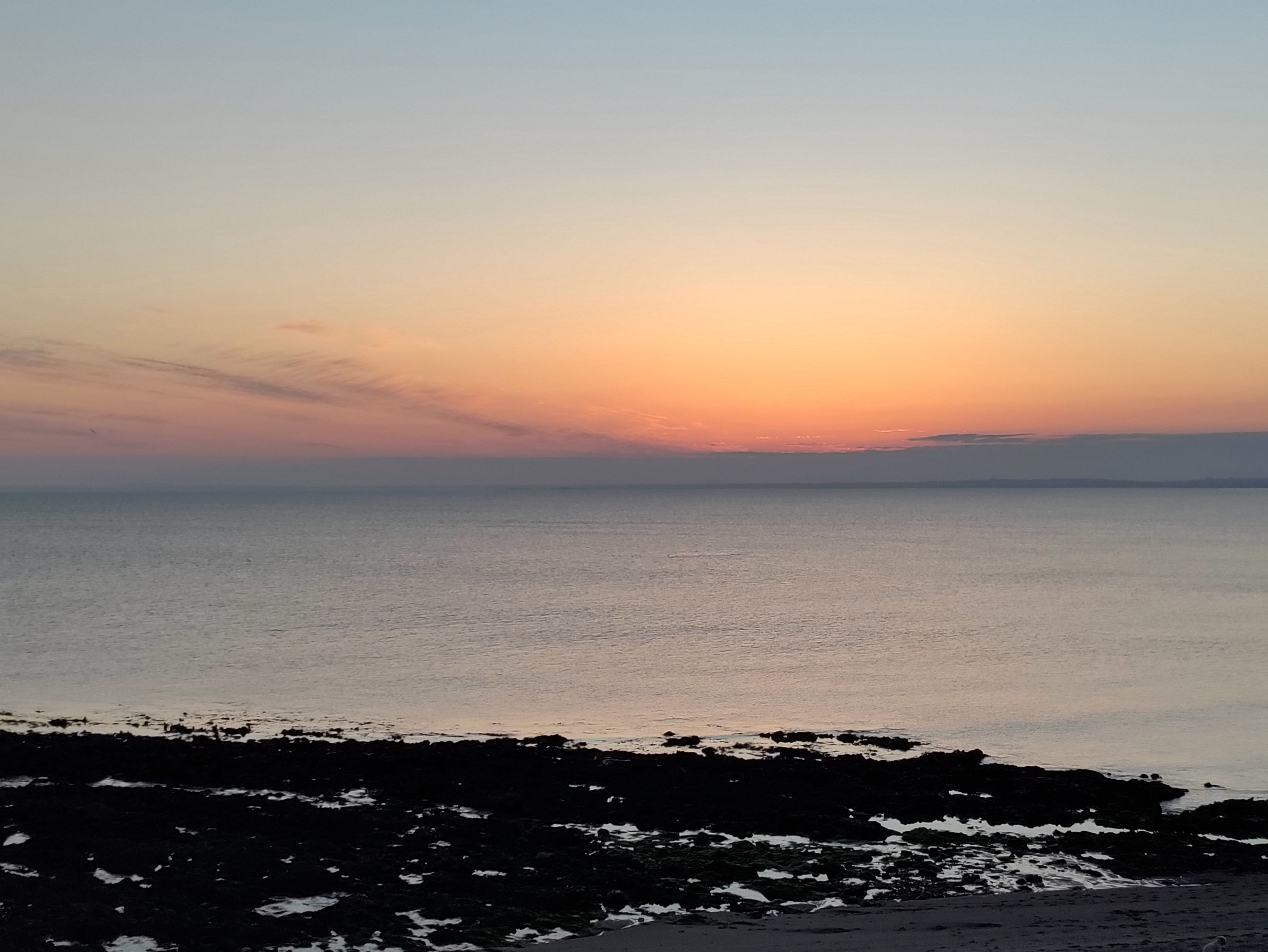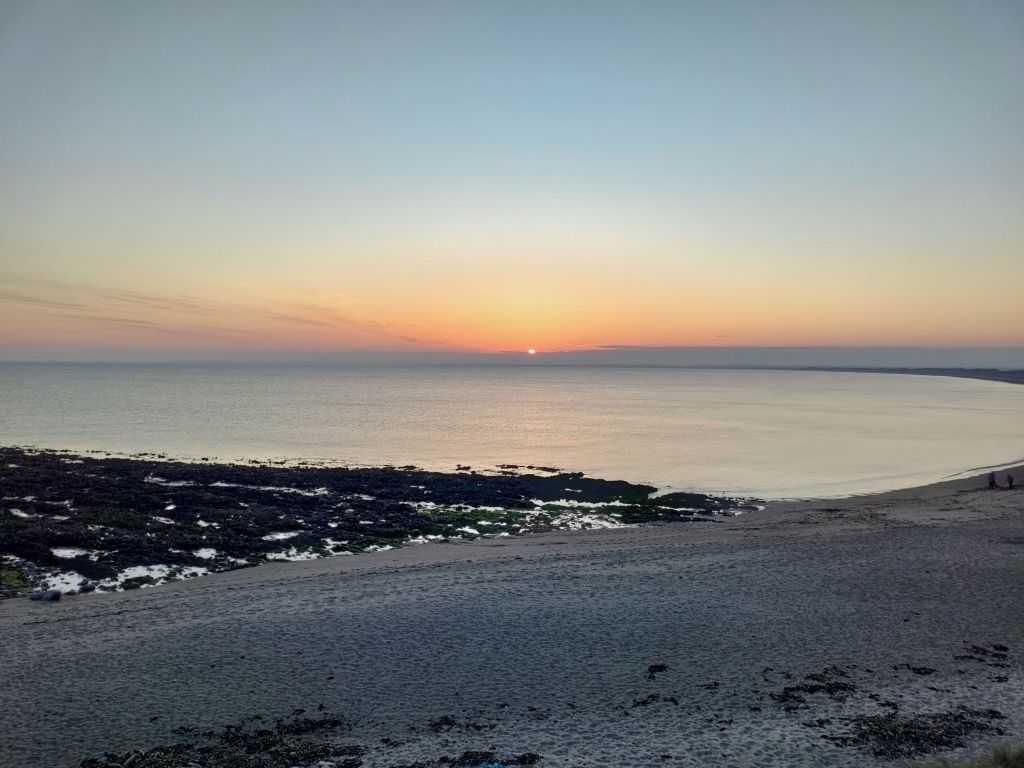 It’s getting cooler now so we head back inside for a bit until sunset when we wander back to the beach and watch the sun go down. The temperature has dropped considerably. There’s cloud on the horizon so the sun gets lost before the end but we still get some lovely colour.