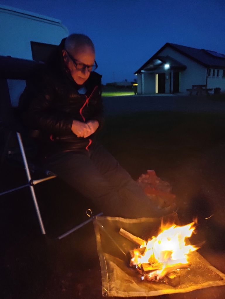 Firepit time! They’re not usually allowed here but because it’s so quiet Alice gives us the nod. We sit outside for hours, watching the fire, enjoying a drink and listening to tunes. Another great day on our Irish adventure.