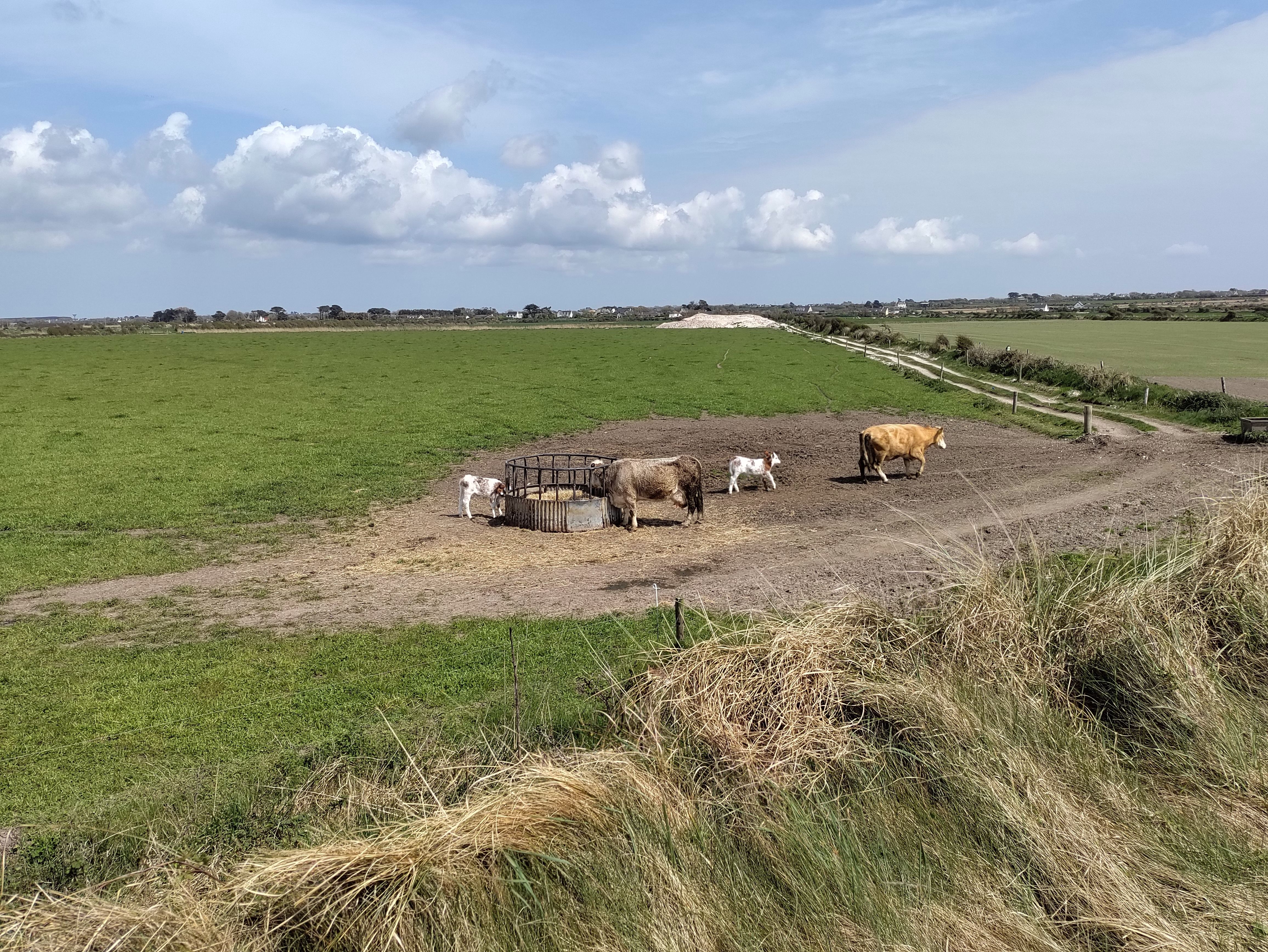 By early afternoon the sun has broken through and we go out for a walk. It’s a 4.5km circular route through sand dunes and then back along the beach. We do a bit of bird spotting in the sand dunes , see the first swift’s of the year, a sparrow hawk, a jackdaw, lots of bull finches and a herd of cows.