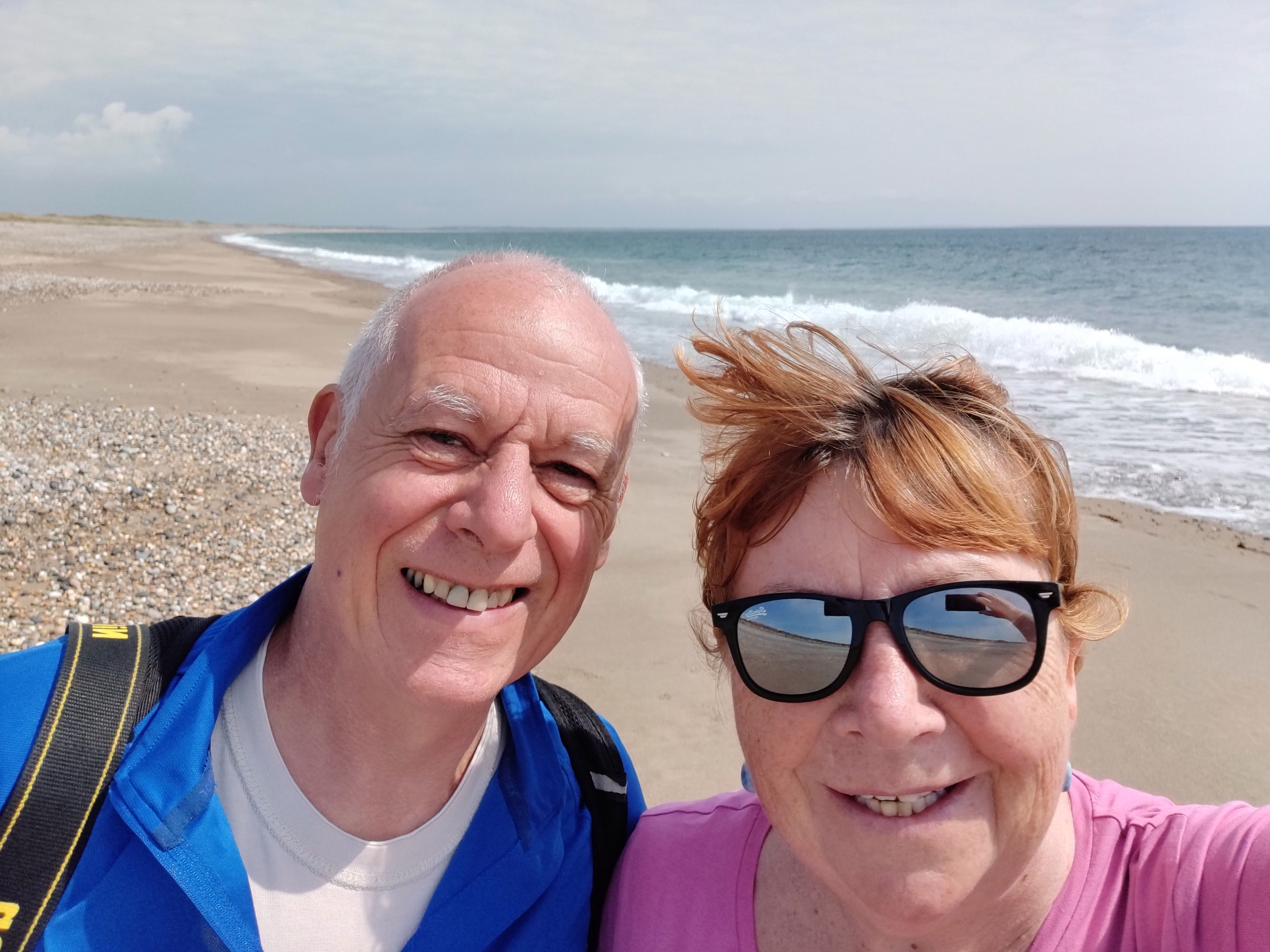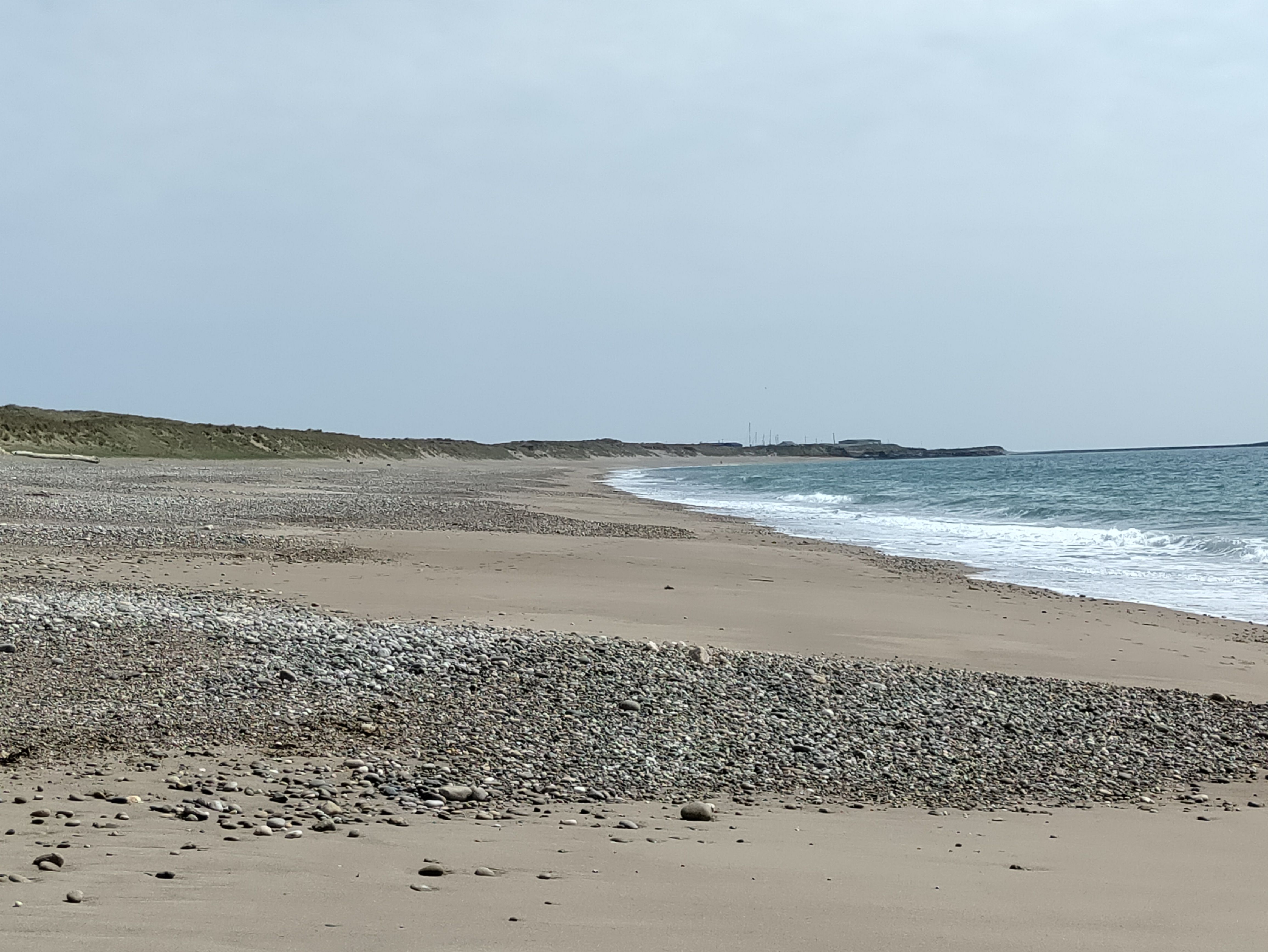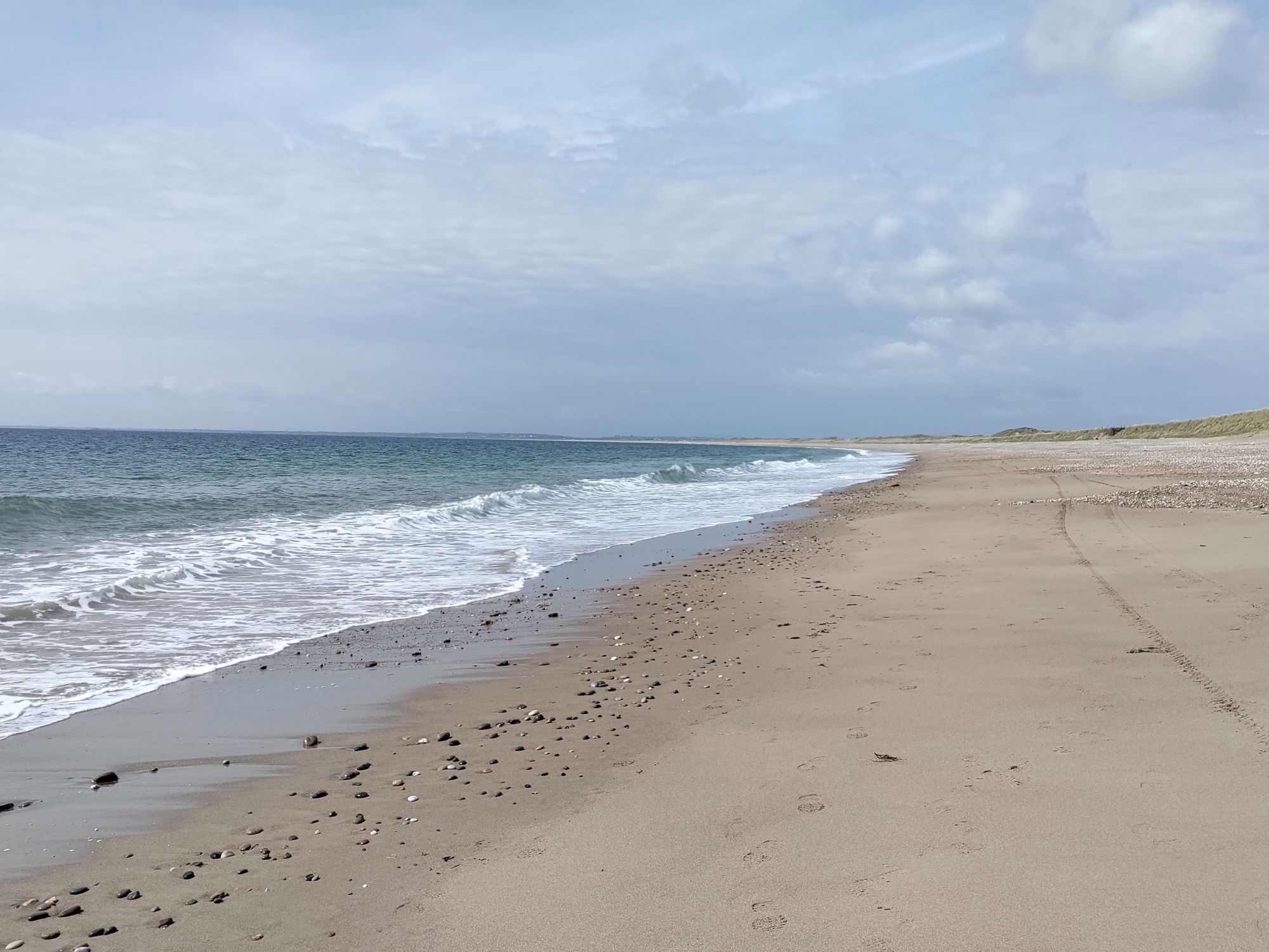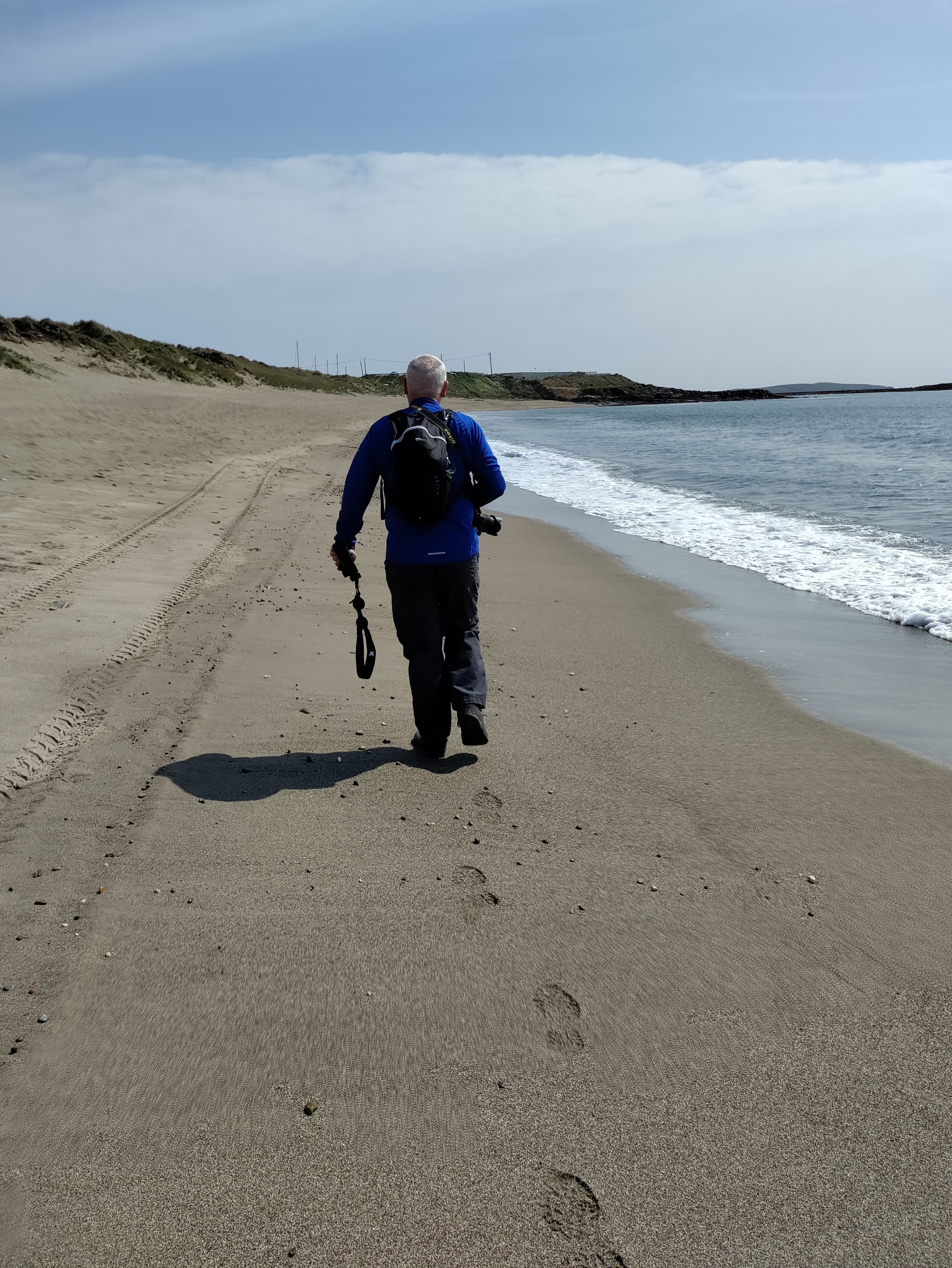 The strand is lovely and almost deserted. We walk along the water’s edge occasionally having to dodge the tide which is coming in. It’s easy going until the end when it’s on a bit more of a slope and is very soft underfoot so it’s like walking through treacle and hard work.
