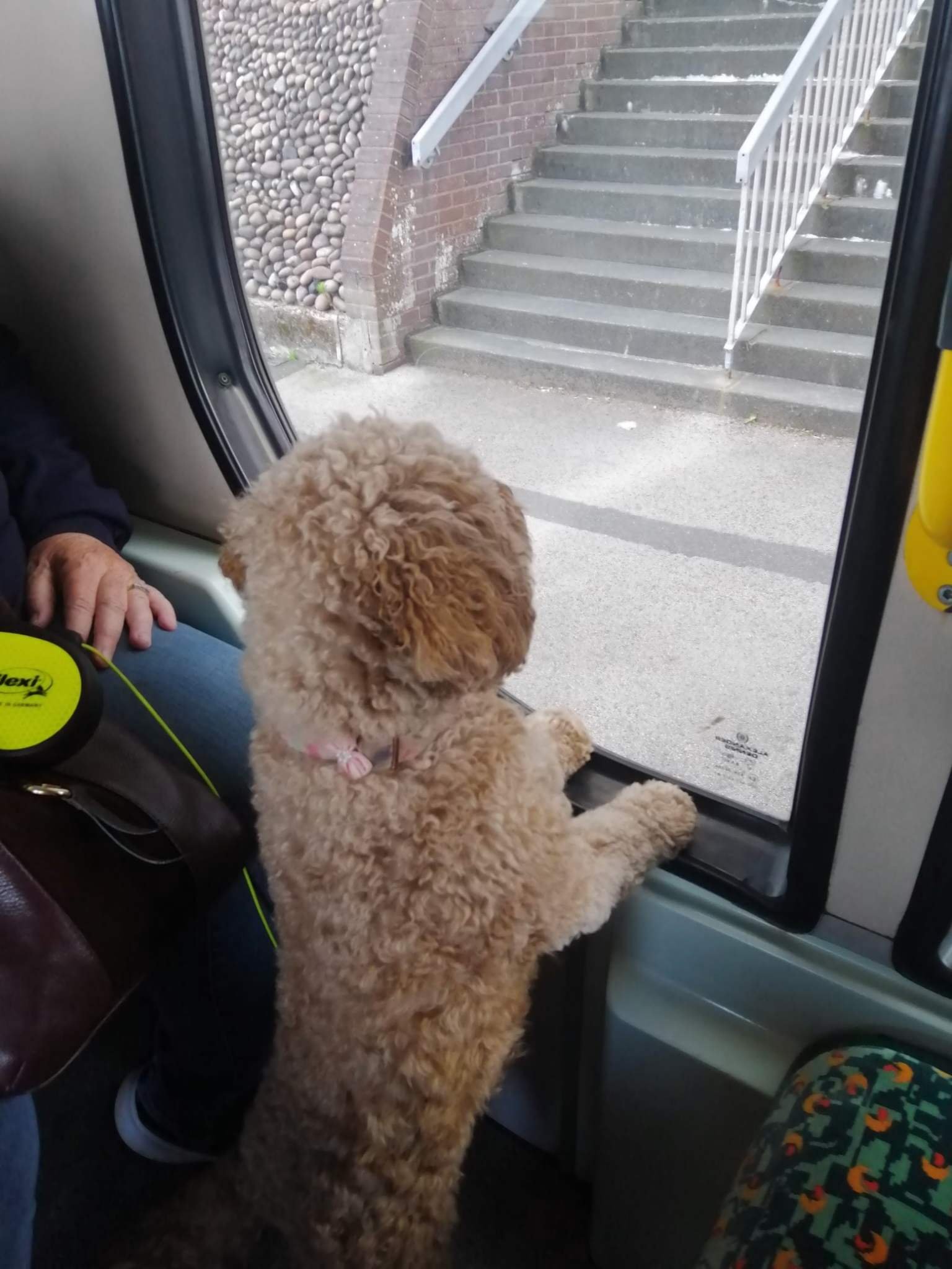 We catch the number five bus into the town. It’s Nala’s first bus ride and she likes it. She loves a window so we sit at the back where the windows are low down and she can see out without sitting on the seat. Perfect for our FOMO queen.